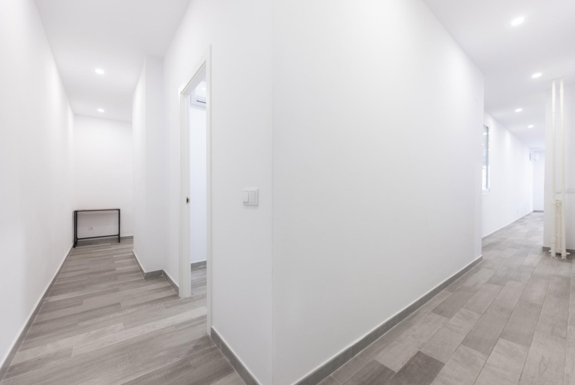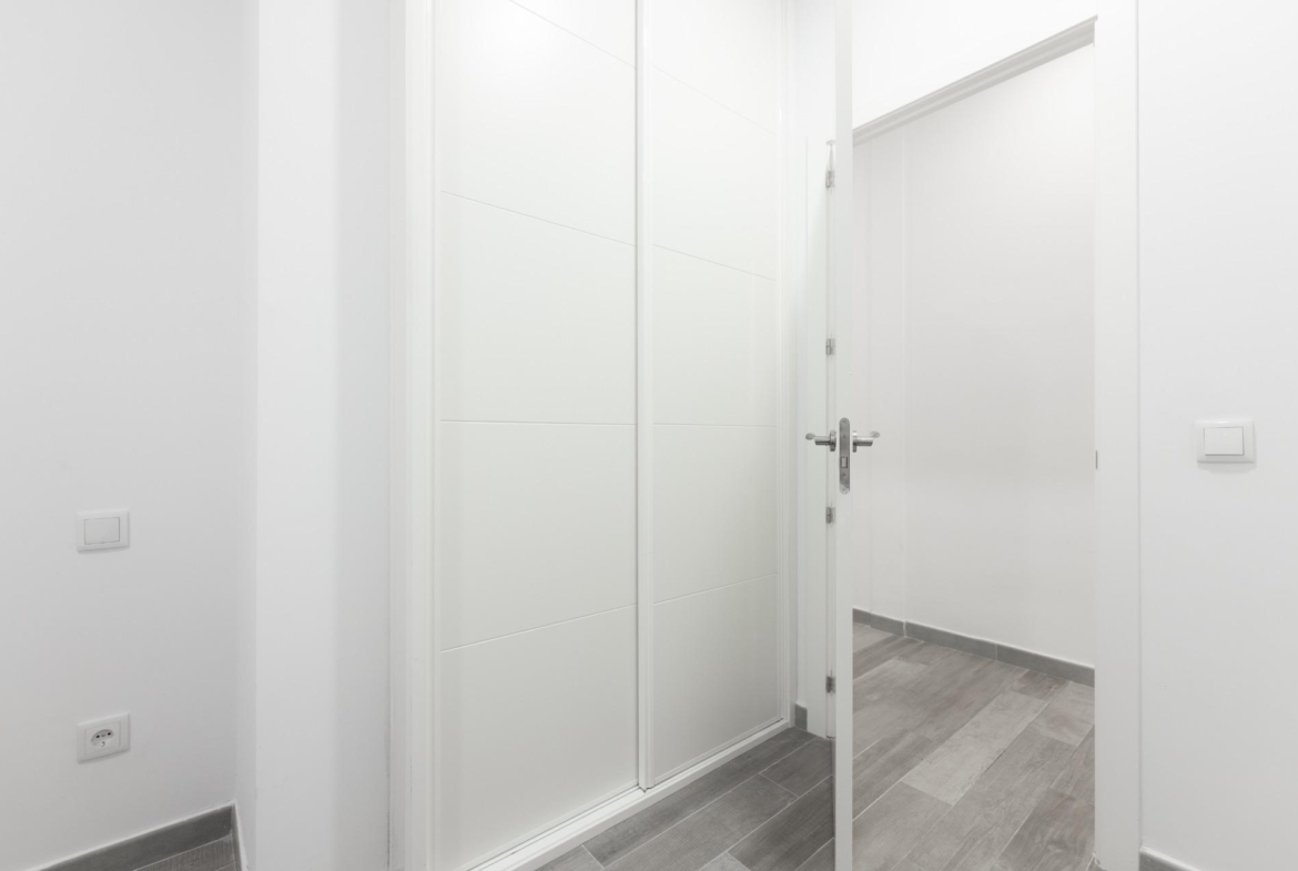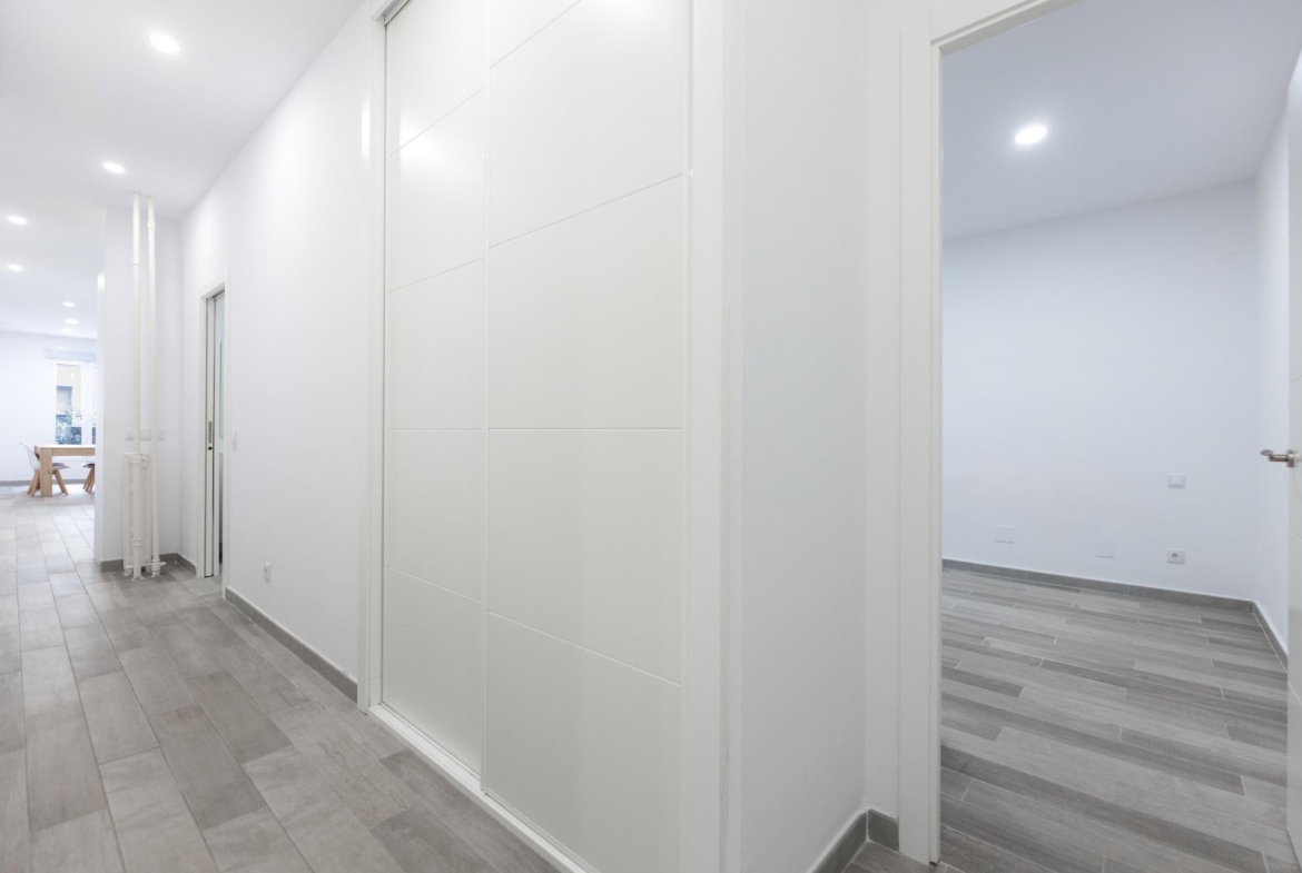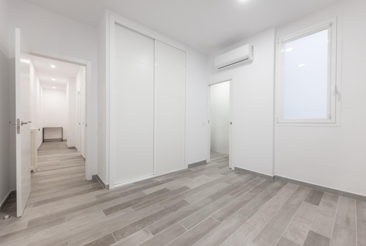 El piso ha sido reformado integralmente y cuenta con excelentes calidades: armarios empotrados en todas las habitaciones, suelos de gres cerámico, pintura lisa, carpintería interior en madera lacada en blanco y ventanas de aluminio con climalit, que garantizan un buen aislamiento térmico y acústico. Además, dispone de aire acondicionado mediante splits, proporcionando confort durante todo el año.