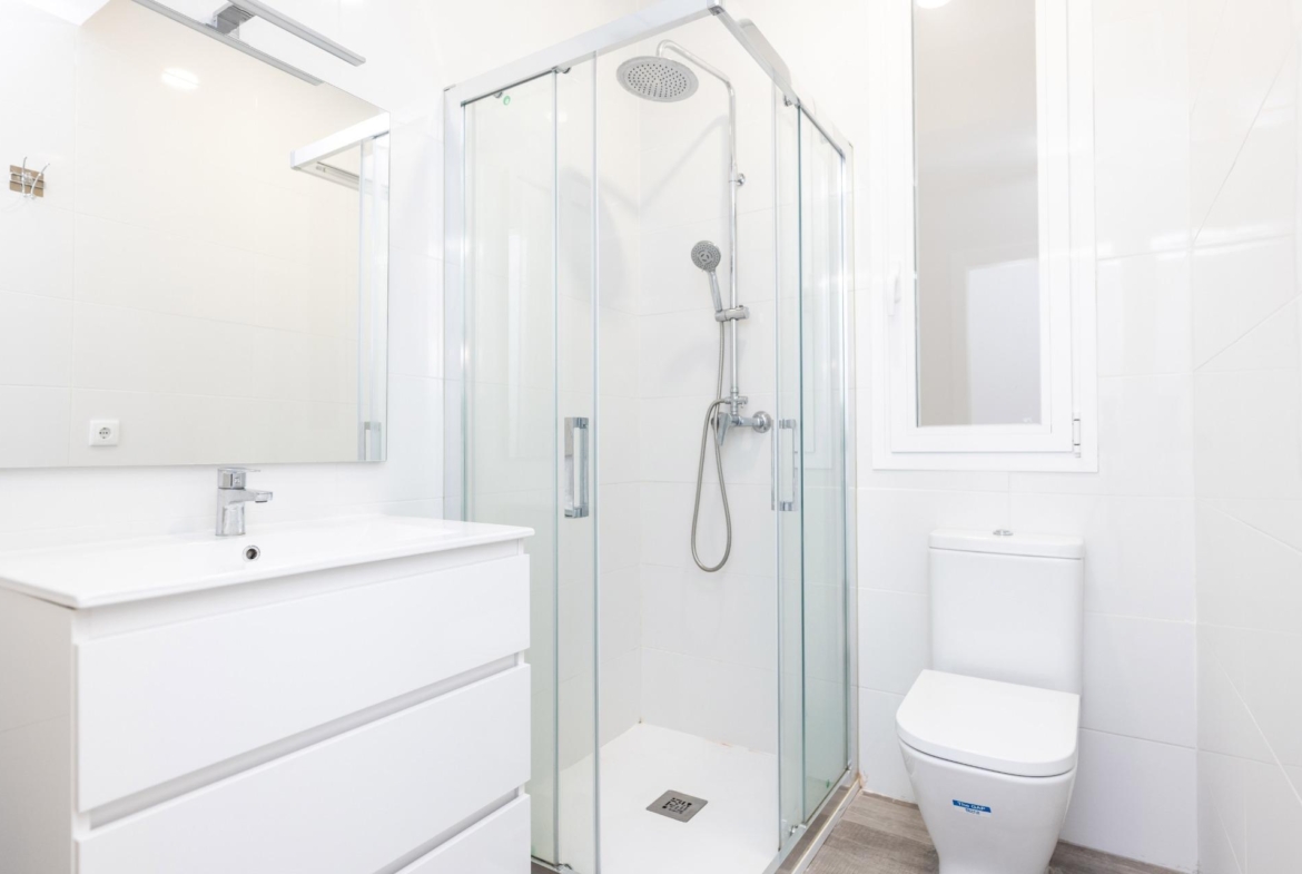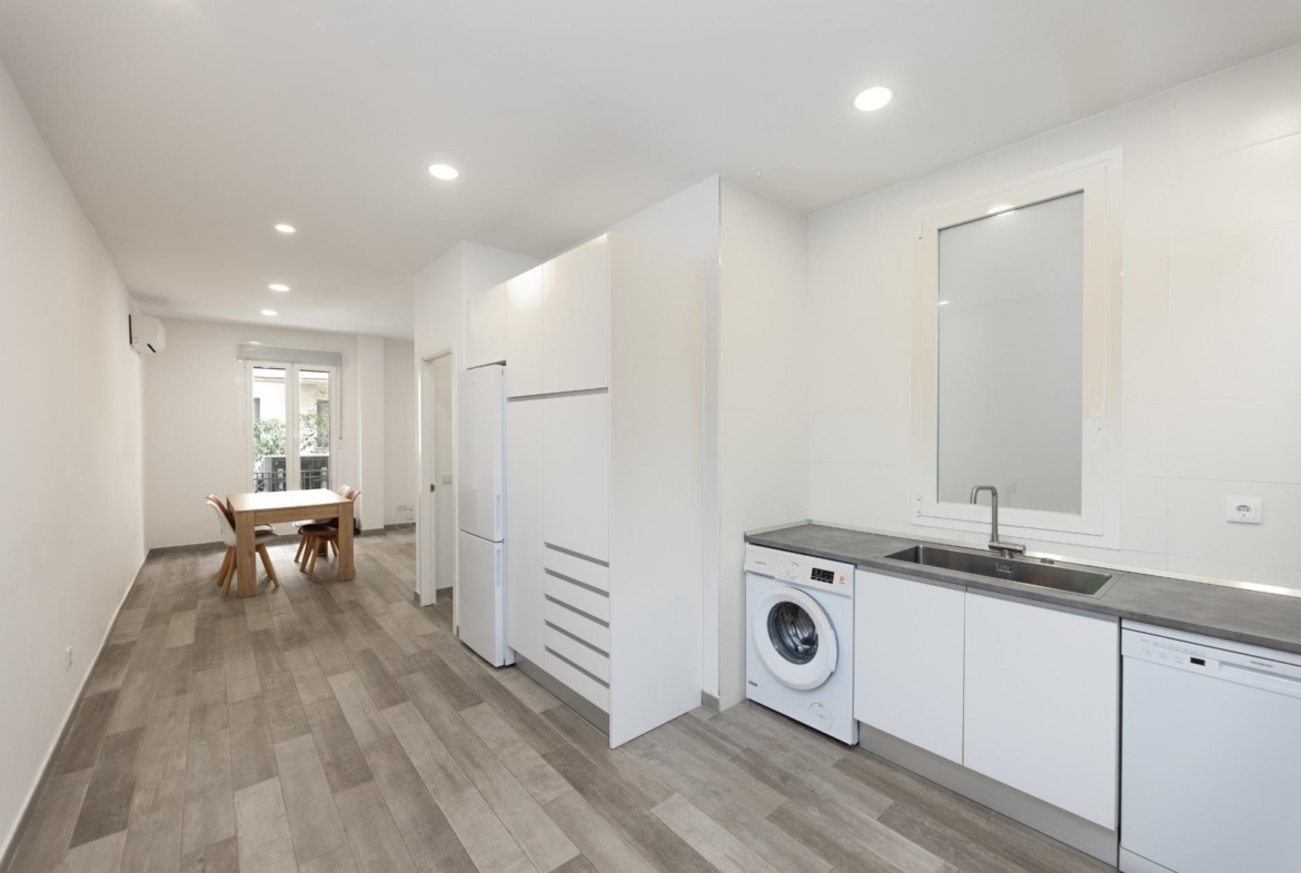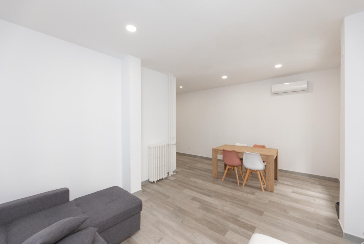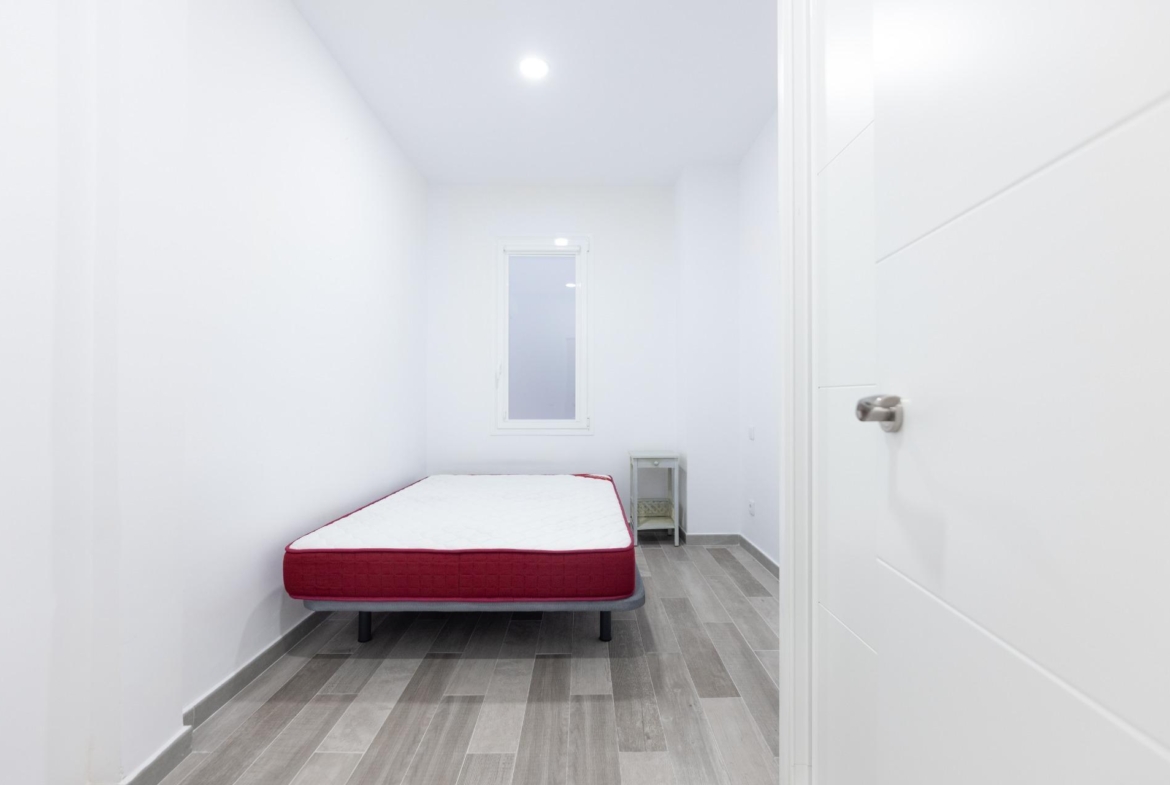 El piso ha sido reformado integralmente y cuenta con excelentes calidades: armarios empotrados en todas las habitaciones, suelos de gres cerámico, pintura lisa, carpintería interior en madera lacada en blanco y ventanas de aluminio con climalit, que garantizan un buen aislamiento térmico y acústico. Además, dispone de aire acondicionado mediante splits, proporcionando confort durante todo el año.