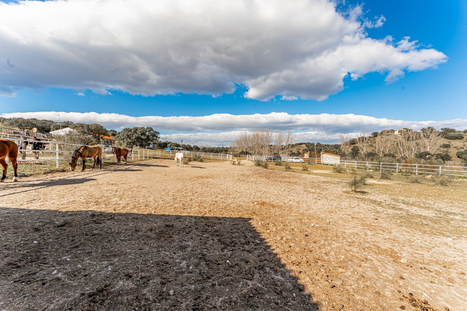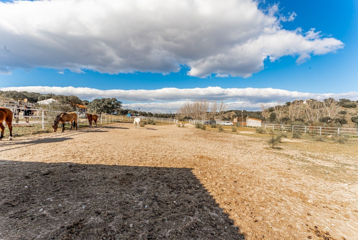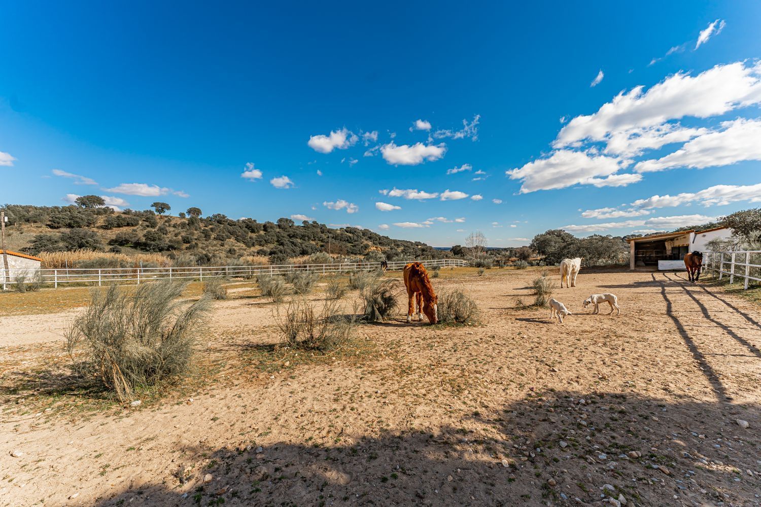 La finca se encuentra en un paraje denominado CERRO DEL PILAR entre el pueblo de Almorox (Toledo) y el río Alberche a poco más de 5 minutos de otras fincas para caballos y de un aeródromo turístico.