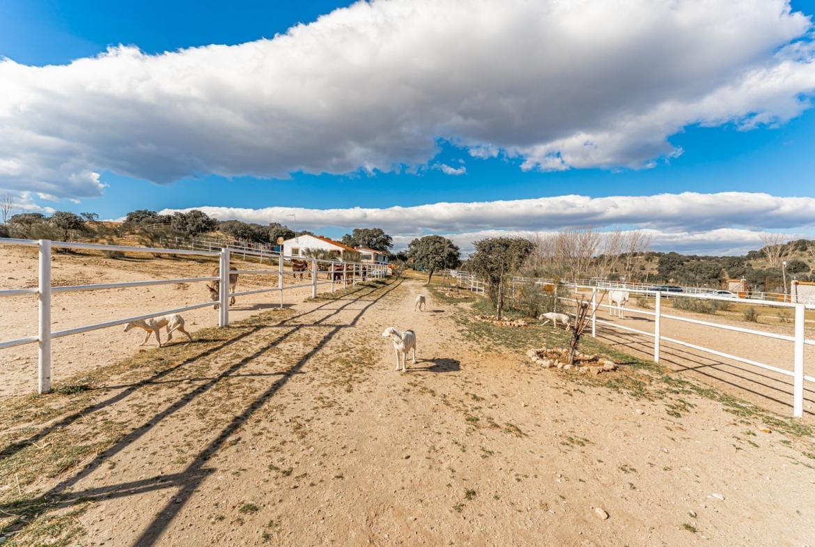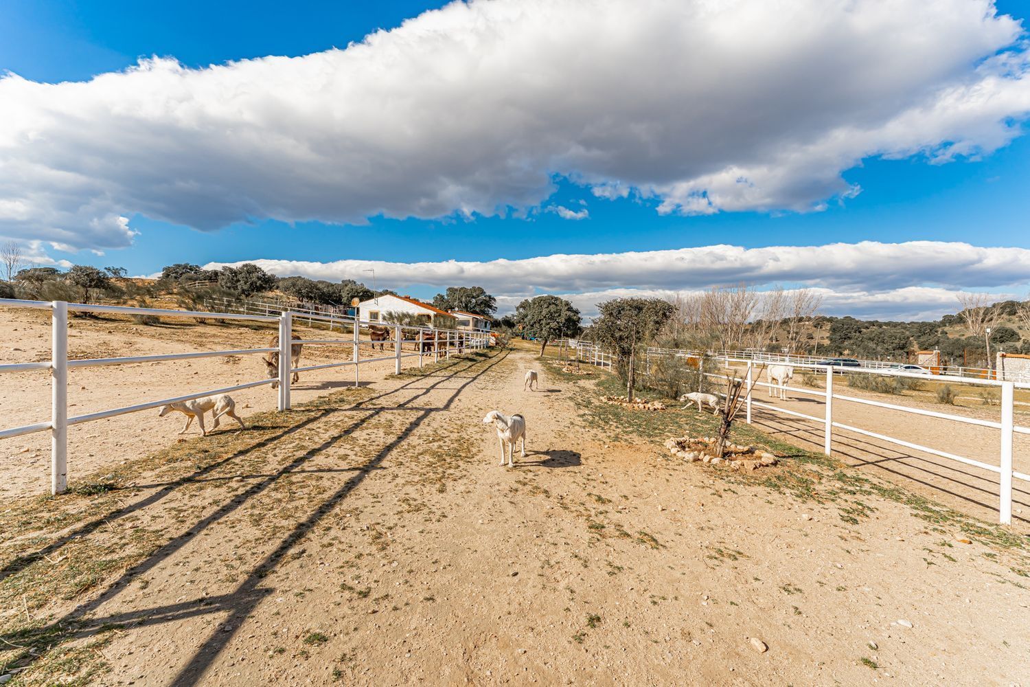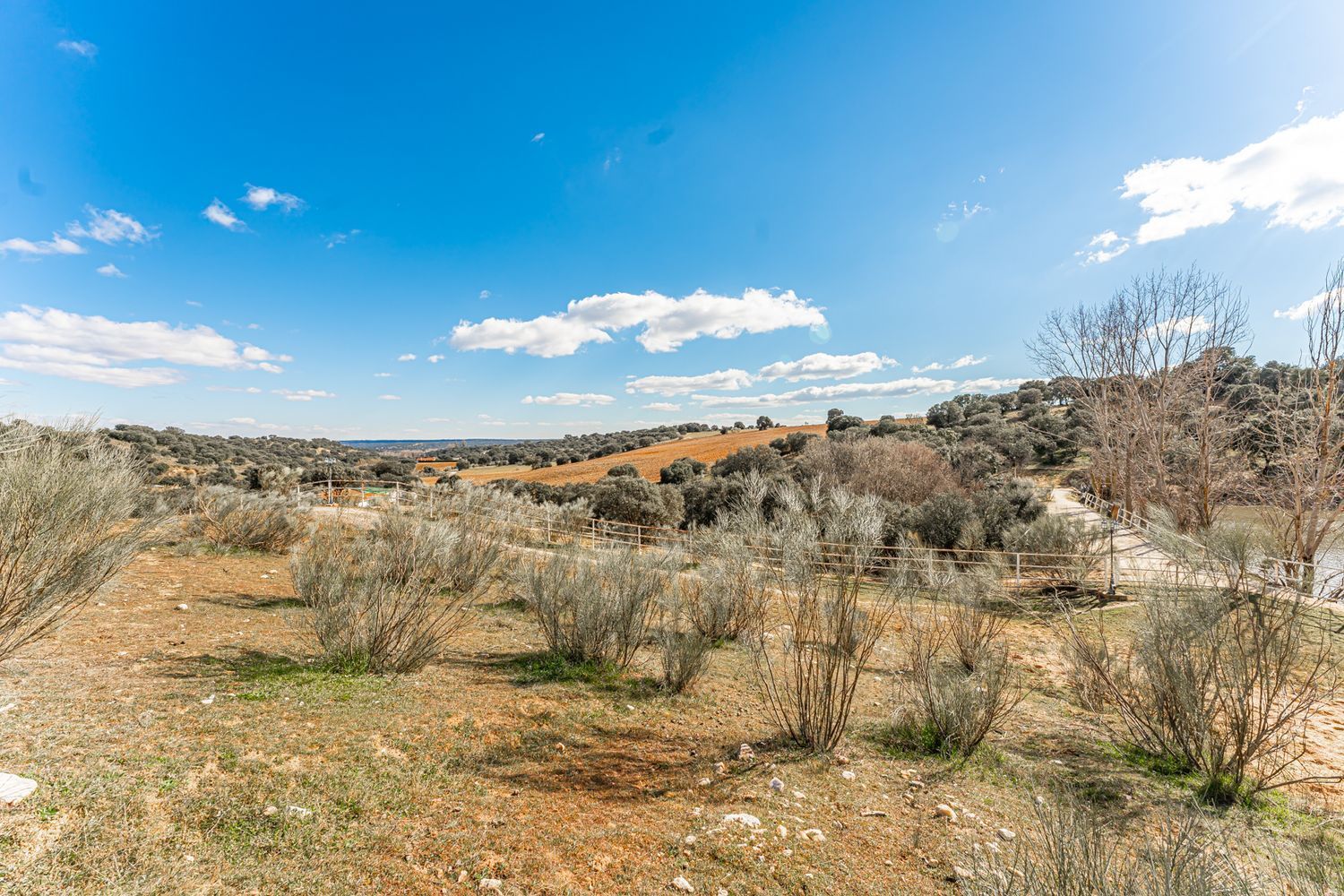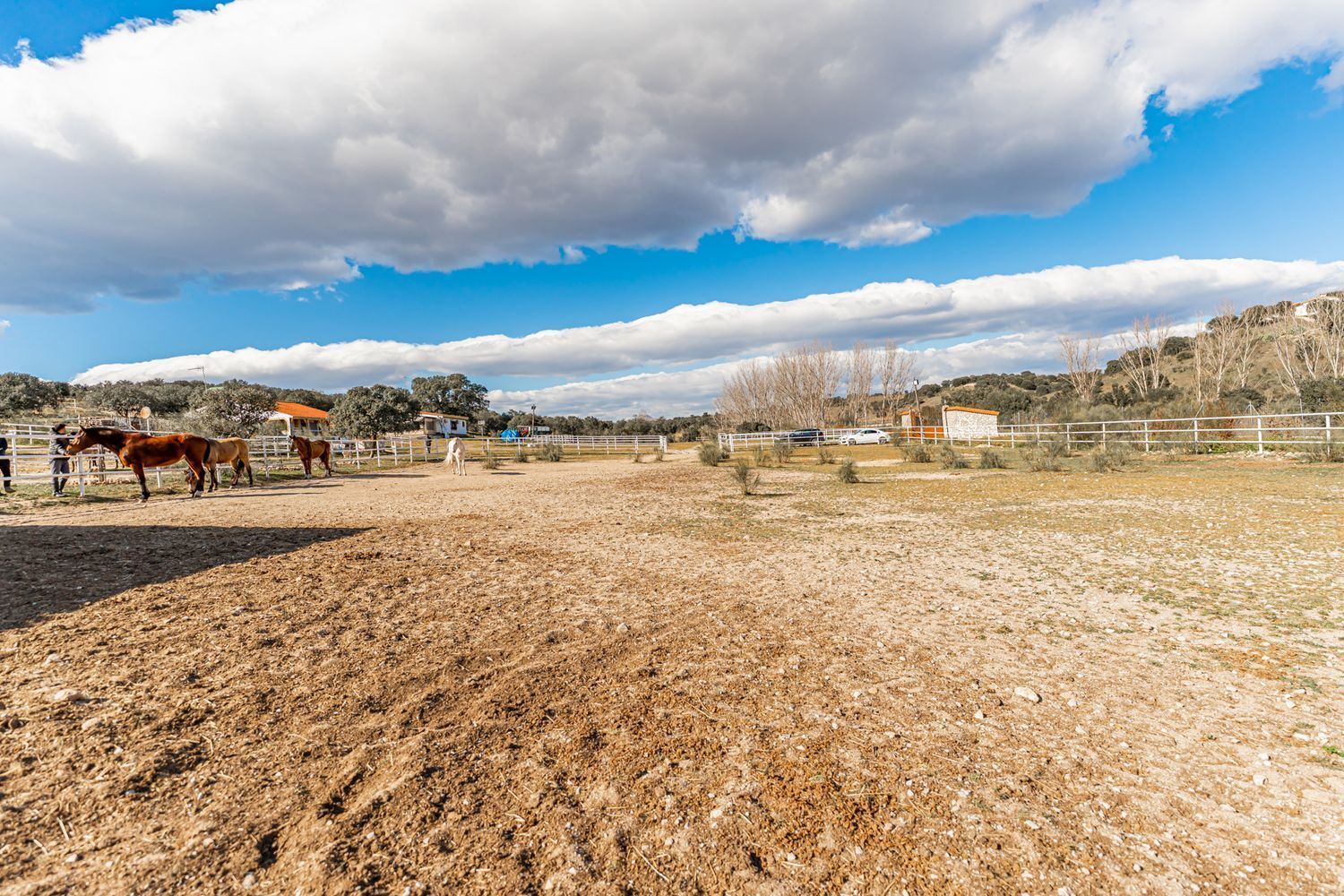 La finca se encuentra en un paraje denominado CERRO DEL PILAR entre el pueblo de Almorox (Toledo) y el río Alberche a poco más de 5 minutos de otras fincas para caballos y de un aeródromo turístico.
