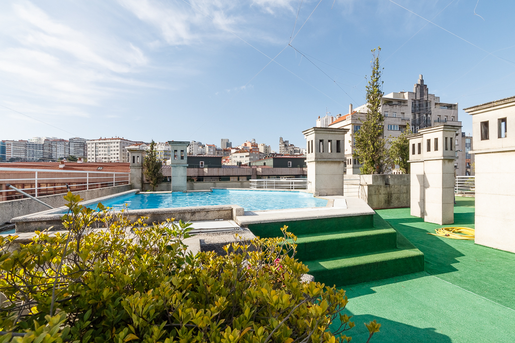 Propiedad única, pues dispone de una amplia terraza orientada al sur, y una zona comunitaria con solarium y piscina, todo ello en el centro de Vigo.
