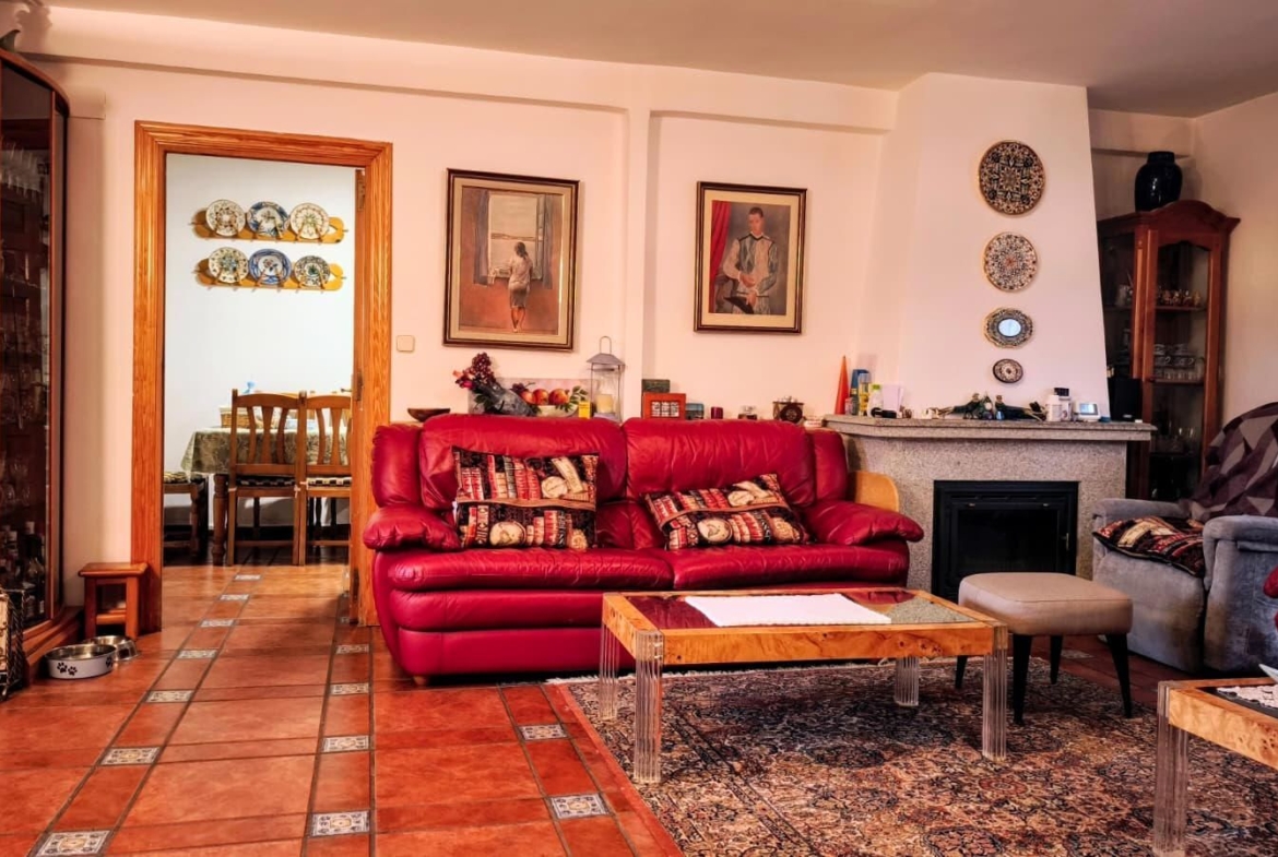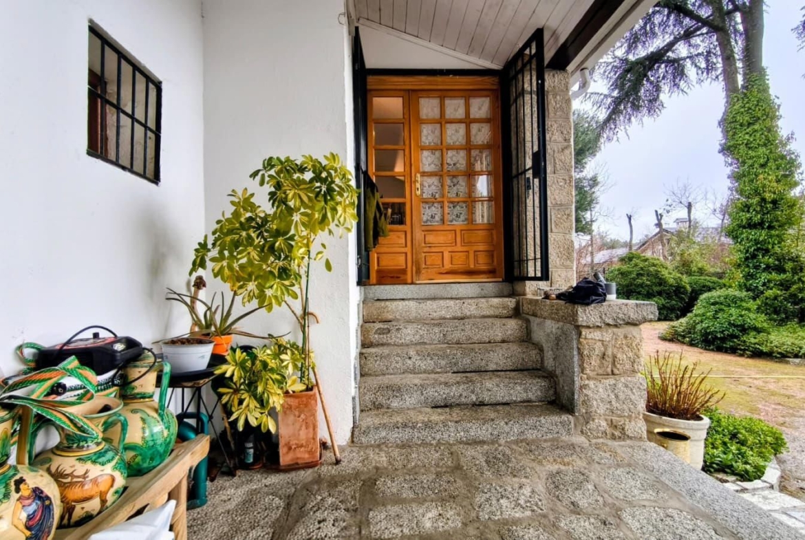 El acceso se realiza a través de una elegante terraza cubierta con vistas al jardín, que conduce a un salón principal de generosas dimensiones, presidido por una chimenea de granito y rodeado de amplios ventanales que inundan el espacio de luz natural, creando una atmósfera cálida y sofisticada.