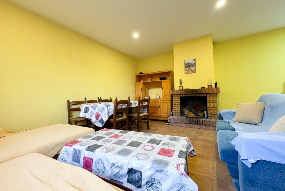 La casa principal cuenta con dos cómodas habitaciones, ofreciendo el espacio ideal para descansar y desconectar. En su interior, encontrarás una cocina amplia e integrada en el comedor, un espacio cálido y acogedor presidido por una chimenea, perfecta para las noches de invierno y largas sobremesas entre amigos o familia.