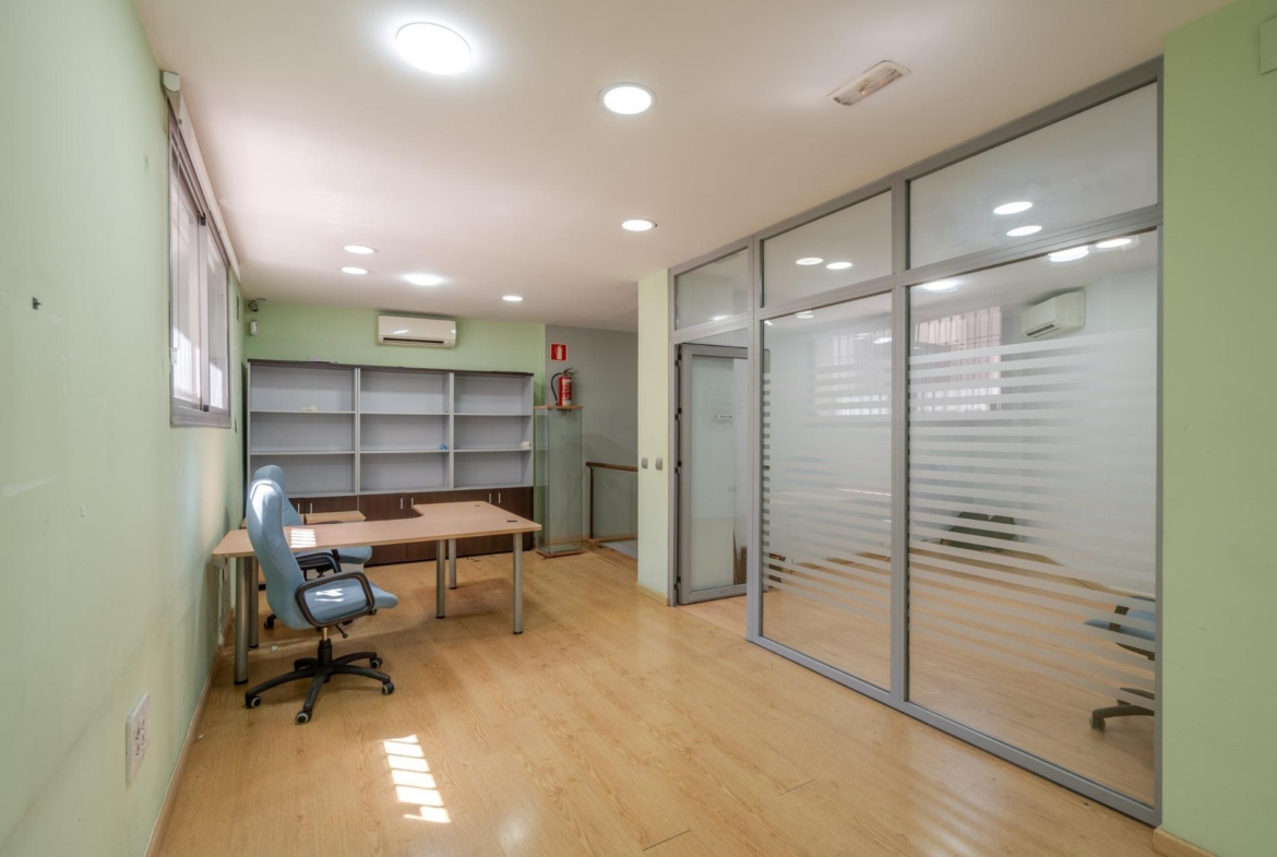 El inmueble destaca por la gran altura de techos en ambas plantas y una fachada de 8 metros que aporta gran visibilidad. Actualmente cuenta con licencia de oficina y aforo autorizado para 16 personas.