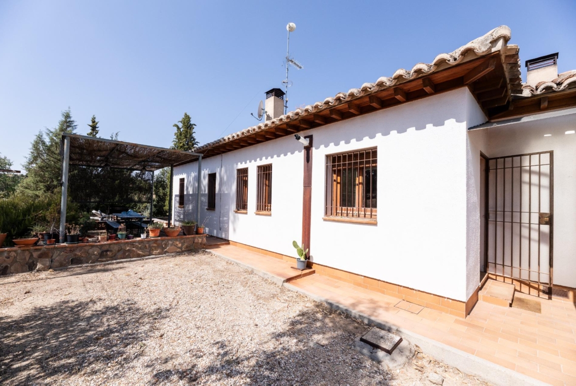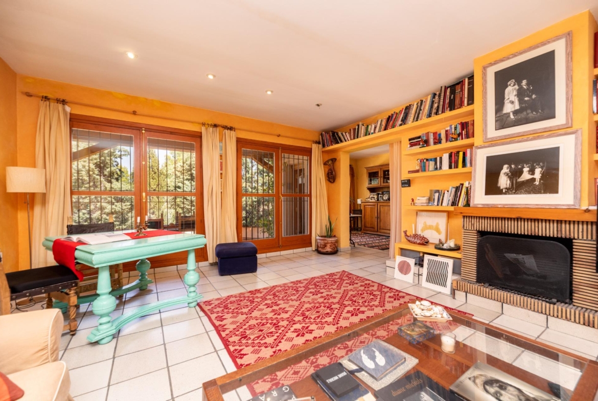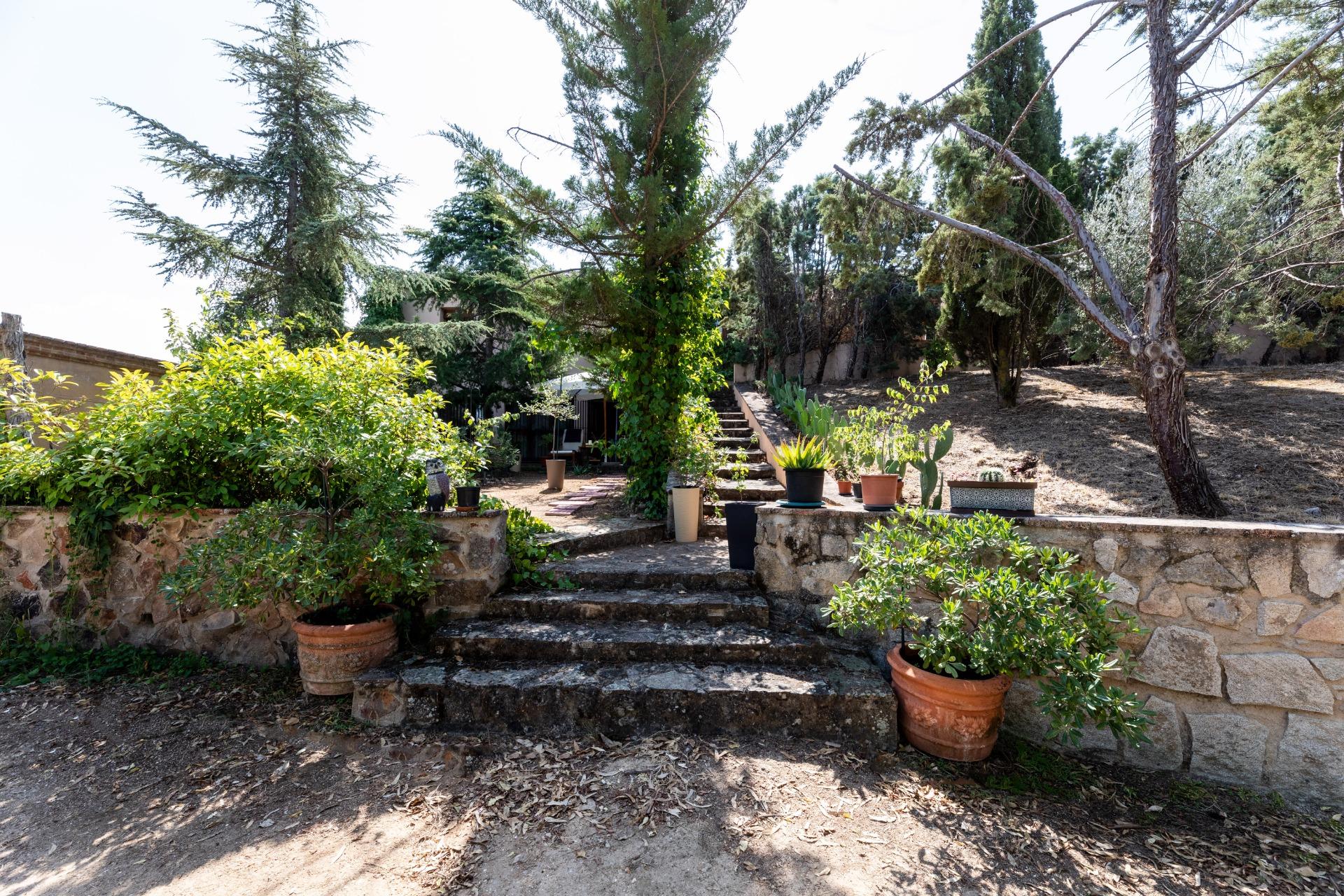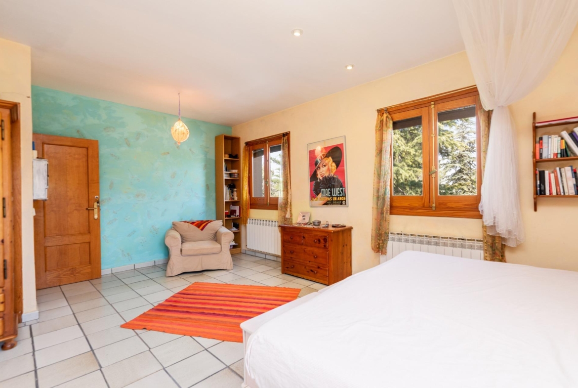 La casa principal, en perfecto estado, dispone actualmente de tres habitaciones, que fácilmente podrían convertirse en 4, e incluso más. Luminosa, con extraordinarias vistas y magníficos ventanales. Las dos plantas tienen acceso directo a los jardines, en todas las orientaciones, pudiendo disfrutar del exterior según la estación del año y el momento del día.