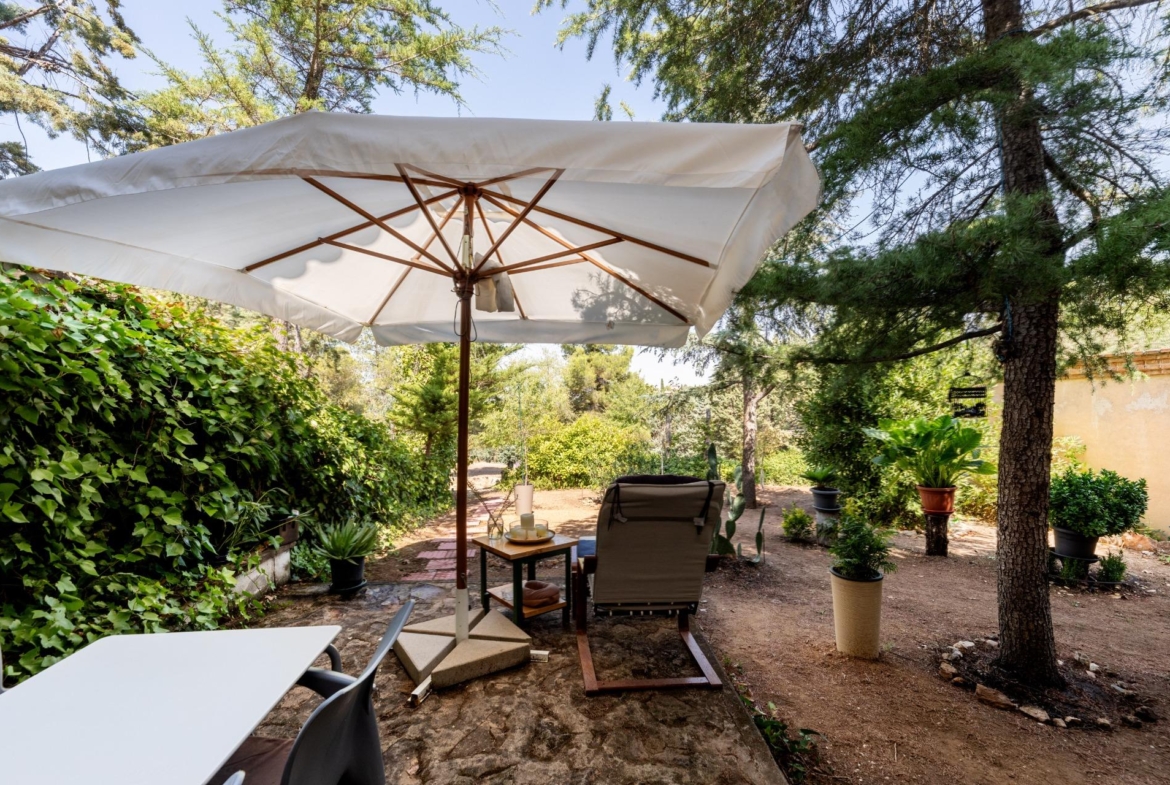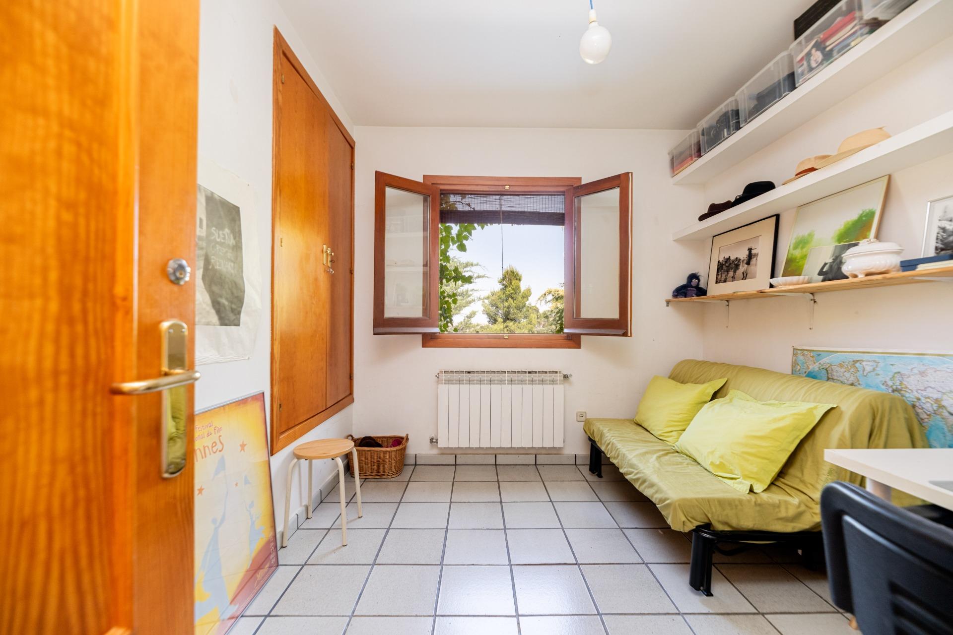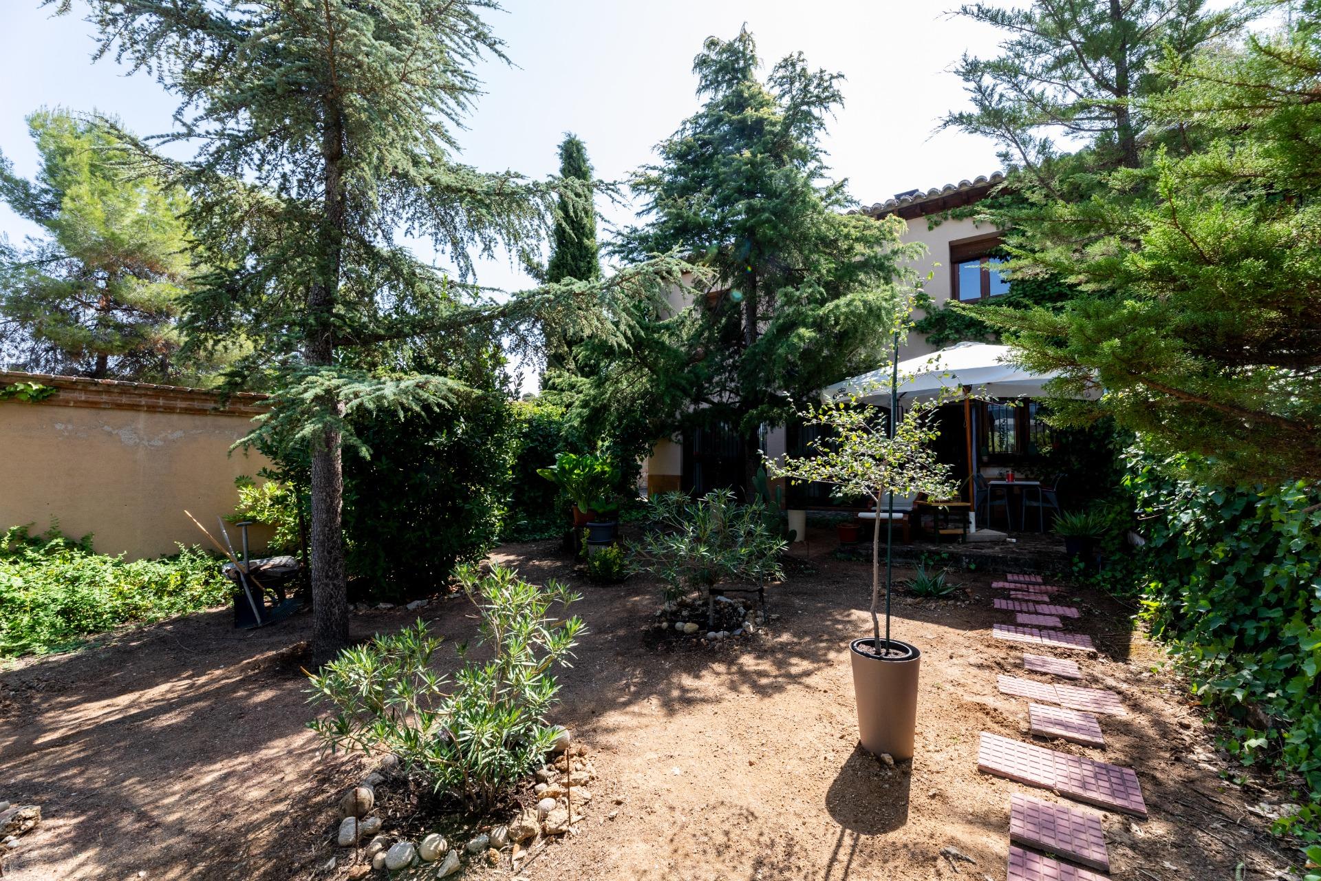 La casa principal, en perfecto estado, dispone actualmente de tres habitaciones, que fácilmente podrían convertirse en 4, e incluso más. Luminosa, con extraordinarias vistas y magníficos ventanales. Las dos plantas tienen acceso directo a los jardines, en todas las orientaciones, pudiendo disfrutar del exterior según la estación del año y el momento del día.