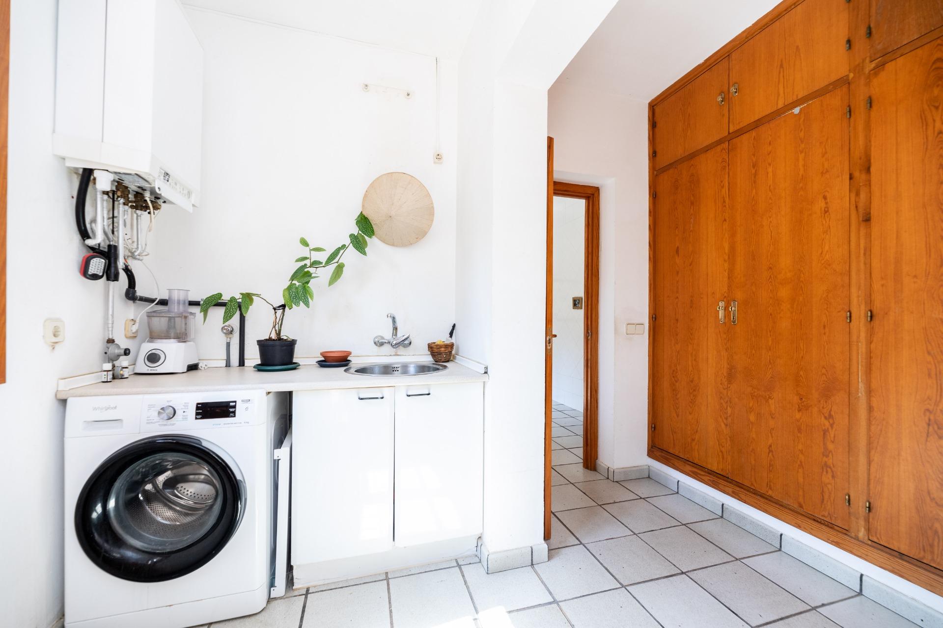 Se ubica la cocina al sur, sala de lavandería y almacenaje y tendedero con otro acceso a exterior y estupendo cenador cubierto y barbacoa. Dos baños y dos habitaciones, una de ellas de amplias dimensiones en suit y con espacioso vestidor y otra con armario empotrado.