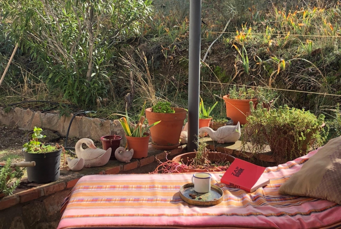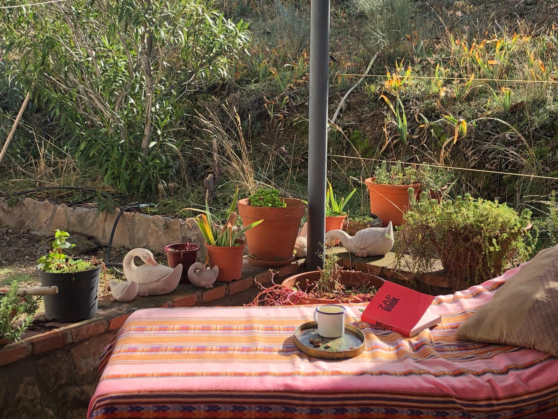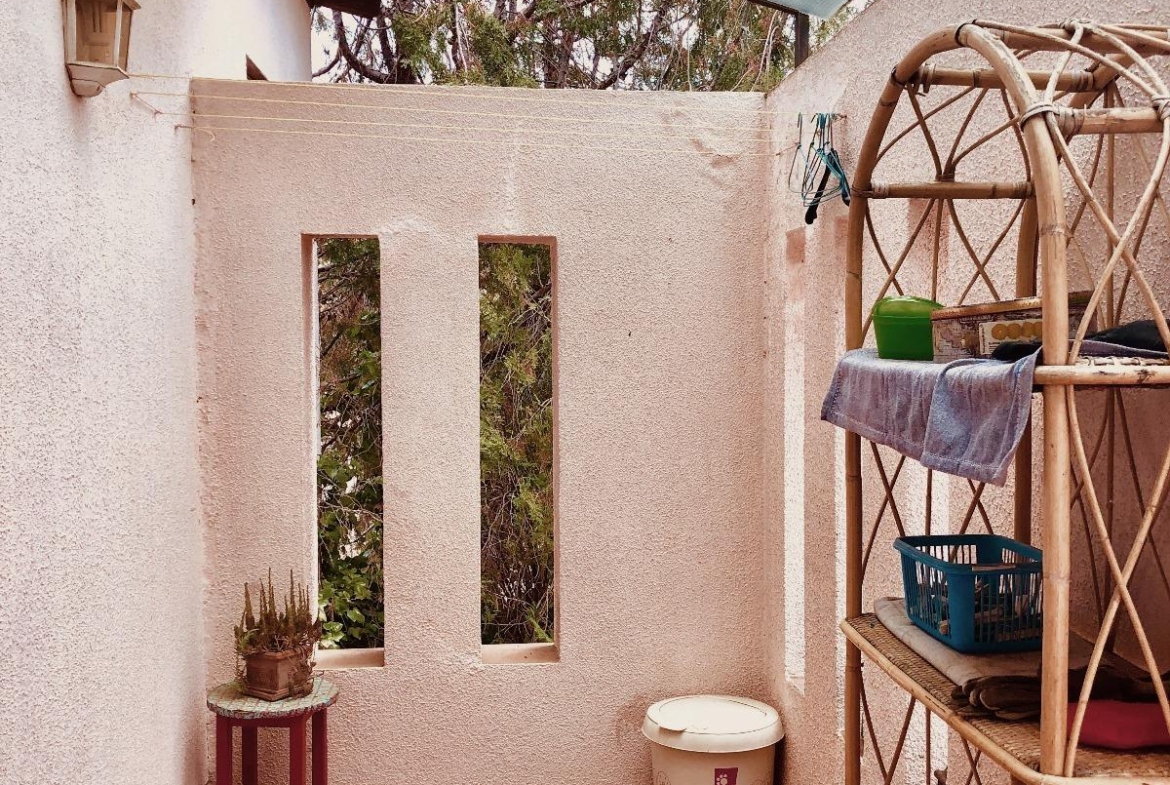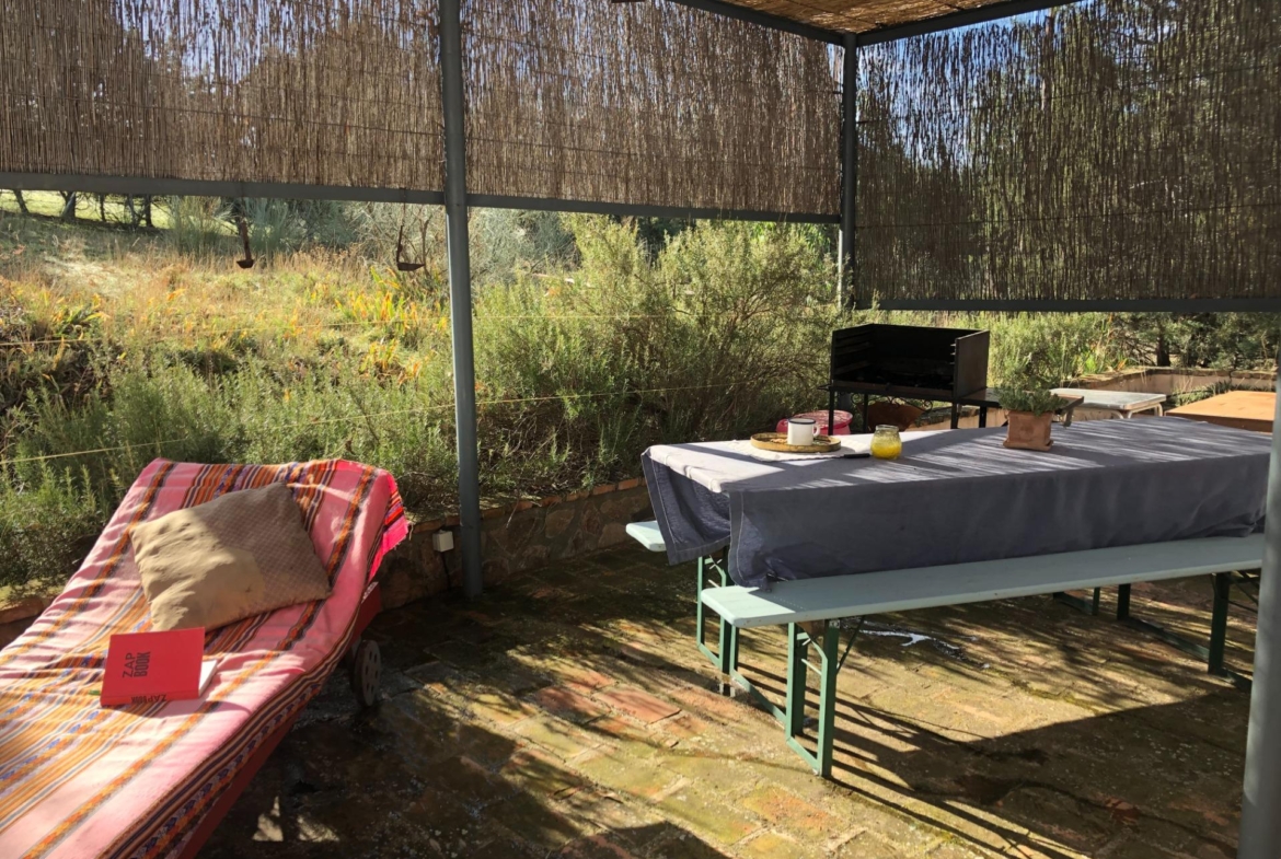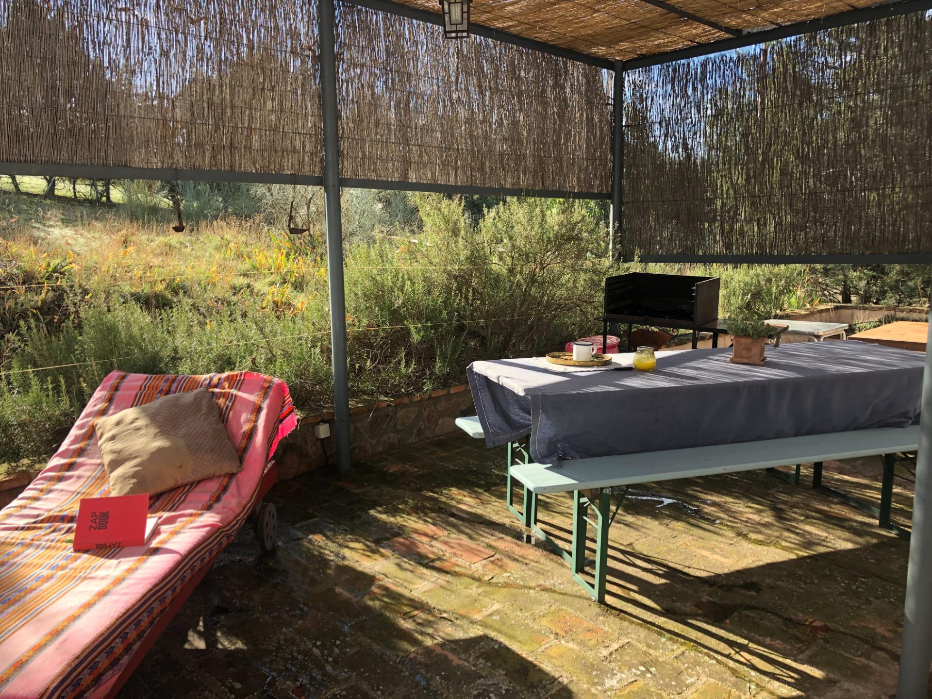 Al lado de la salida de la cocina y el cenador encontramos un aljibe que se puede usar como piscina.