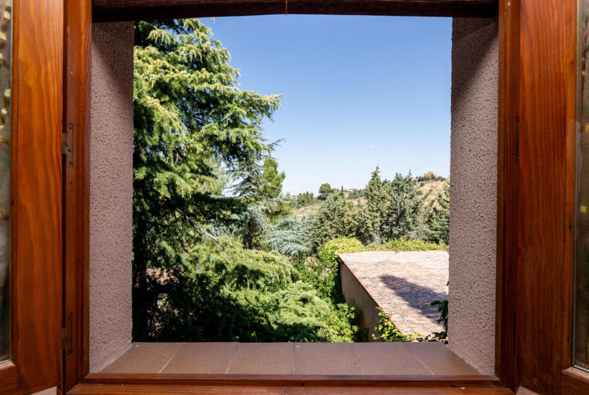 Esta propiedad pertenece a los Cigarrales de Toledo, fincas señoriales que se reservaron para el descanso y la distracción en amplios espacios de terreno natural, que este caso está rodeada por grandes arizónicas, apreciamos pinos, eucaliptos, cipreses y olivos.