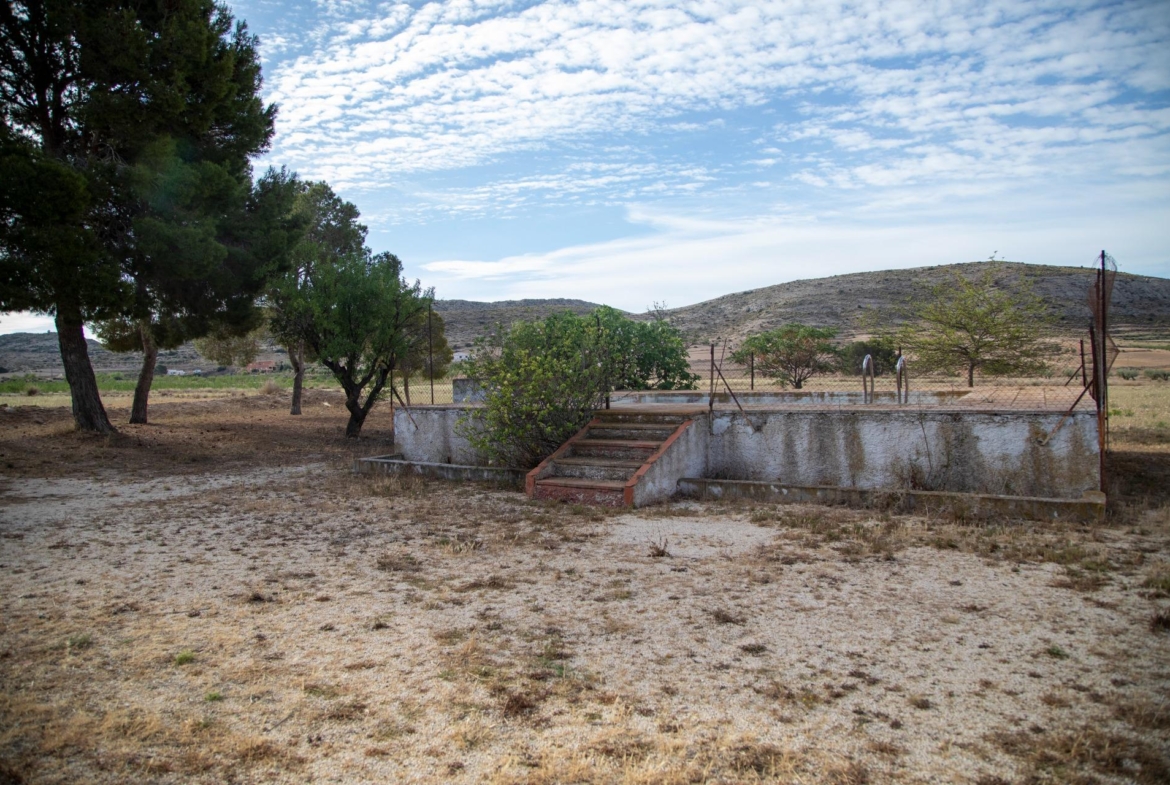 Terreno de 4 hectáreas situado en la zona de Torre del Rico (Jumilla) dentro del cual existe una casa para reformar de 2 plantas con 300m en total con 4 habitaciones, 1 baño y distribuida en varios departamentos, tiene piscina y otras instalaciones para animales, cuadras o gallineros.