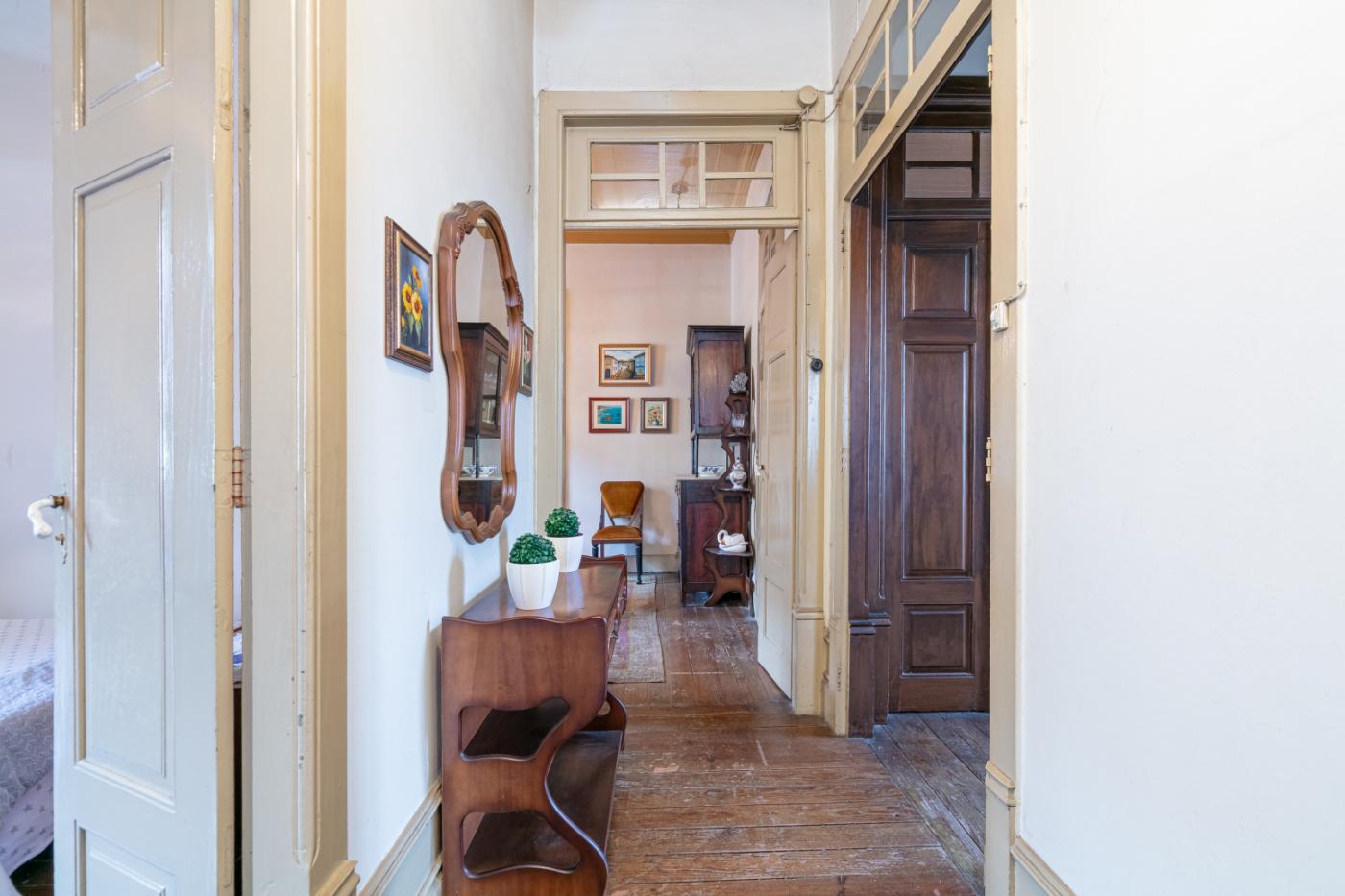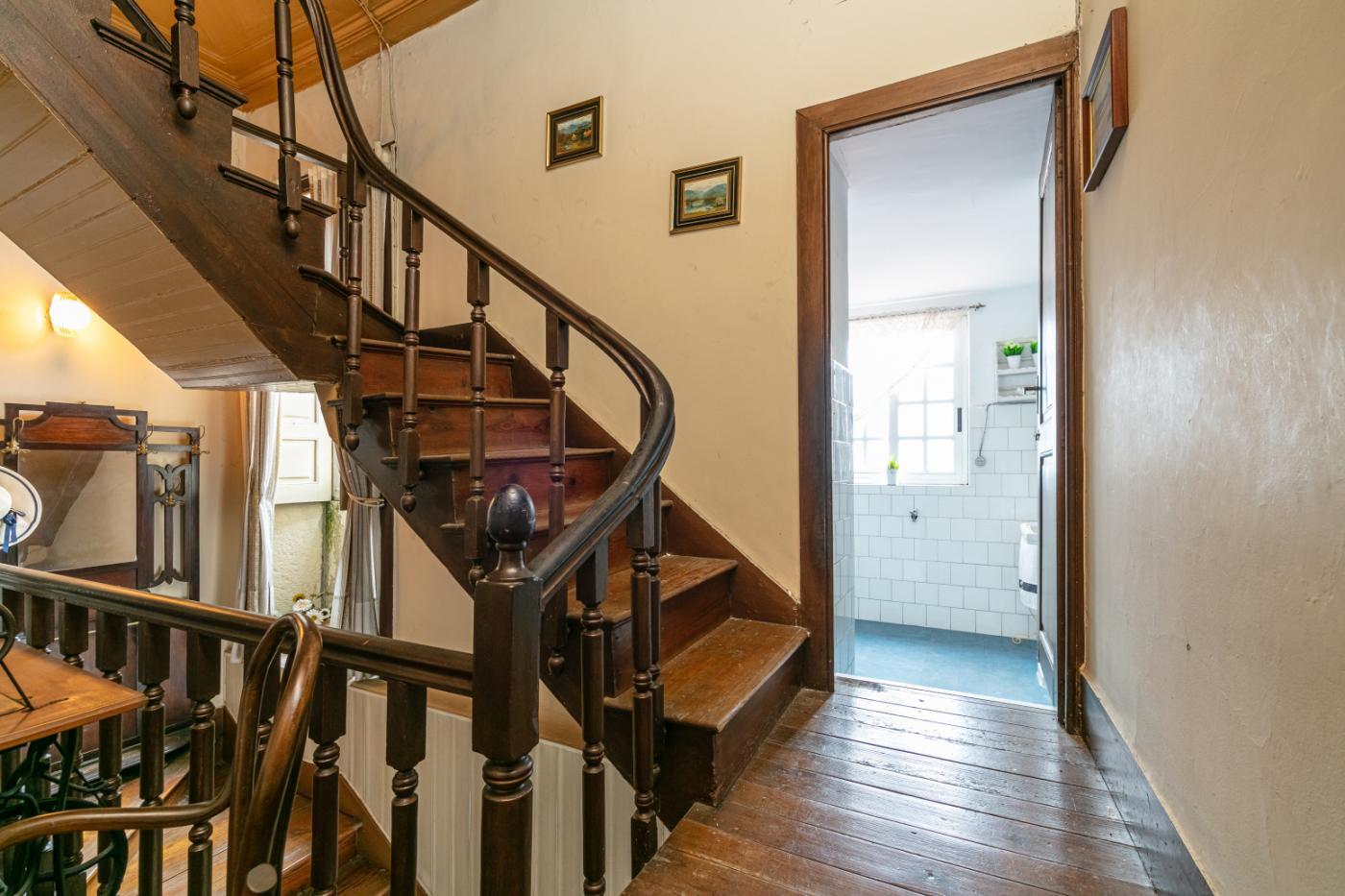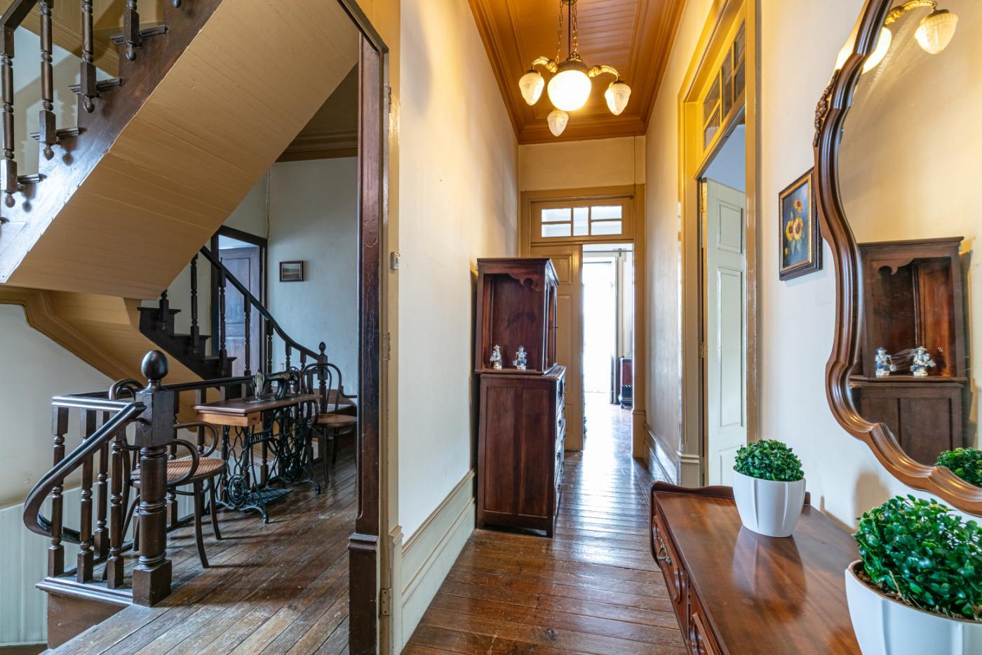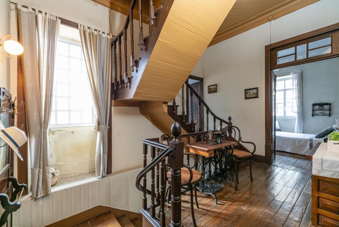 El vestíbulo de entrada principal tiene la escalera de madera original al primer piso, donde se encuentra la zona de vivienda principal y se compone de 3 habitaciones dobles, salón, cocina y sala de desayuno, comedor y la escalera que continúa hasta el ático con ventanas que idealmente podría convertirse a un dormitorio adicional con baño.