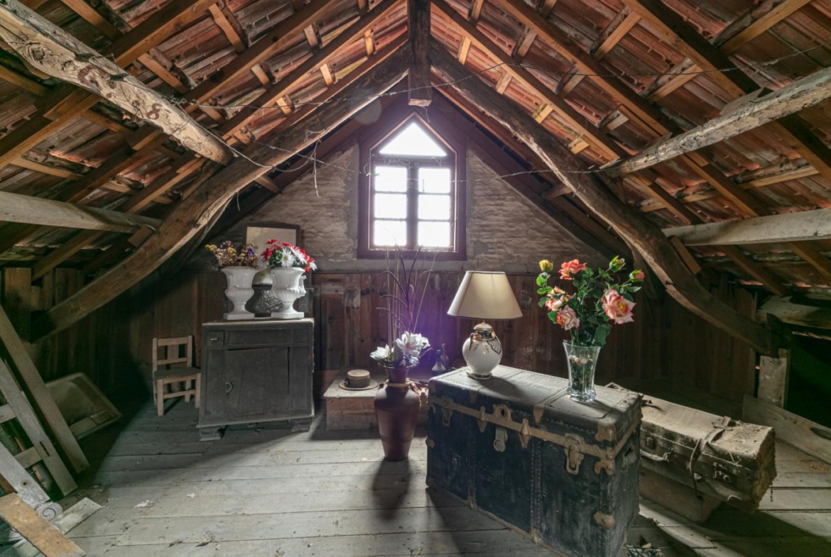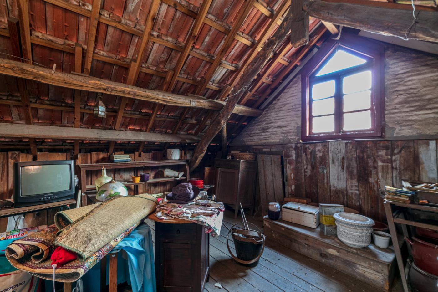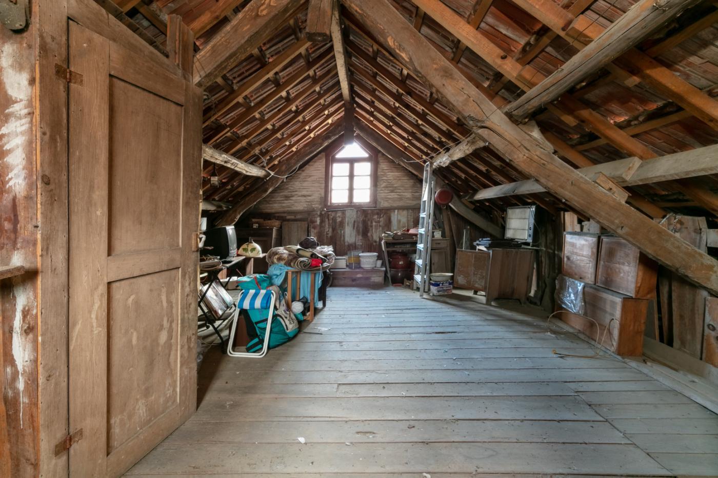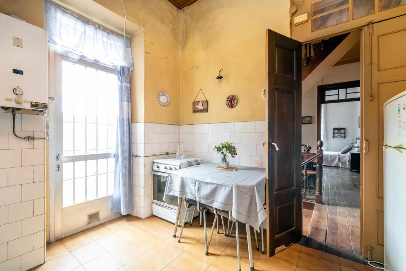 El vestíbulo de entrada principal tiene la escalera de madera original al primer piso, donde se encuentra la zona de vivienda principal y se compone de 3 habitaciones dobles, salón, cocina y sala de desayuno, comedor y la escalera que continúa hasta el ático con ventanas que idealmente podría convertirse a un dormitorio adicional con baño.