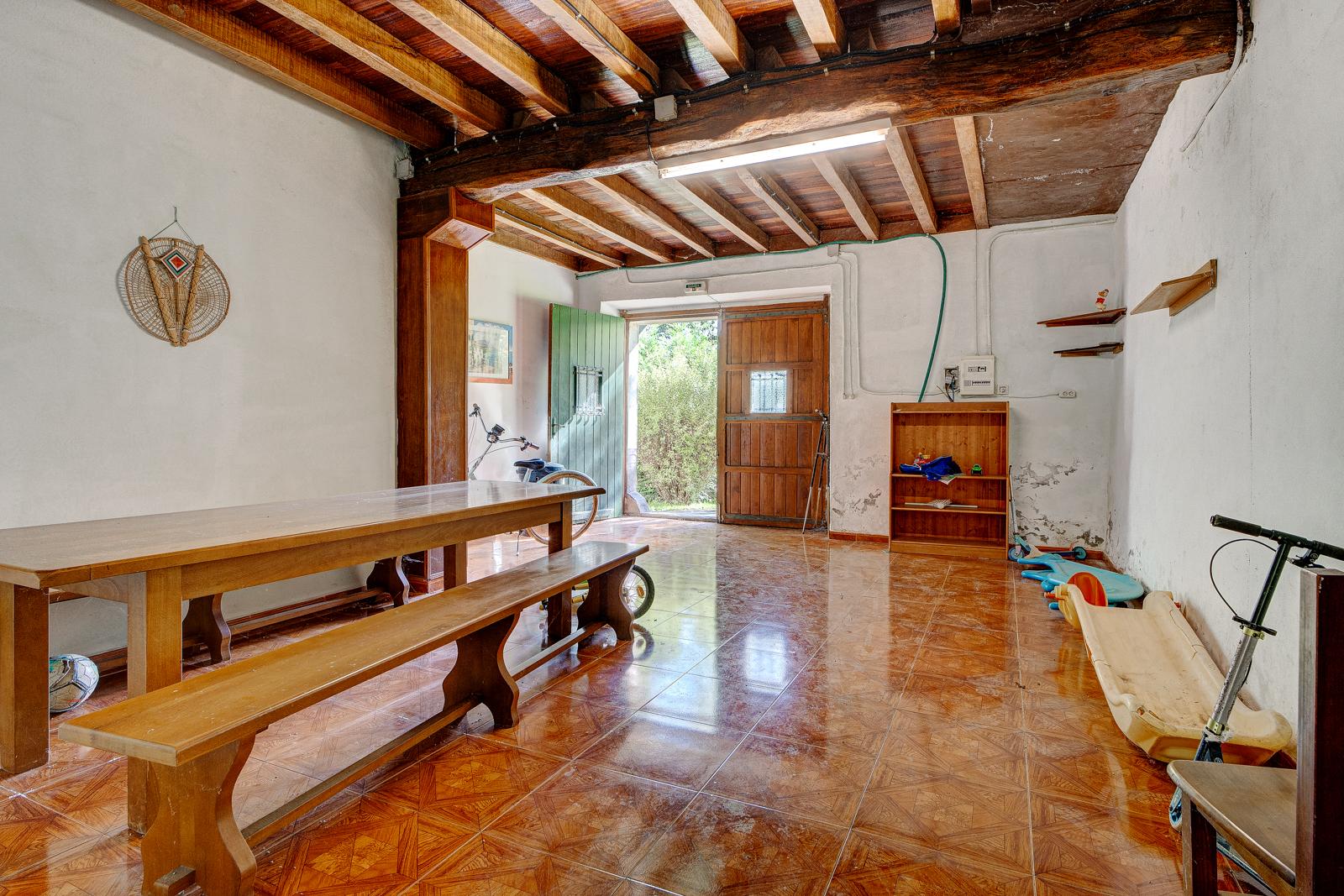 Anteriormente fue casa rural y en la actualidad cuenta con una planta que tiene zona de ocio tipo txoko con baño y se sale a una zona de jardin .