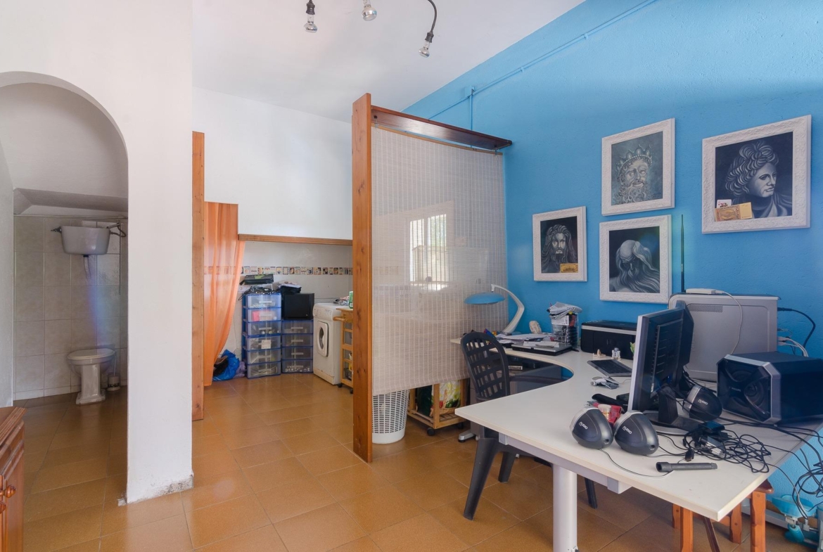 La planta -1 alberga dos habitaciones dobles, una habitación simple, un baño completo y un salón luminoso. En planta -2, hay un trastero, un taller de herramientas y un estudio de 27 m² con cocina y baño propio, perfecto para invitados o como espacio de trabajo.