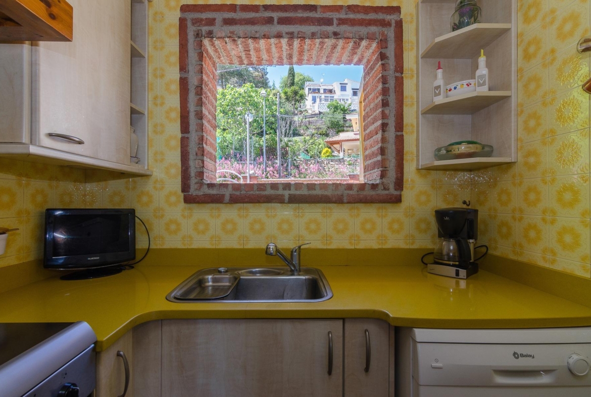 En la planta principal encontrarás una cocina totalmente equipada, una habitación doble, un baño completo y un salón con chimenea que ofrece vistas impresionantes a las montañas y al mar. Además podrás disfrutar de una terraza de 22 m² ideal para relajarte.