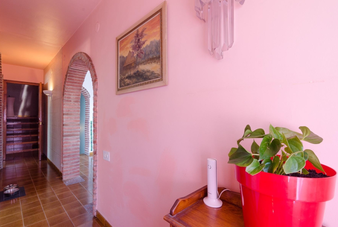La zona exterior es un auténtico paraíso con barbacoa, piscina vallada, solarium, jardín, trasteros y un cuarto de maquinaria. También dispone de depósitos de agua de lluvia, árboles frutales y un huerto para los amantes de la naturaleza.