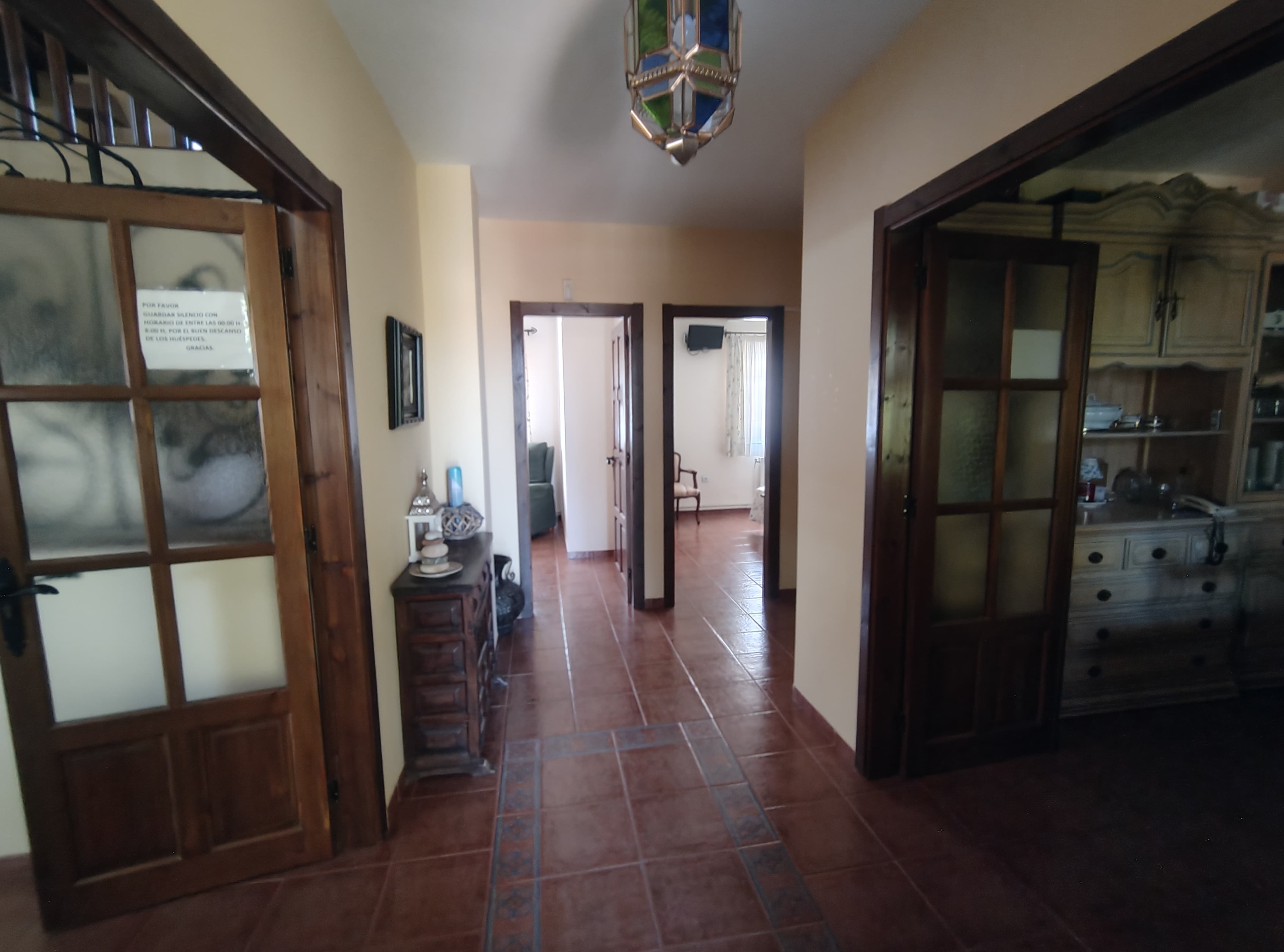 Un pasillo conecta esta parte de la casa con el resto de la propiedad, en el cual se encuentra un baño adicional, un trastero y dos cabinas de masaje, perfectas para complementar la oferta de servicios de la casa rural.