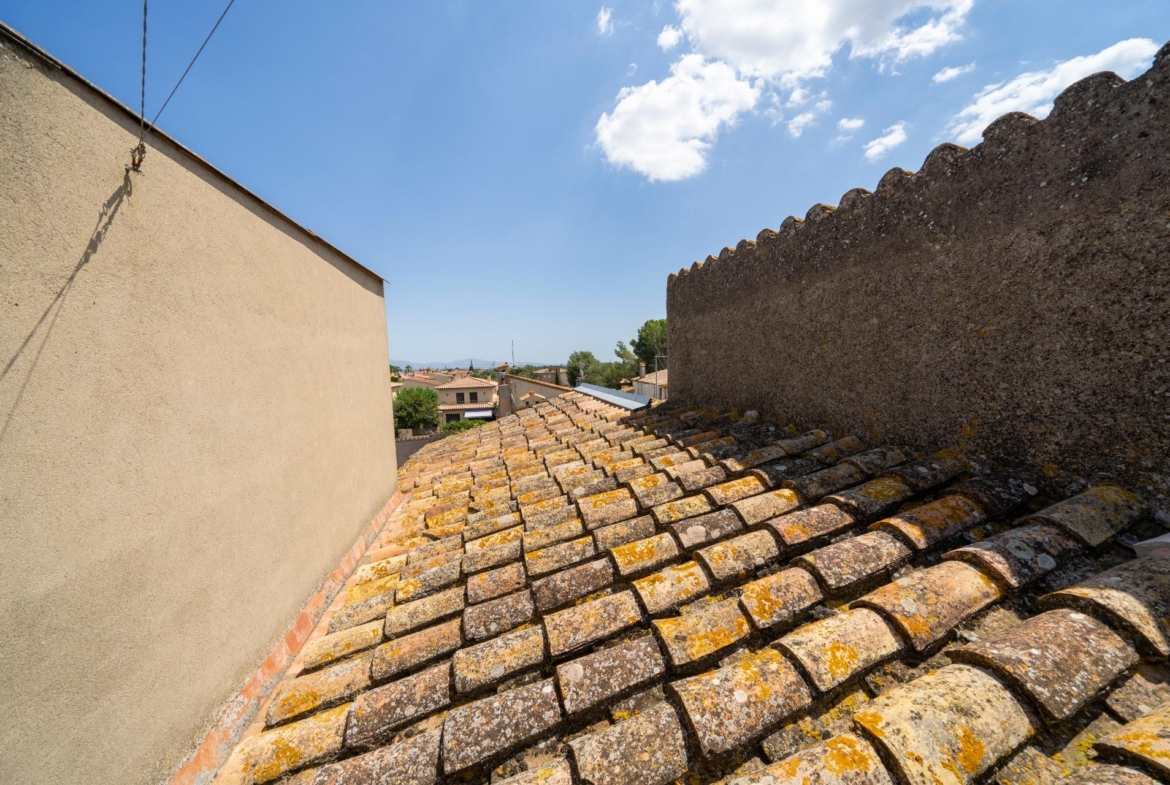 La cubierta está realizada como terraza plana con rasilla catalana y cuenta con un trastero que también puede habilitarse para otros menesteres. Las vistas a la plana Ampurdanesa son magnificas y puede verse el mar.