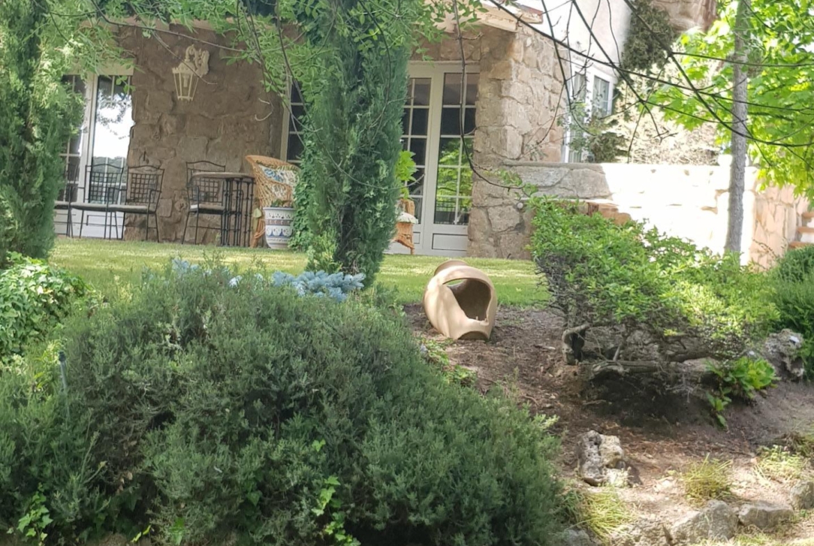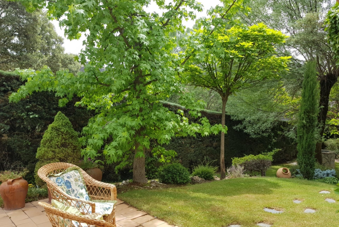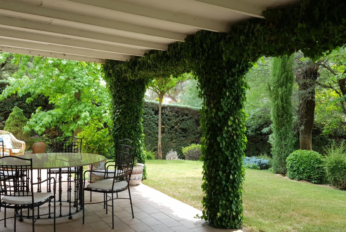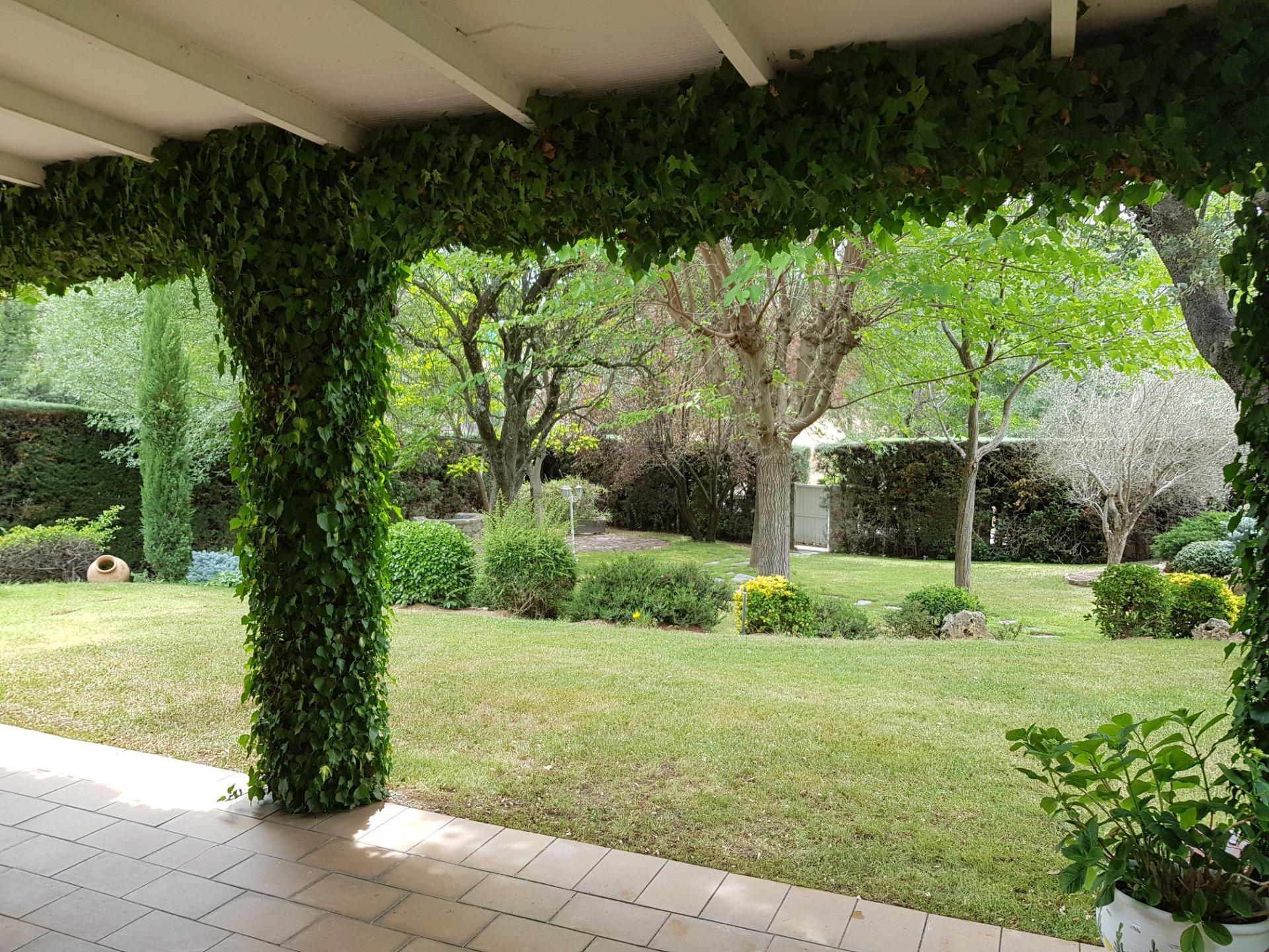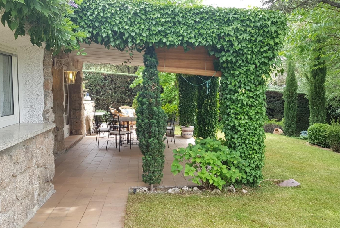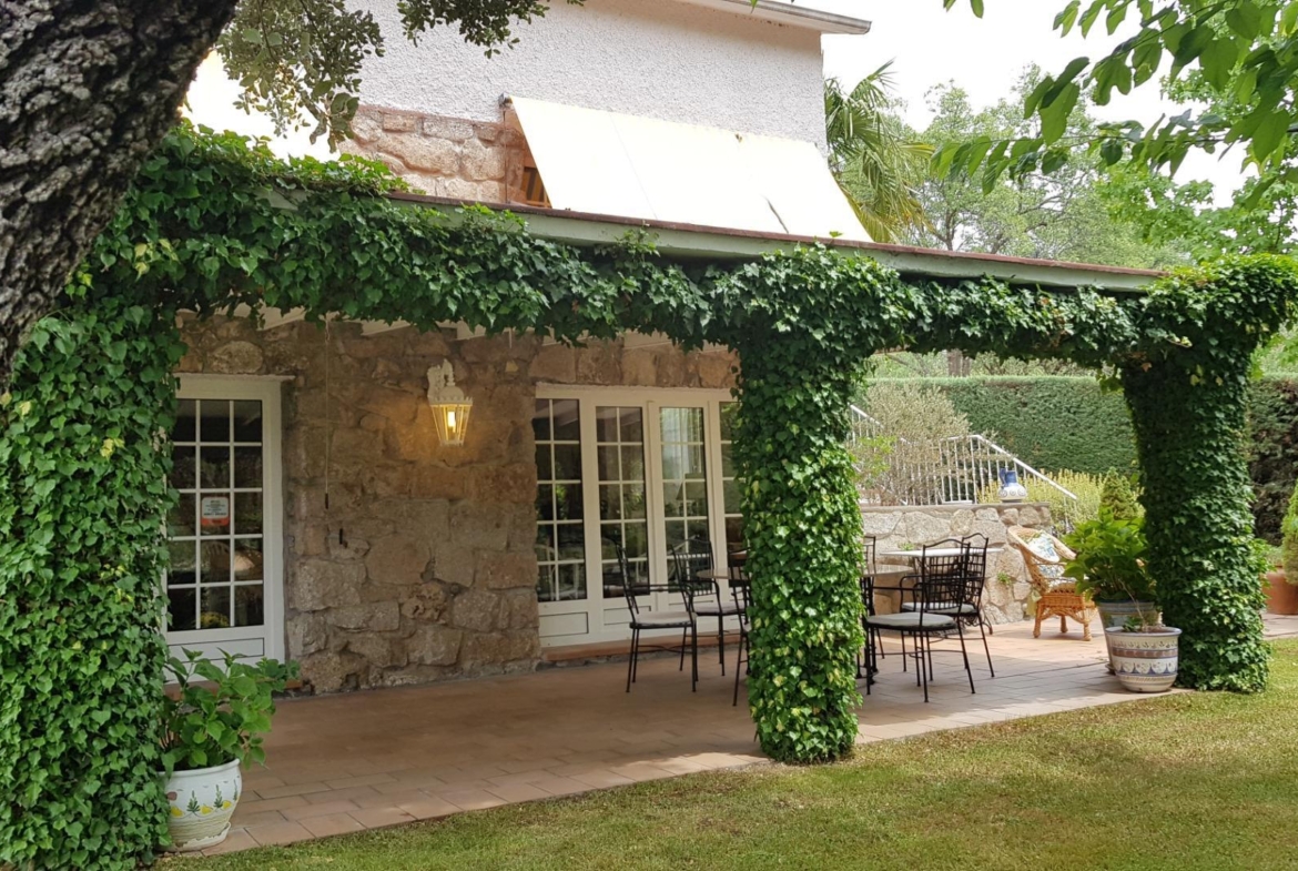 El chalet está rodeado de un amplio y frondoso jardín a dos niveles con setos y variada arboleda, dispuestos en un bonito diseño. Porche acondicionado, riego automático y piscina, donde podrás gozar de una tranquilidad absoluta.
