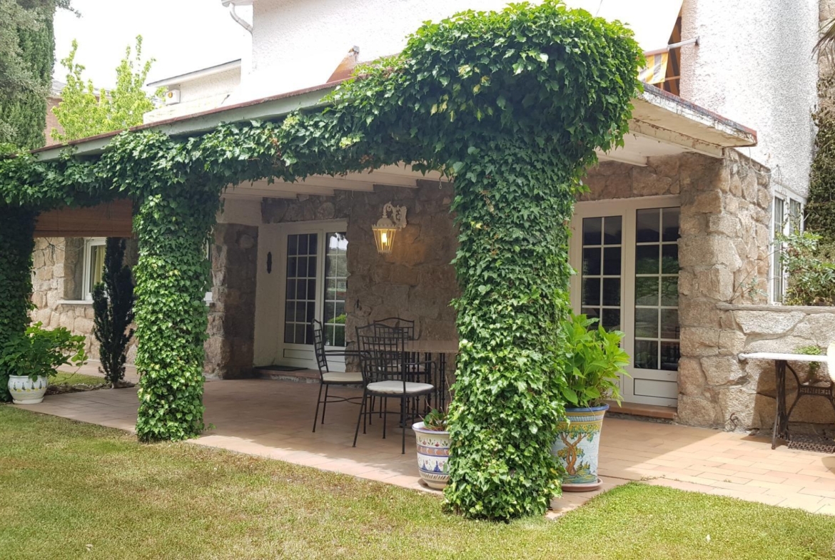Chalet independiente de dos alturas situado a escasos metros del pantano de Cerro Alarcón, Valdemorillo (Madrid). El Chalet está construido sobre una parcela de 1.392 m2 distribuido en dos plantas.