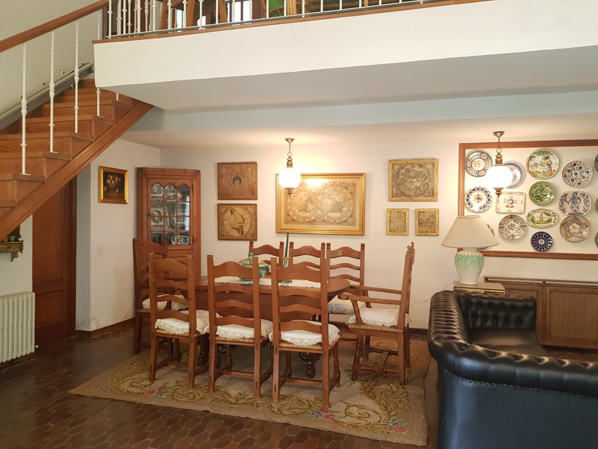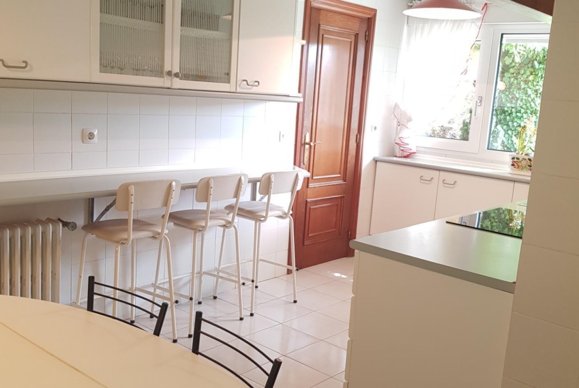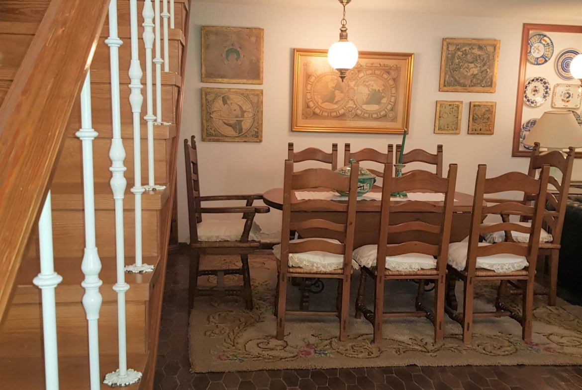 La Planta Baja dispone de un confortable salón-comedor con chimenea y grandes ventanales con carpintería en aluminio con doble acristalamiento tipo “Climatit” con una altura de techo en esa estancia de mas de 4 metros de altura; Dispone en la misma planta de una amplia cocina con office mas una habitación de servicio y un aseo. Accedemos a la segunda planta por una escalera cómoda de un tramo desembarcando a un amplio distribuidor desde donde llegamos a un cuarto de estar-salón, cuatro dormitorios, dos baños y una terraza acristalada.
