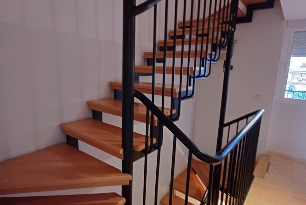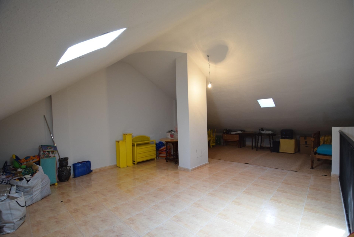 Planta primera que se compone de distribuidor, tres dormitorios todos con armarios empotrados, uno de ellos con terraza y baño en suite, otro cuarto de baño completo que da servicio a los demás dormitorios, escalera y buhardilla diáfana.