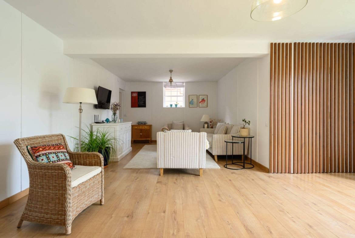 La amplitud de espacios y la luz natural predominan en esta vivienda, creando un ambiente acogedor y confortable. Además, cuenta con un apartamento completo e independiente en la planta baja, de dos dormitorios dobles, equipado con cocina integrada a un gran salón, baño completo y un aseo grande, perfecto para recibir a tus invitados o utilizarlo como zona adicional a la casa