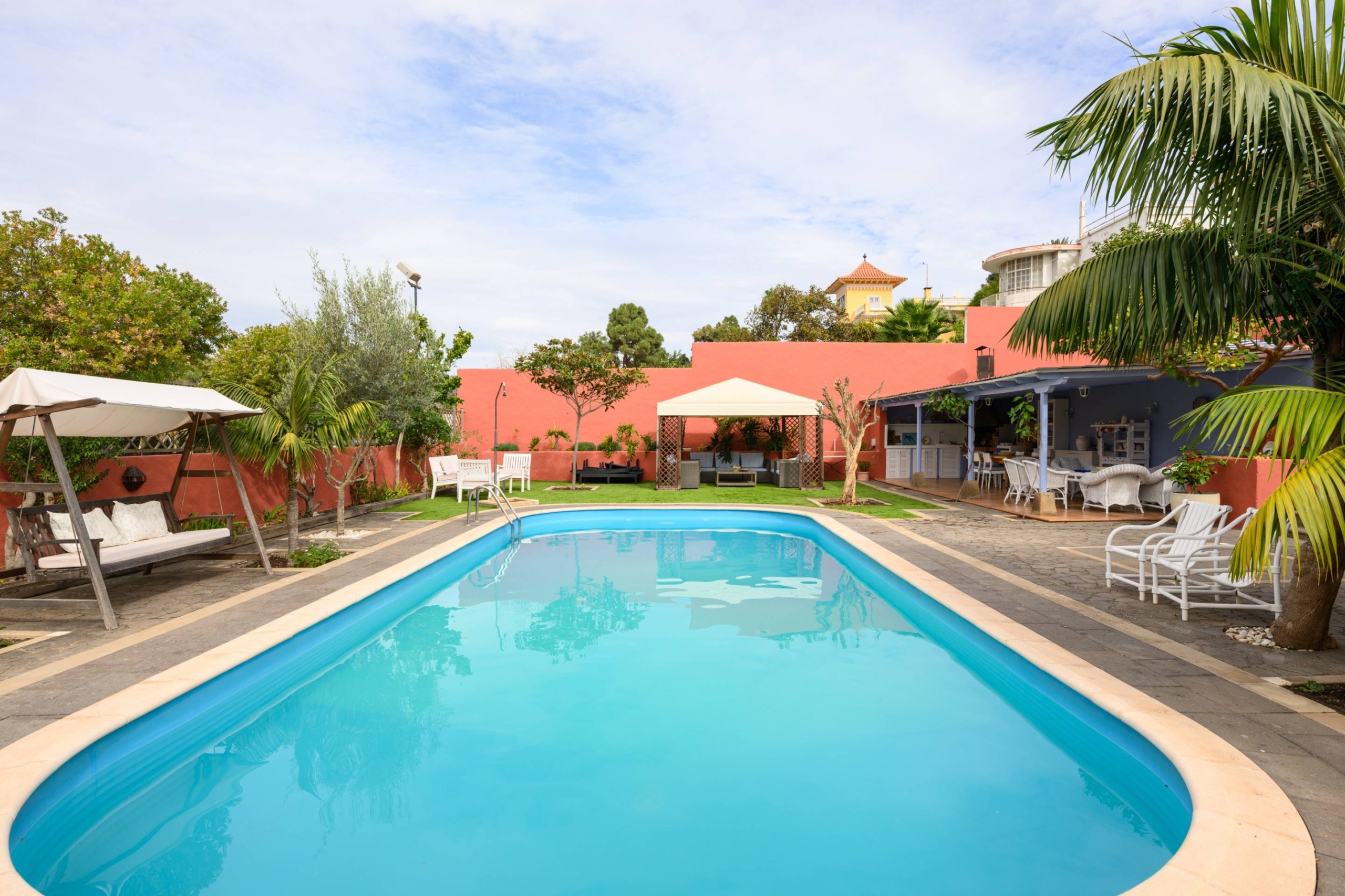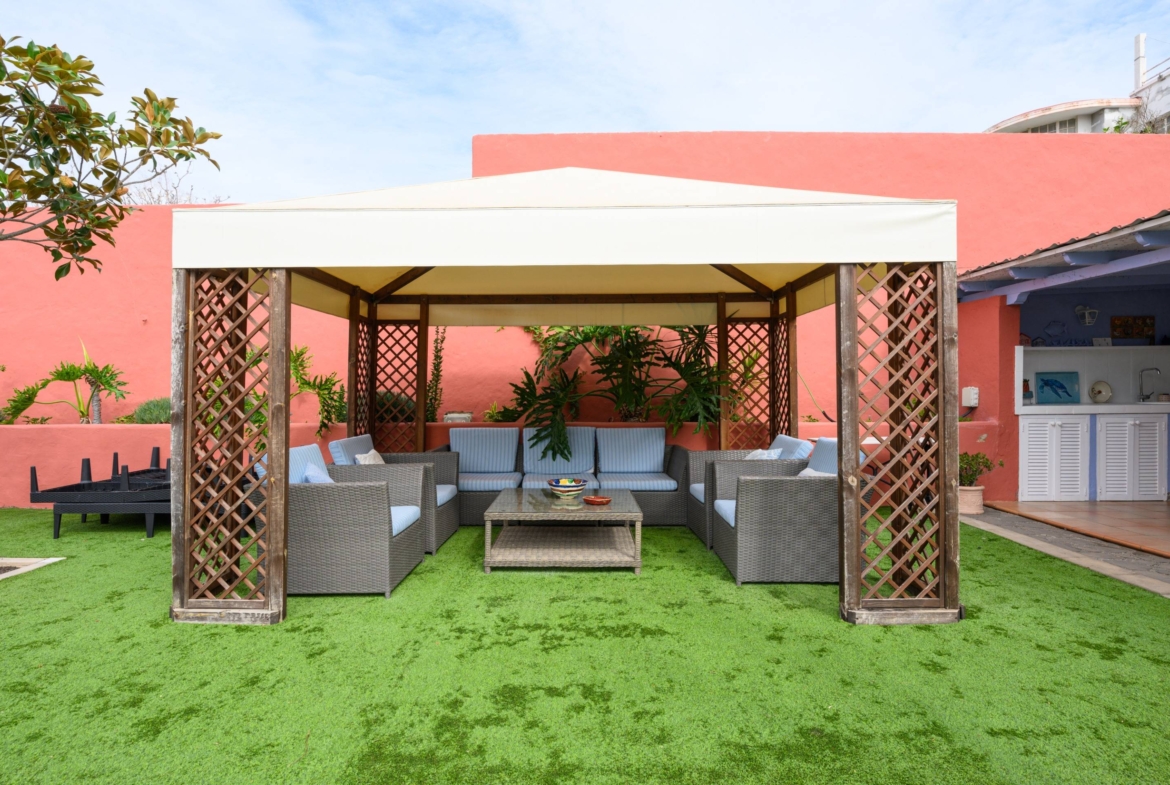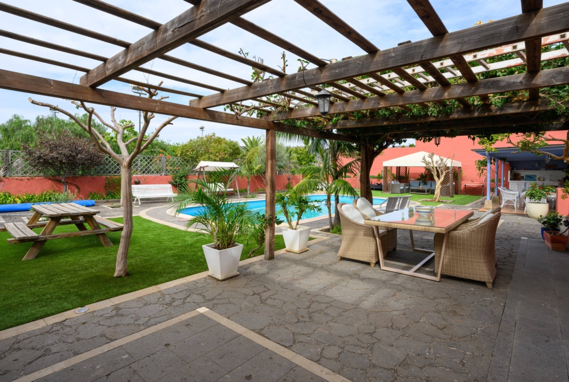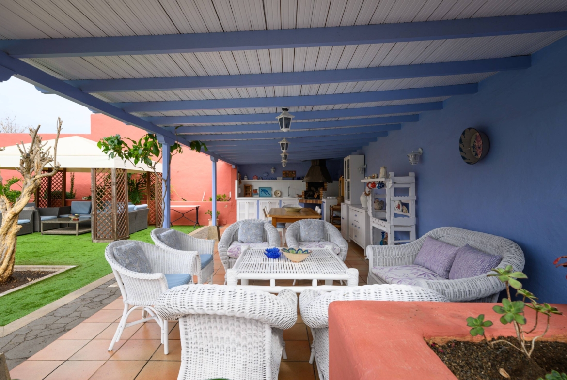 Esta propiedad te brinda la oportunidad de disfrutar de amplios espacios al aire libre con jardines muy bien cuidados, una fantástica piscina, solarium, baños exteriores y una zona de barbacoa para disfrutar de momentos inolvidables. Además, podrás deleitarte con las espectaculares vistas del entorno natural del Monte Lentiscal y al centro de la isla