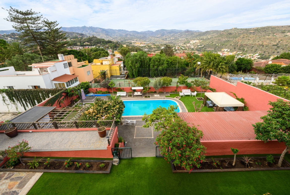 En lo mas alto del Monte Lentiscal y en el municipio de Santa Brígida, zona residencial ,a tan solo 10 Km de Las Palmas de Gran Canaria por autovía, se encuentra esta propiedad de más de 425 m² con una parcela de casi 1080 m².