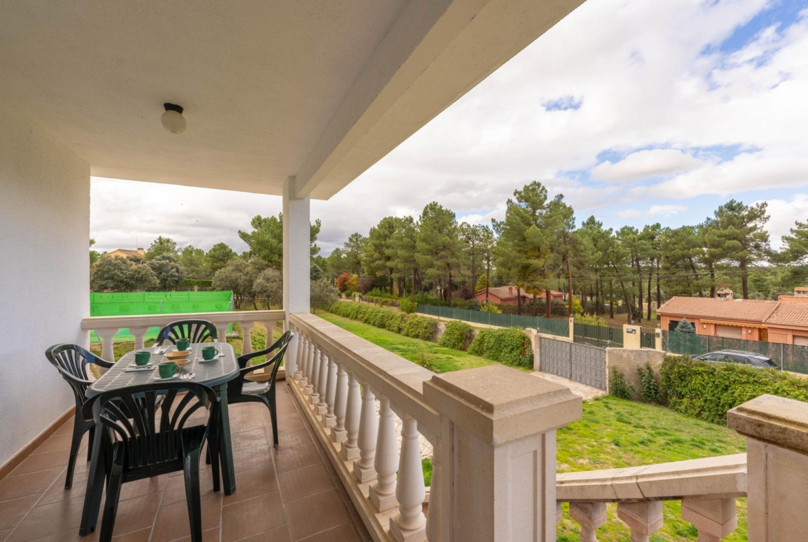 En cuanto a la urbanización en la que se encuentra la parcela y por tanto el chalet, dispone de amplias calles, restaurante, Iglesia y zona social con supermercado, restauración ,zonas infantiles y de deporte y está situada a escasos kilometros del pueblo de Marugán y a treinta kilometros de la localidad de Segovia