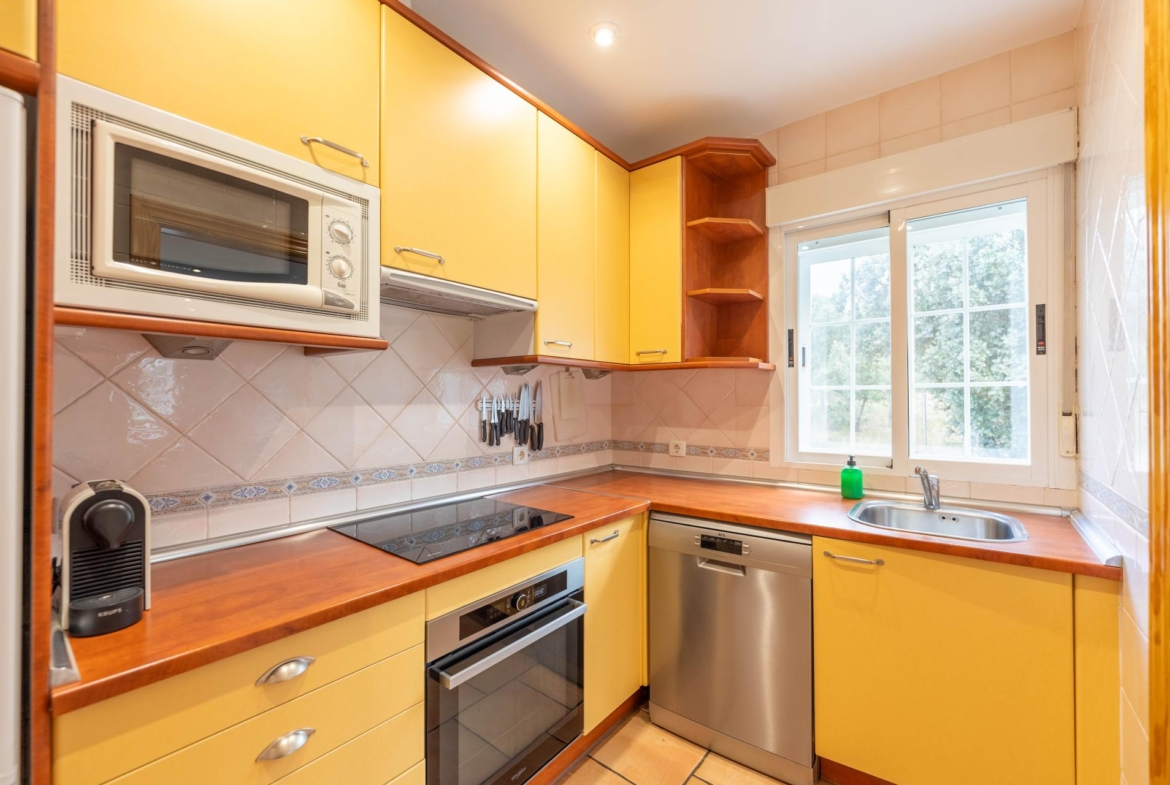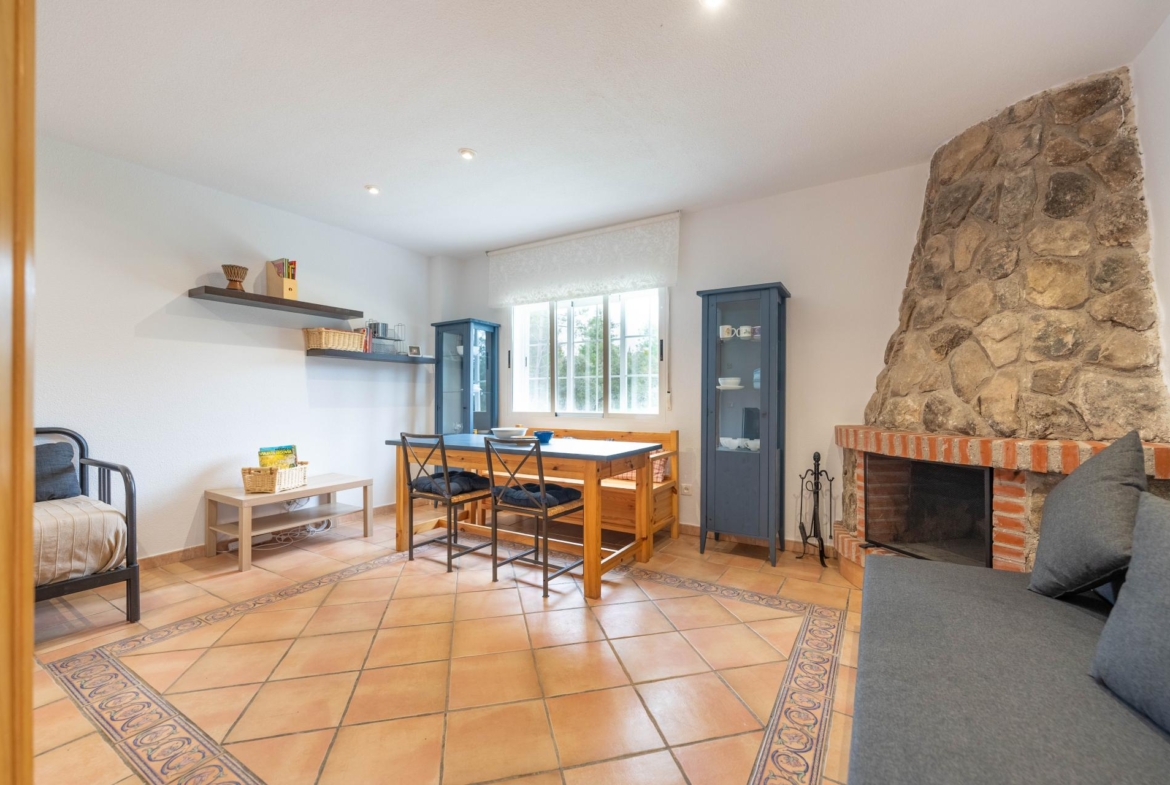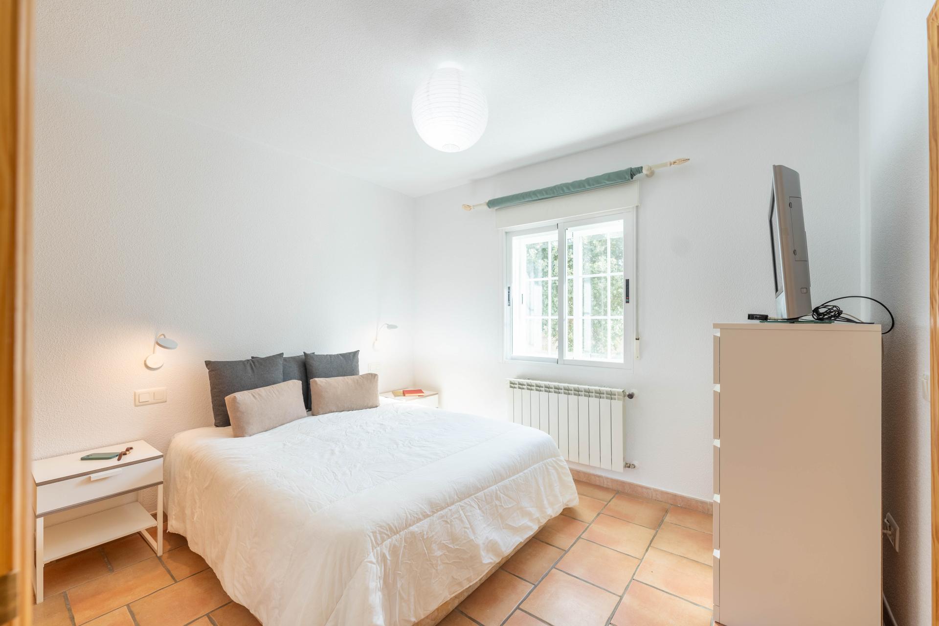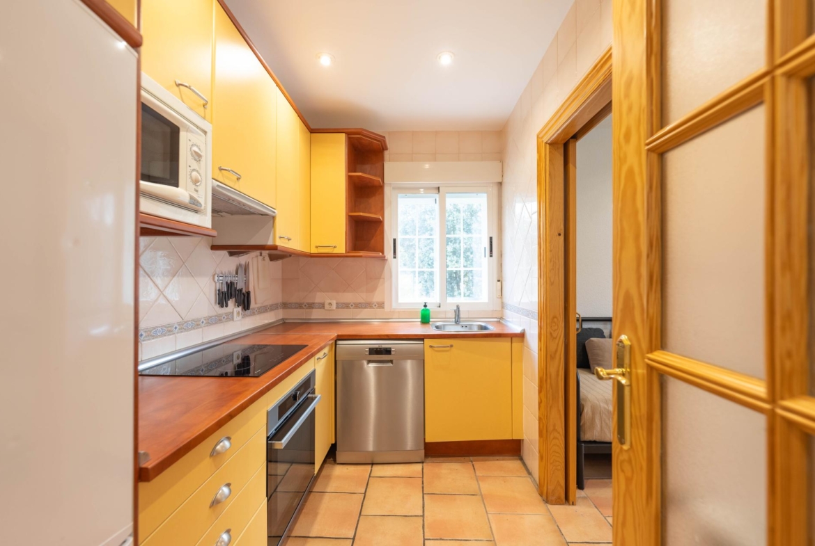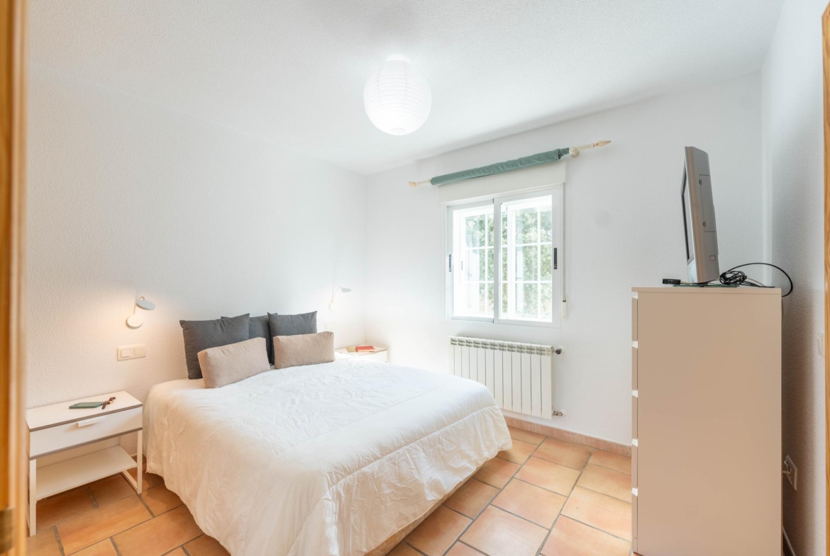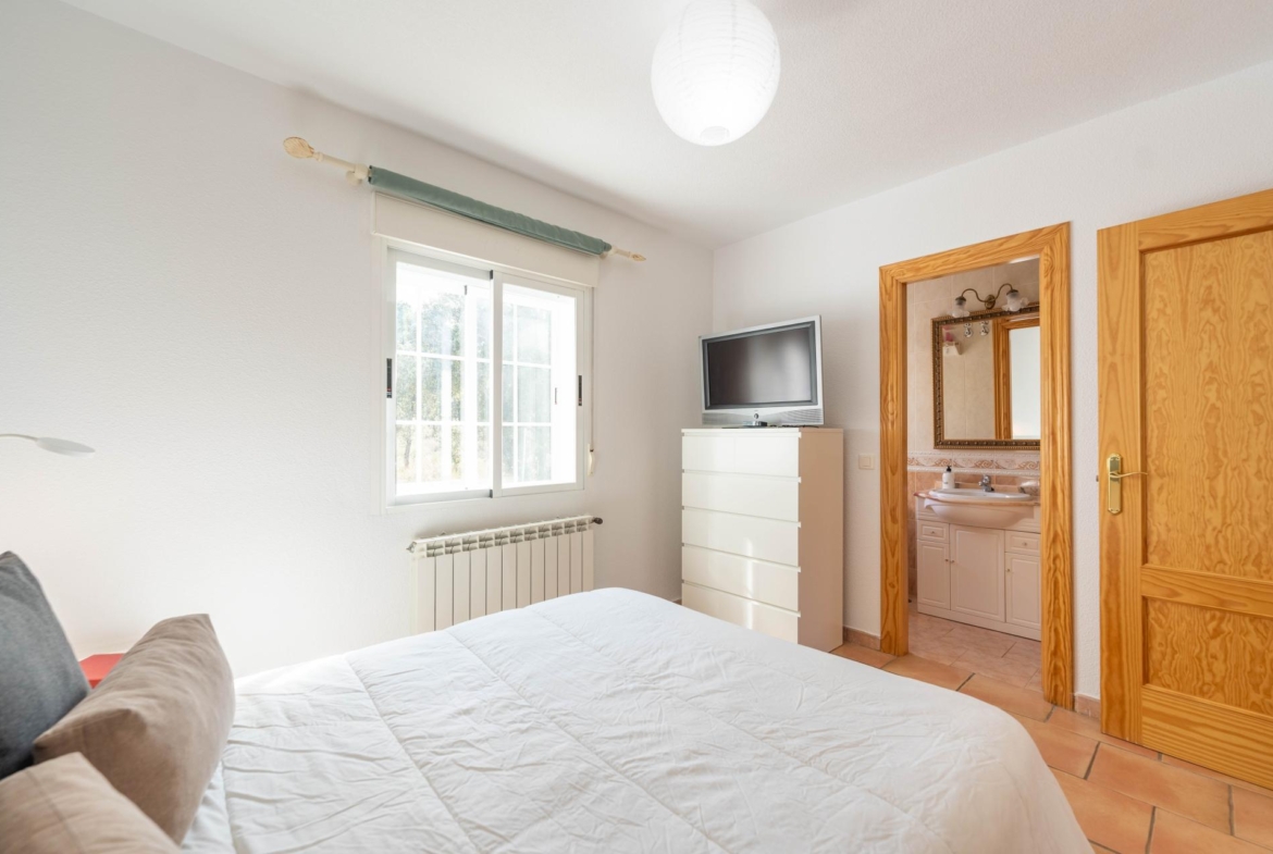 El inmueble, en perfecto estado y con todas las estancias con vistas al jardin, fue construido en el año 2000 y está totalmente actualizado. Consta de de porche, salón comedor, habitación principal en suite, dos amplias habitaciones, dos baños con ventana (uno de ellos incorporado a la habitación principal) y cocina independiente totalmente equipada. Adicionalmente dispone de dobles ventanas, calefacción , armarios empotrados en todas las habitaciones , y una zona de 96 m2 en la parte baja del edificio a nivel del jardín distribuida en amplio aparcamiento y espacio para almacenamiento/bodega con ventanas al exterior.