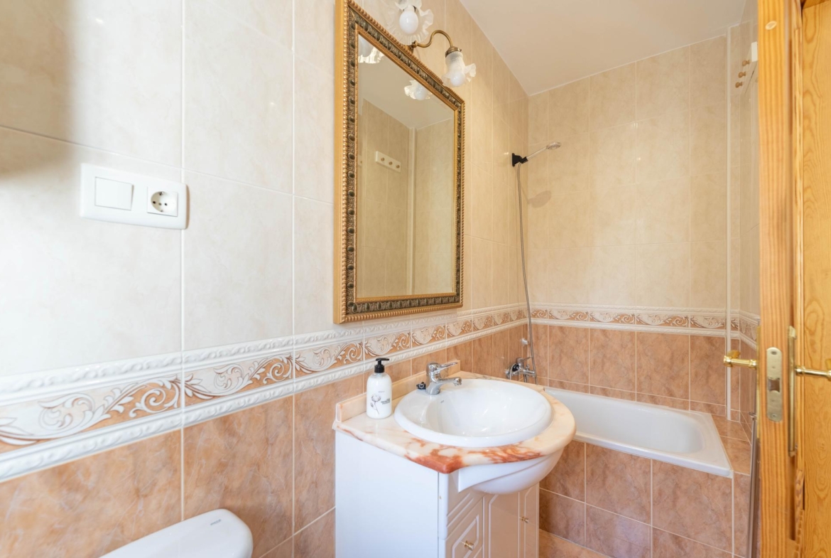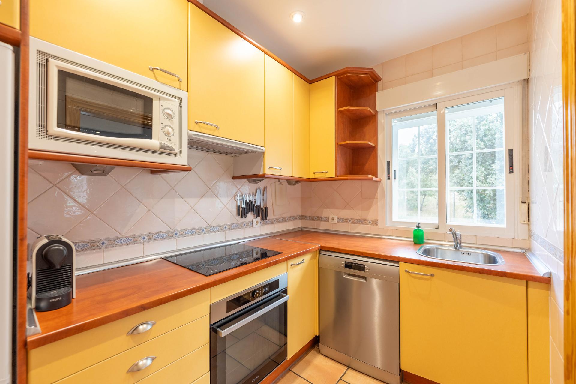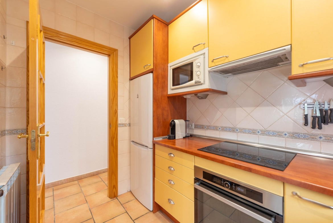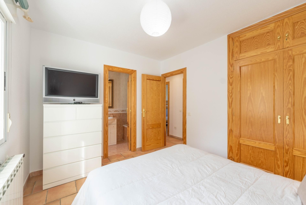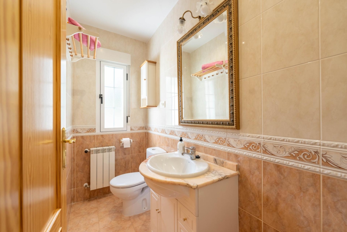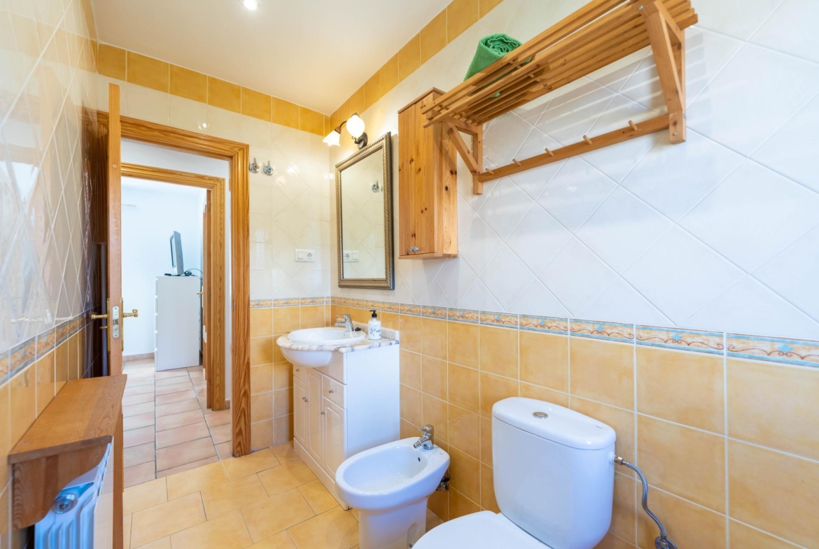 El inmueble, en perfecto estado y con todas las estancias con vistas al jardin, fue construido en el año 2000 y está totalmente actualizado. Consta de de porche, salón comedor, habitación principal en suite, dos amplias habitaciones, dos baños con ventana (uno de ellos incorporado a la habitación principal) y cocina independiente totalmente equipada. Adicionalmente dispone de dobles ventanas, calefacción , armarios empotrados en todas las habitaciones , y una zona de 96 m2 en la parte baja del edificio a nivel del jardín distribuida en amplio aparcamiento y espacio para almacenamiento/bodega con ventanas al exterior.