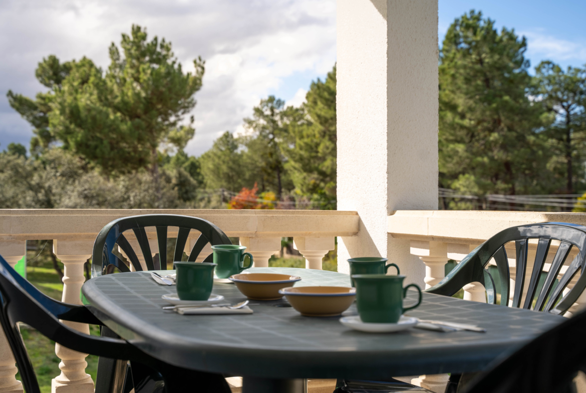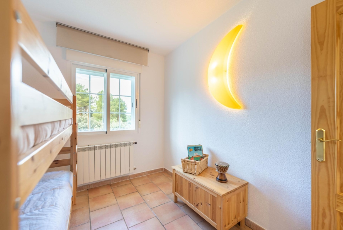 Situado en la Urbanización Siete Fuentes (Urbanización Parraces), nos encontramos dentro de una parcela de 2784 m2, totalmente lisa y arbolada, este chalet muy luminoso con amplia piscina, porche y zona de barbacoa
