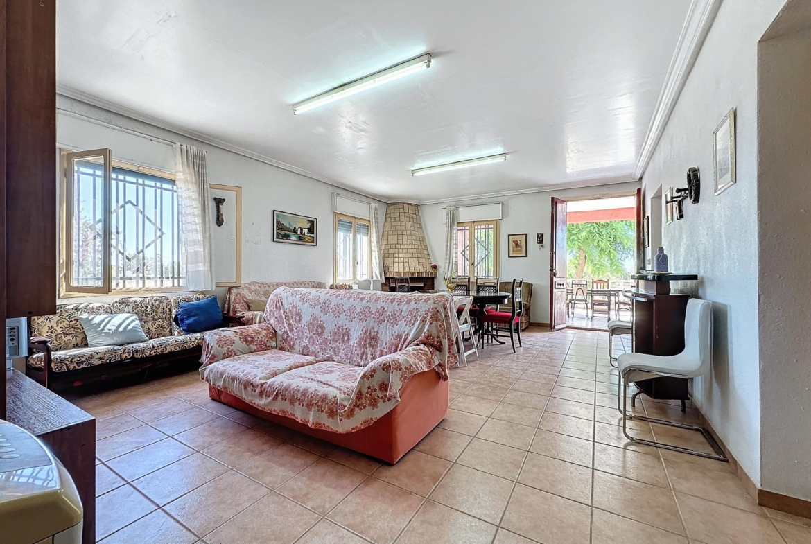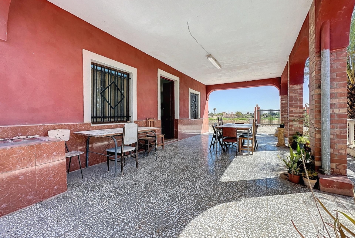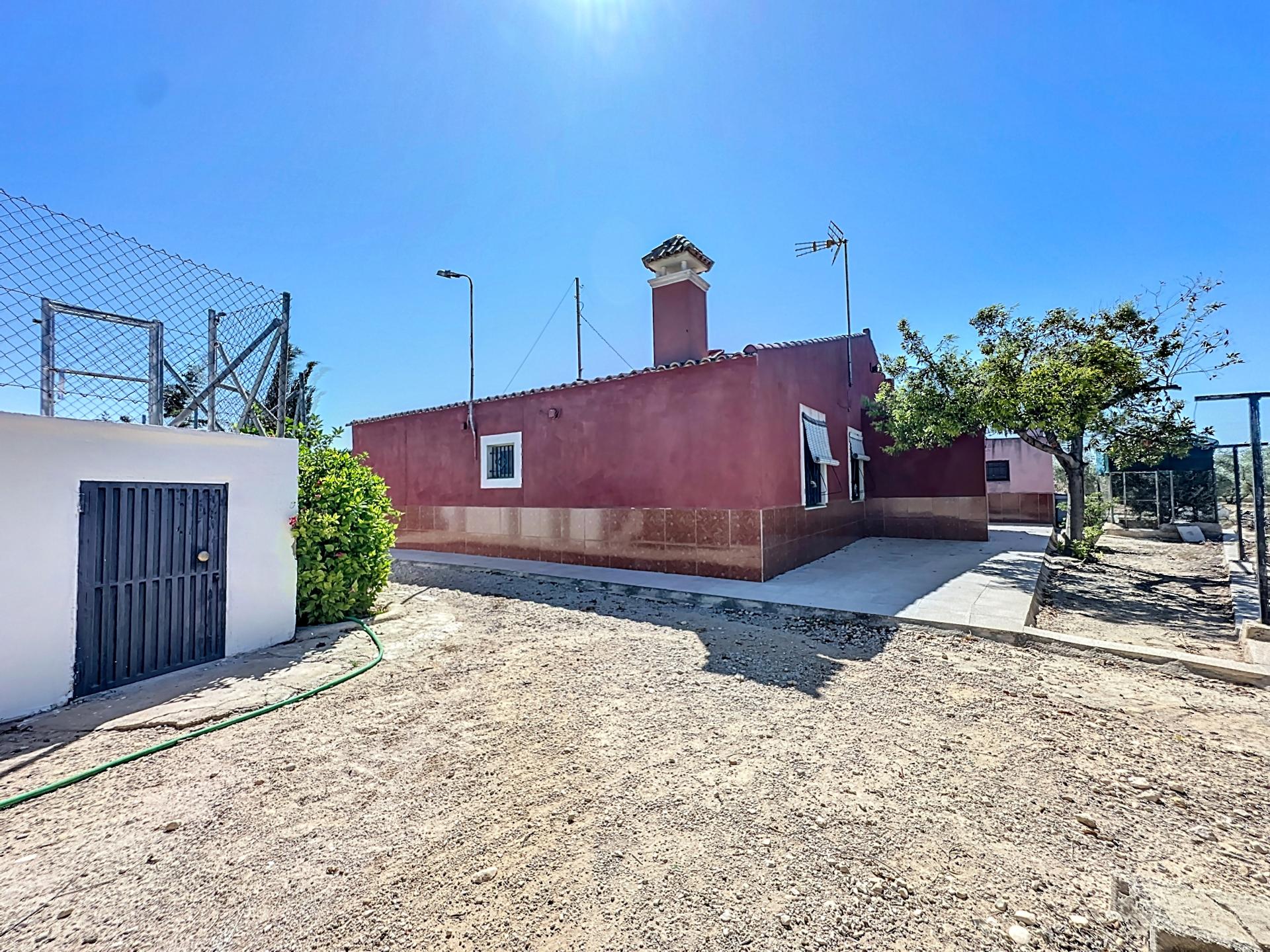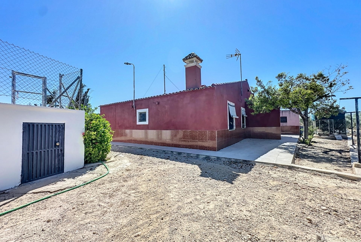 Se vende chalet independiente de planta baja en la partida de Matola, en el término de Elche con varias dependencias independientes, piscina independiente construido sobre una parcela rustica de unos 11.000 m2