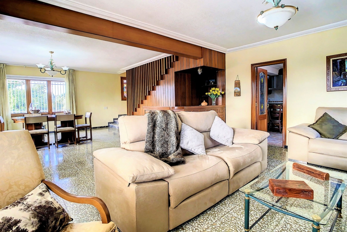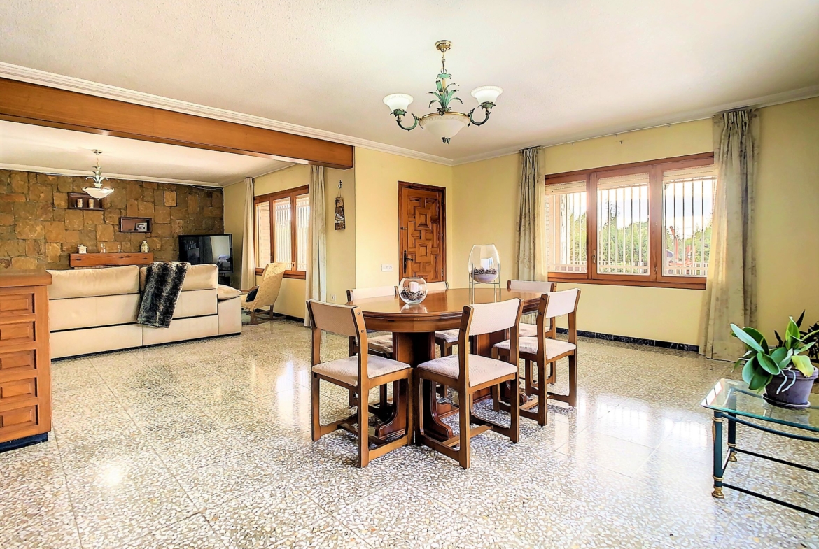 La parcela mide un total de 1919 m2. En el terreno privado totalmente cerrado, se encuentra la vivienda unifamiliar independiente de 2 plantas de 257 m2 construidos, la piscina de 10 metros de largo x 5 metros de ancho, unas dependencias independientes de 65 m2. La finca tiene a su favor varias certidumbres sobre otras fincas vecinas, lo que le permite acceder a la vivienda desde varios sitios.
