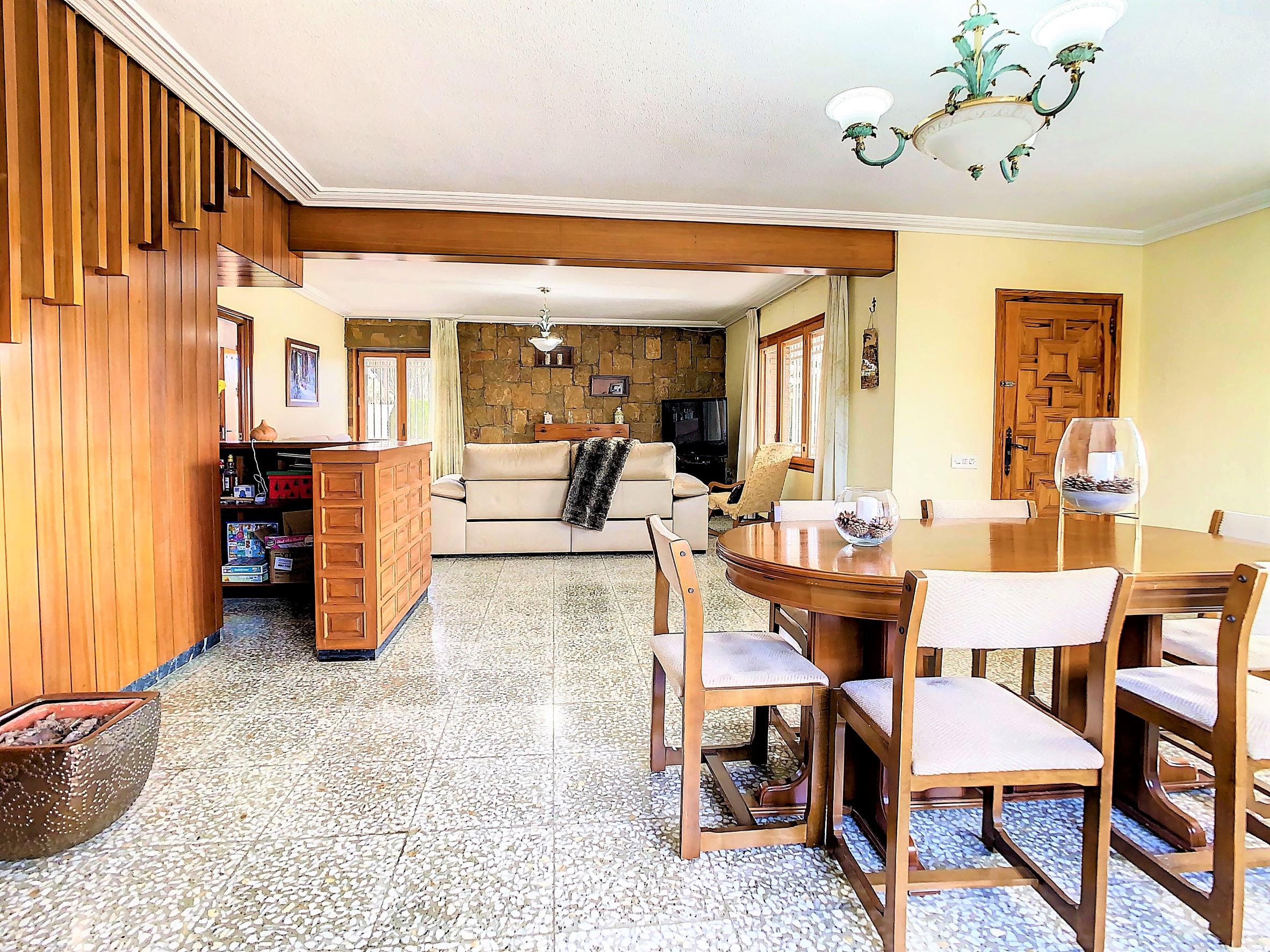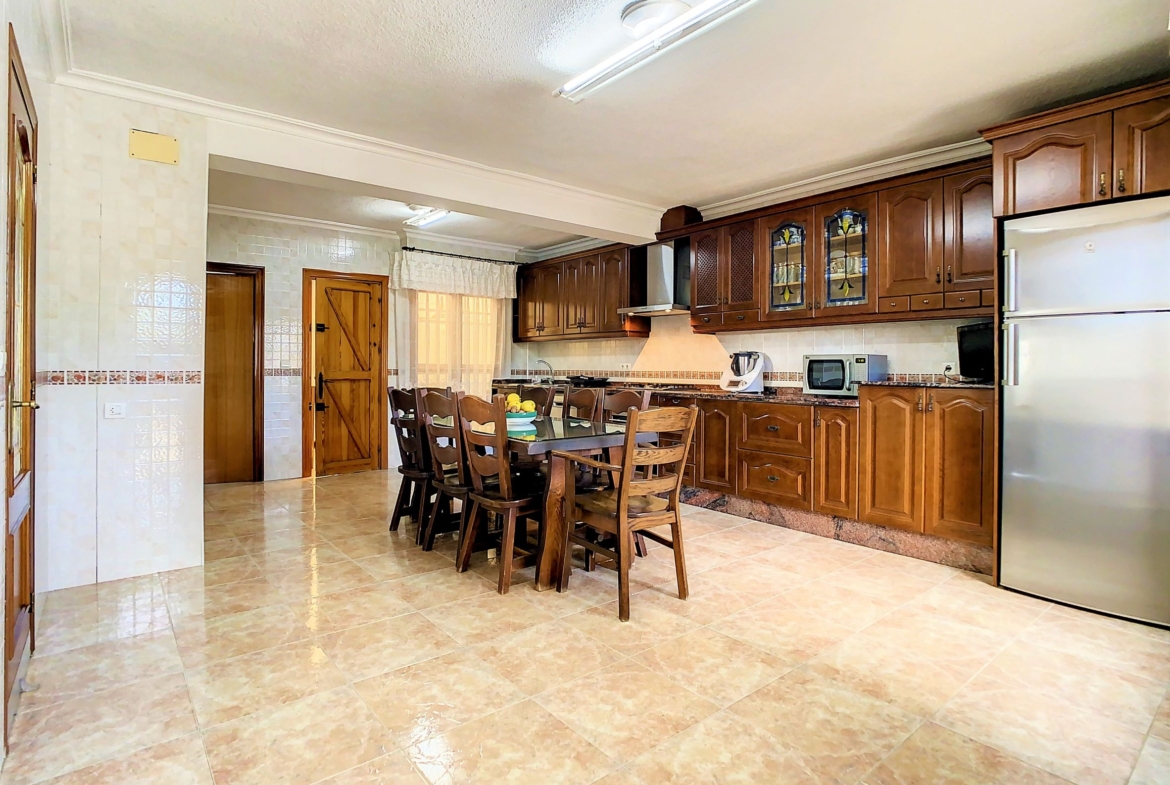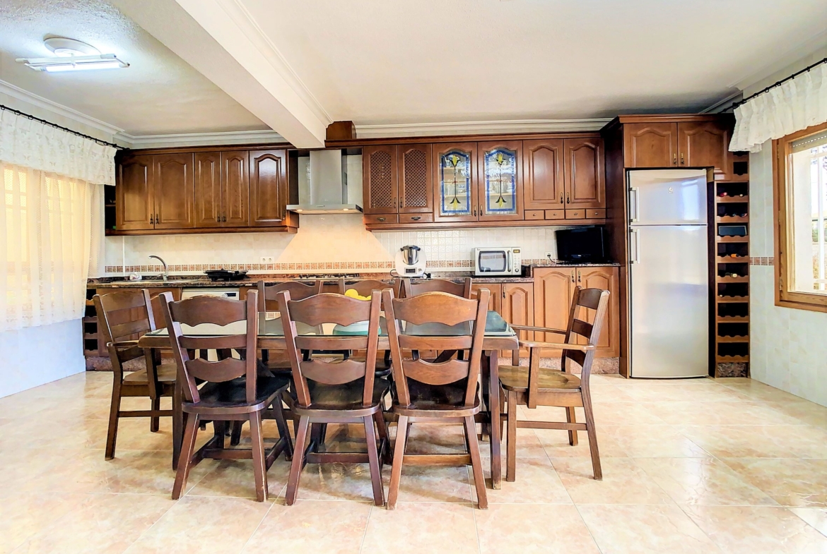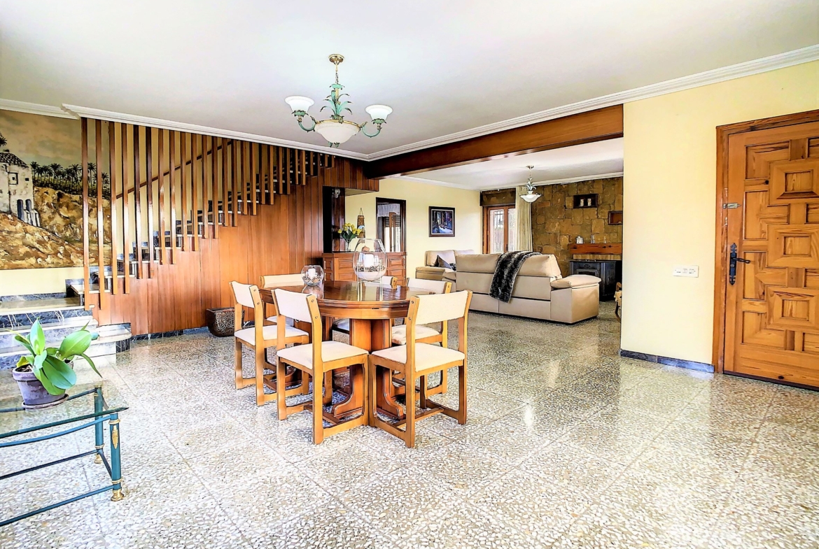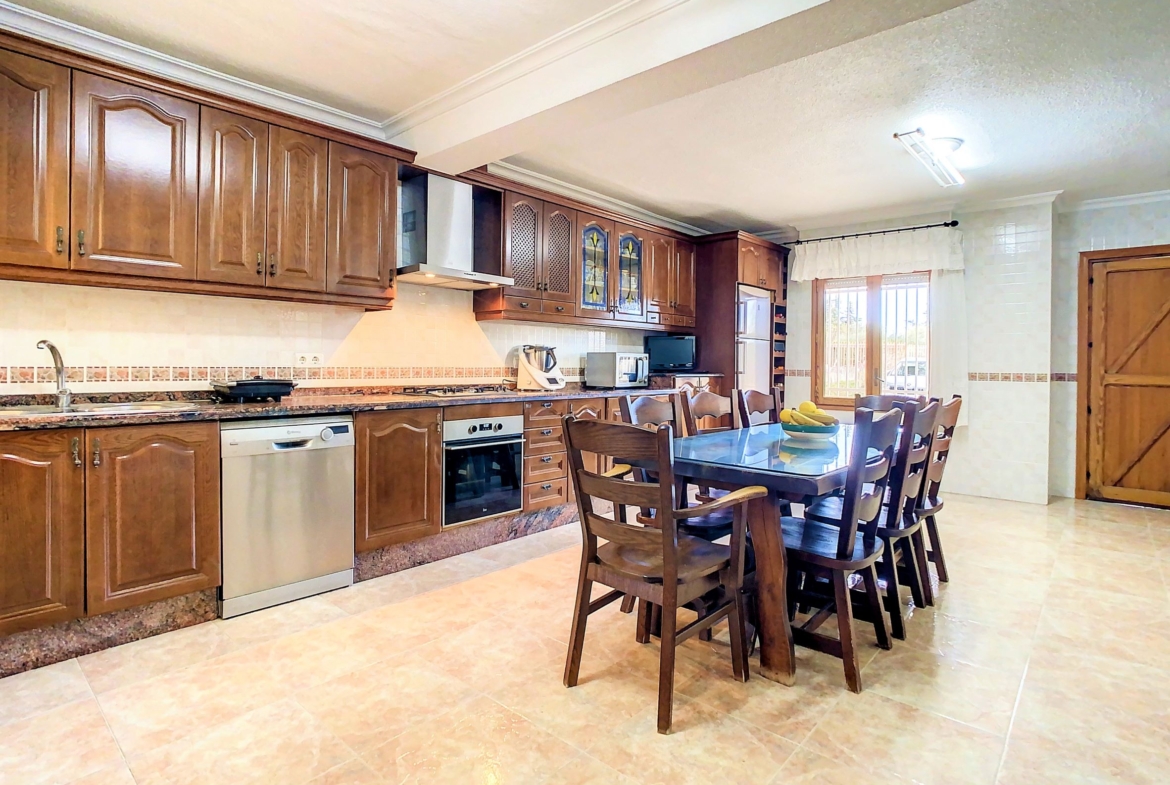 – La planta baja se encuentra una cocina independiente de unos 20 m2 totalmente equipada, un cuarto de baño con ducha y una galería cerrada con barbacoa y la lavandería. Lo más sorprendente de esta planta es el gran salón comedor de unos 80 m2, una estancia ideal para pasar tiempo en familia o entre amigos. Desde el comedor se accede a una amplia terraza cubierta.