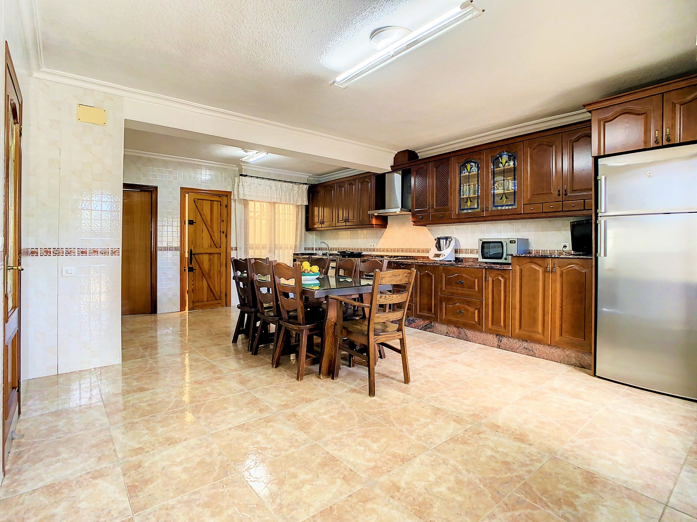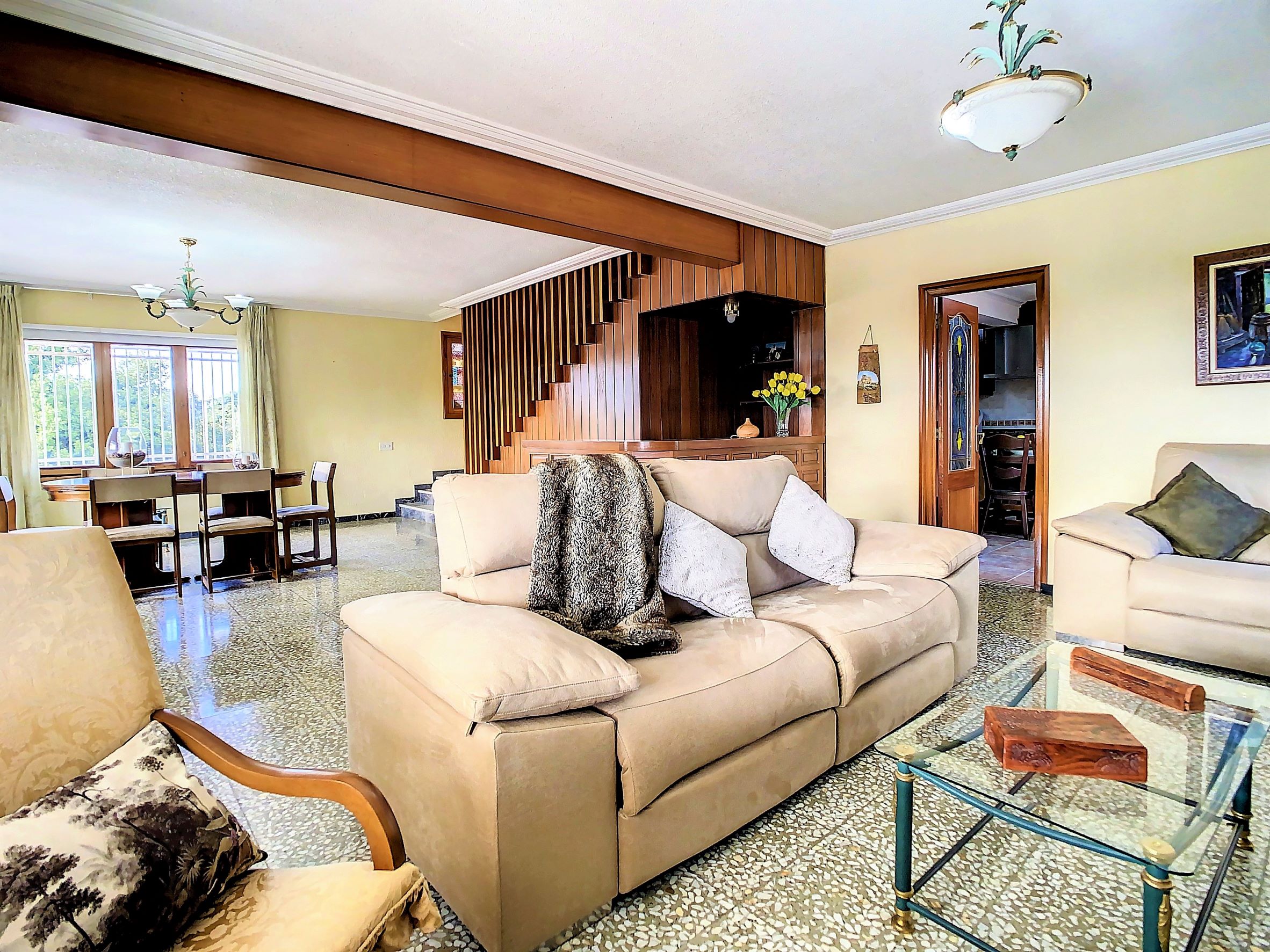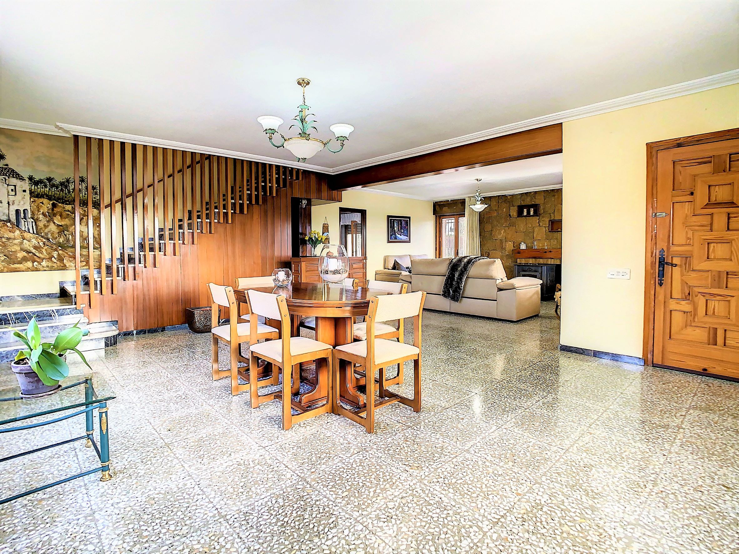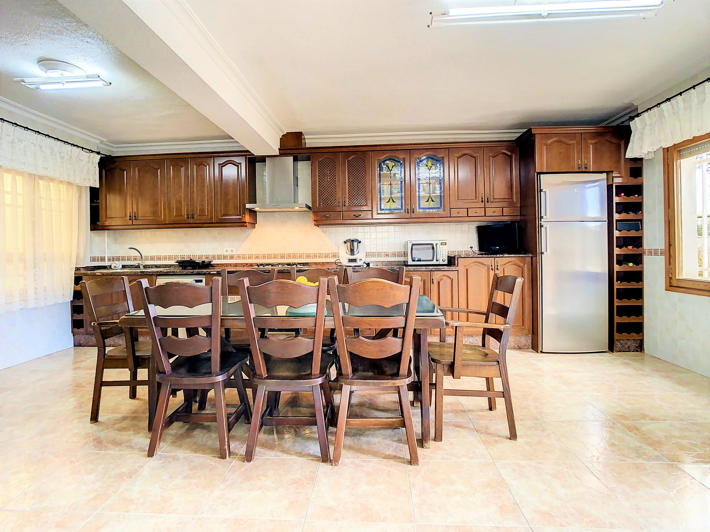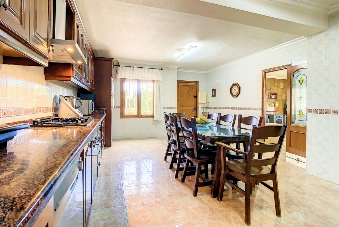 – La planta baja se encuentra una cocina independiente de unos 20 m2 totalmente equipada, un cuarto de baño con ducha y una galería cerrada con barbacoa y la lavandería. Lo más sorprendente de esta planta es el gran salón comedor de unos 80 m2, una estancia ideal para pasar tiempo en familia o entre amigos. Desde el comedor se accede a una amplia terraza cubierta.