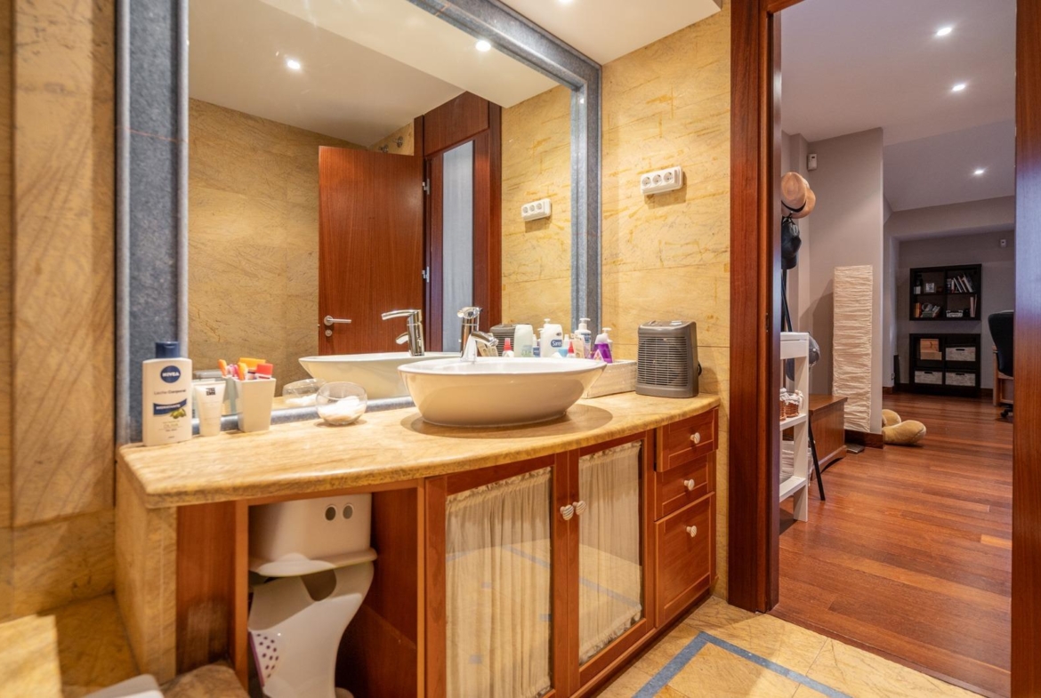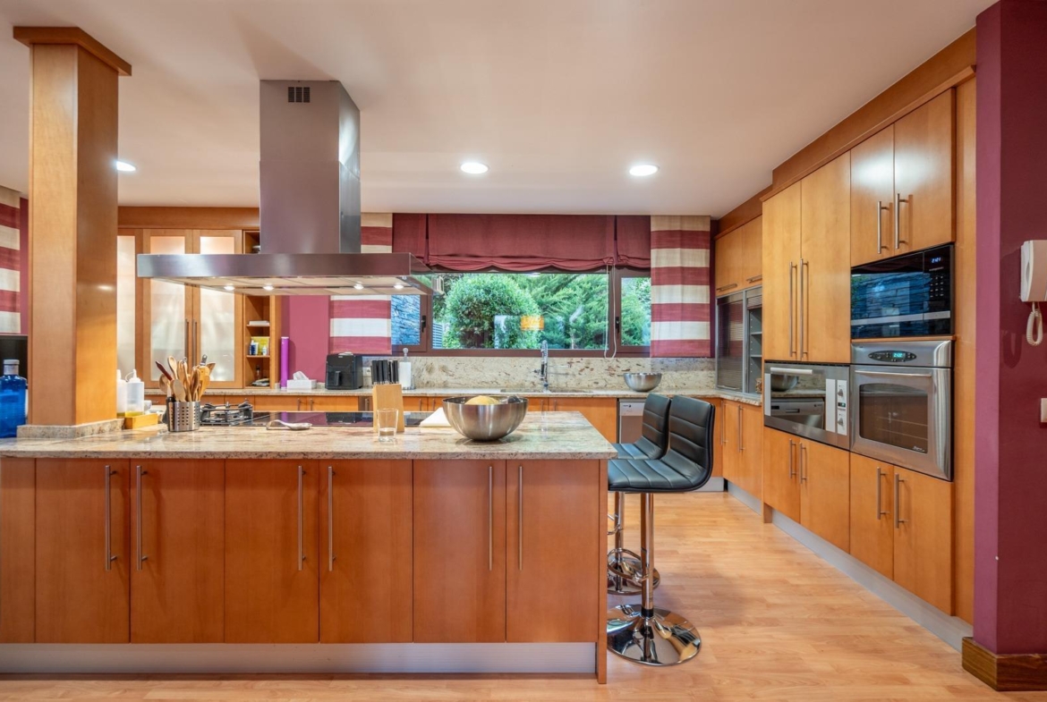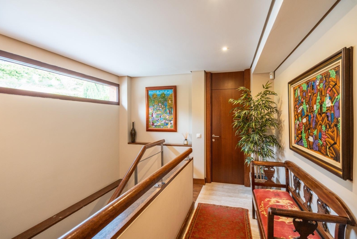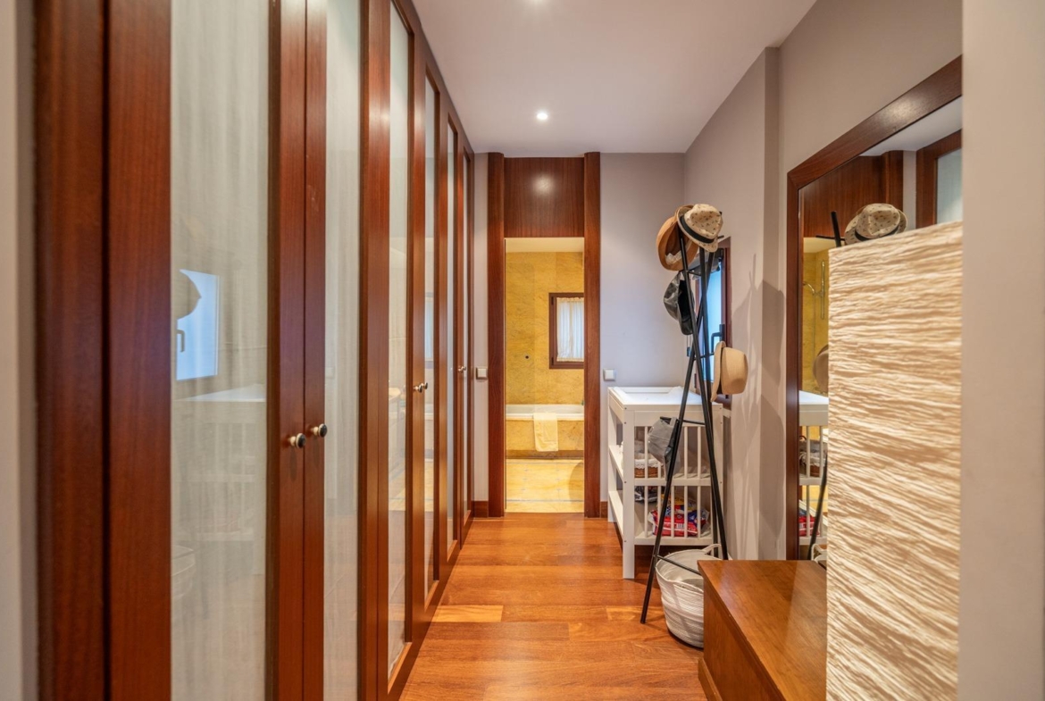 En el interior, la vivienda destaca por su elegancia, su luminosidad y la amplitud de todos sus espacios. Dispone de siete habitaciones y siete cuartos de baño, una distribución ideal para familias numerosas o para quienes desean amplias estancias de invitados. Sus dos salones ofrecen ambientes diferenciados, ambos con gran presencia y confort, uno de ellos con chimenea. Los techos altos refuerzan la sensación de espacio y distinción, mientras que elementos como el jacuzzi, el ascensor, la terraza acristalada, la caja fuerte, la alarma, la puerta blindada y las puertas automáticas elevan aún más el nivel de confort y seguridad. La vivienda cuenta también con armarios empotrados, sótano, lavandería, suelo radiante y una cocina amueblada y completamente equipada, lista para entrar a vivir.