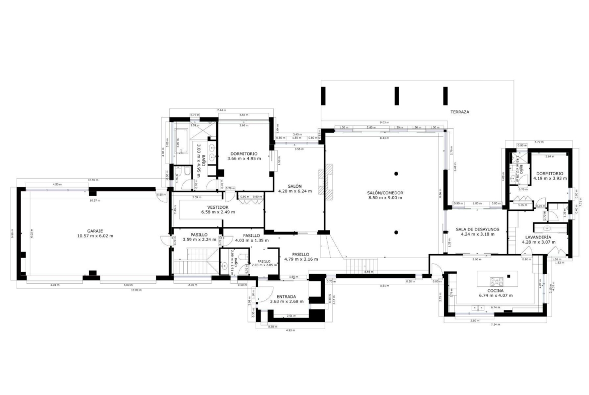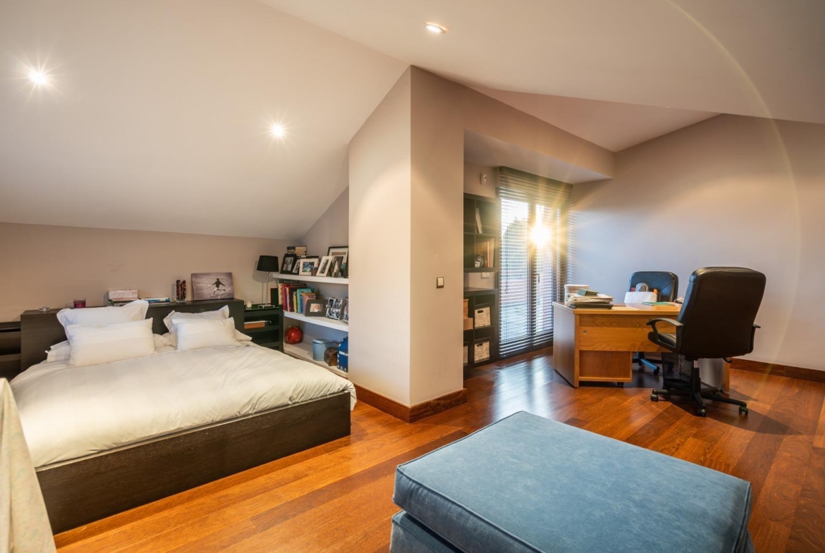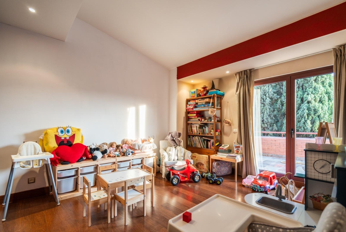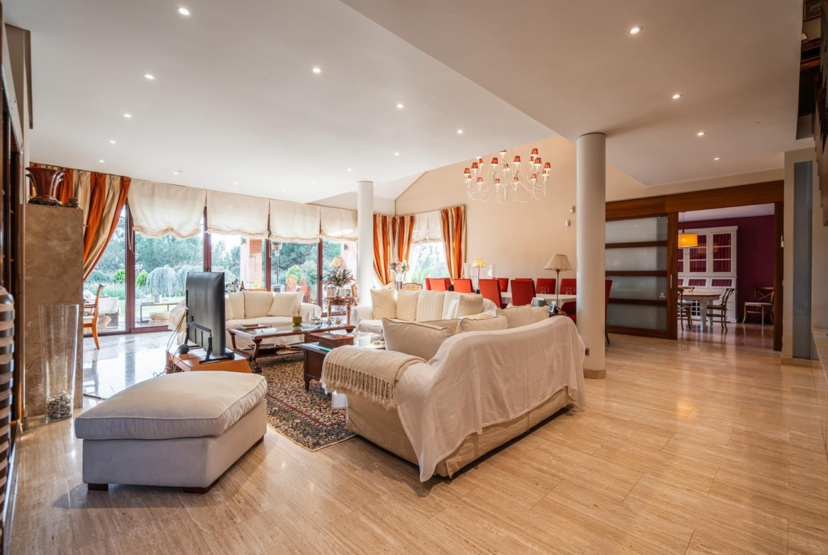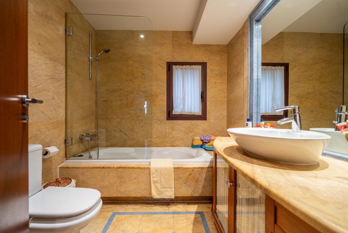 En el interior, la vivienda destaca por su elegancia, su luminosidad y la amplitud de todos sus espacios. Dispone de siete habitaciones y siete cuartos de baño, una distribución ideal para familias numerosas o para quienes desean amplias estancias de invitados. Sus dos salones ofrecen ambientes diferenciados, ambos con gran presencia y confort, uno de ellos con chimenea. Los techos altos refuerzan la sensación de espacio y distinción, mientras que elementos como el jacuzzi, el ascensor, la terraza acristalada, la caja fuerte, la alarma, la puerta blindada y las puertas automáticas elevan aún más el nivel de confort y seguridad. La vivienda cuenta también con armarios empotrados, sótano, lavandería, suelo radiante y una cocina amueblada y completamente equipada, lista para entrar a vivir.