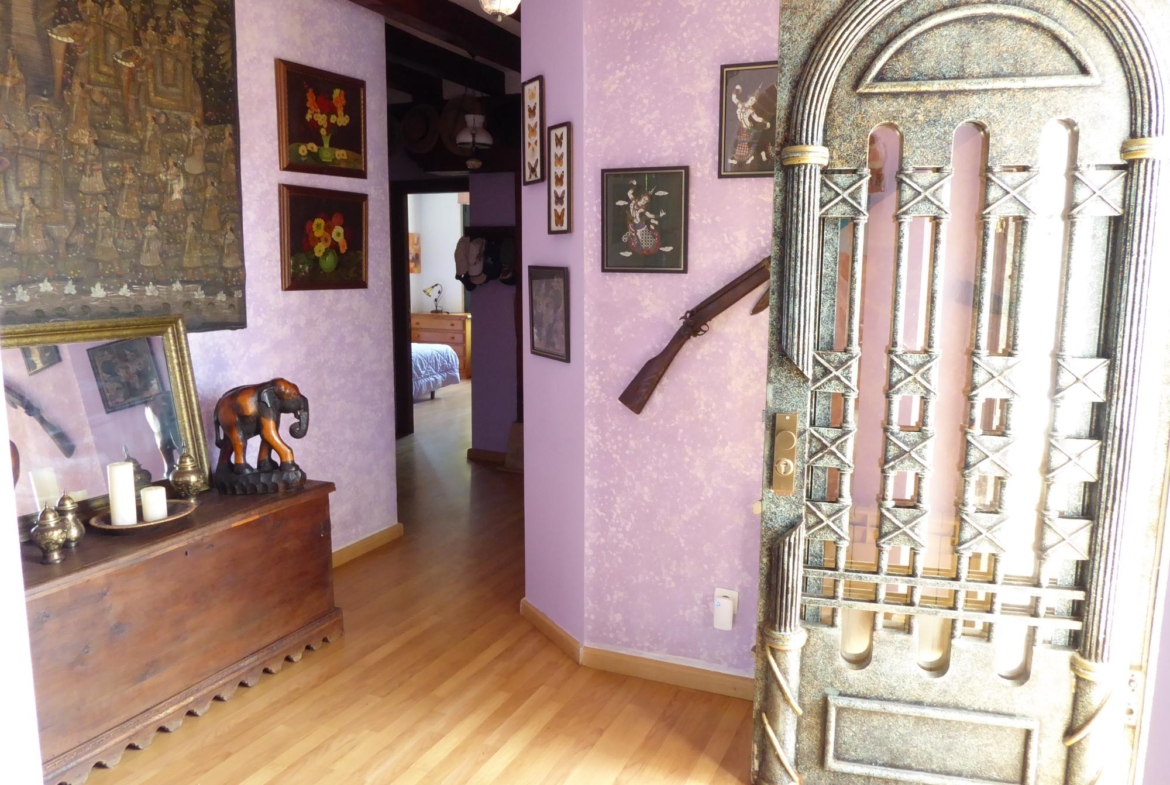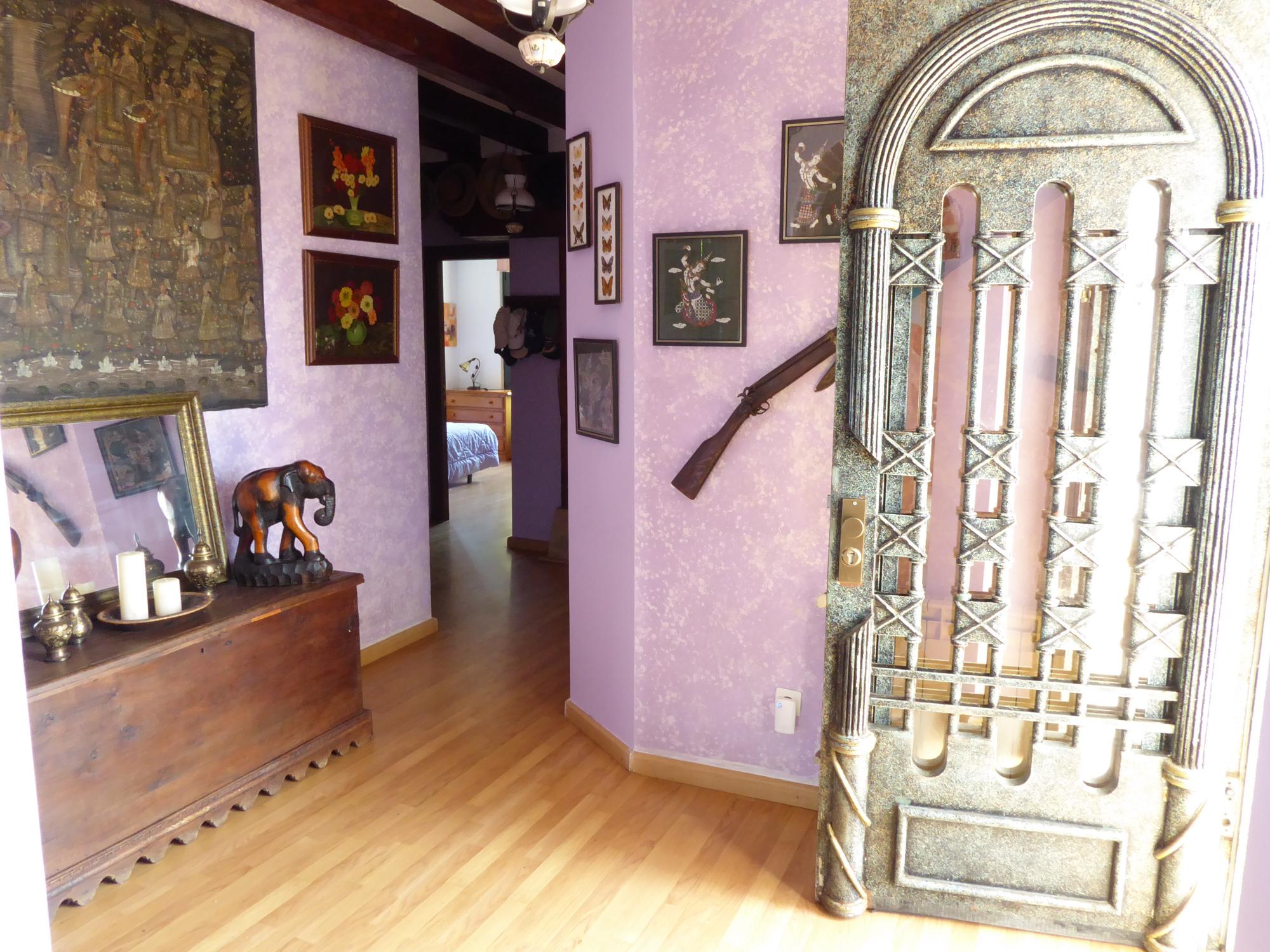 .- Planta principal: salón con chimenea muy luminoso (E-S-O) con grandes ventanales, cocina totalmente equipada (N-O), 3 amplios dormitorios (ppal. con baño) más otro baño. Rodeada de terrazas a todas las orientaciones: Al E terraza de 10,50 m2. Al S terraza de 54 m2. Al Oeste terraza de 230 m2.