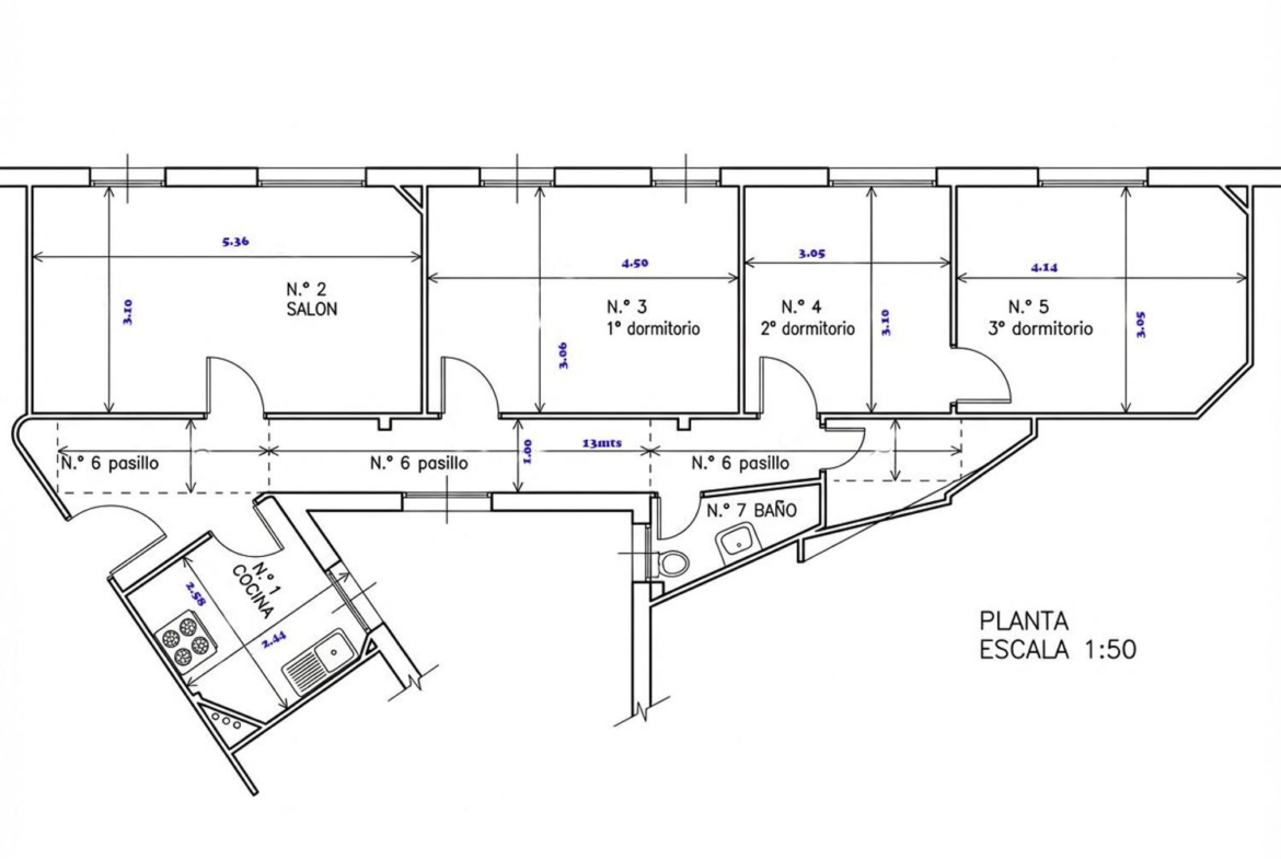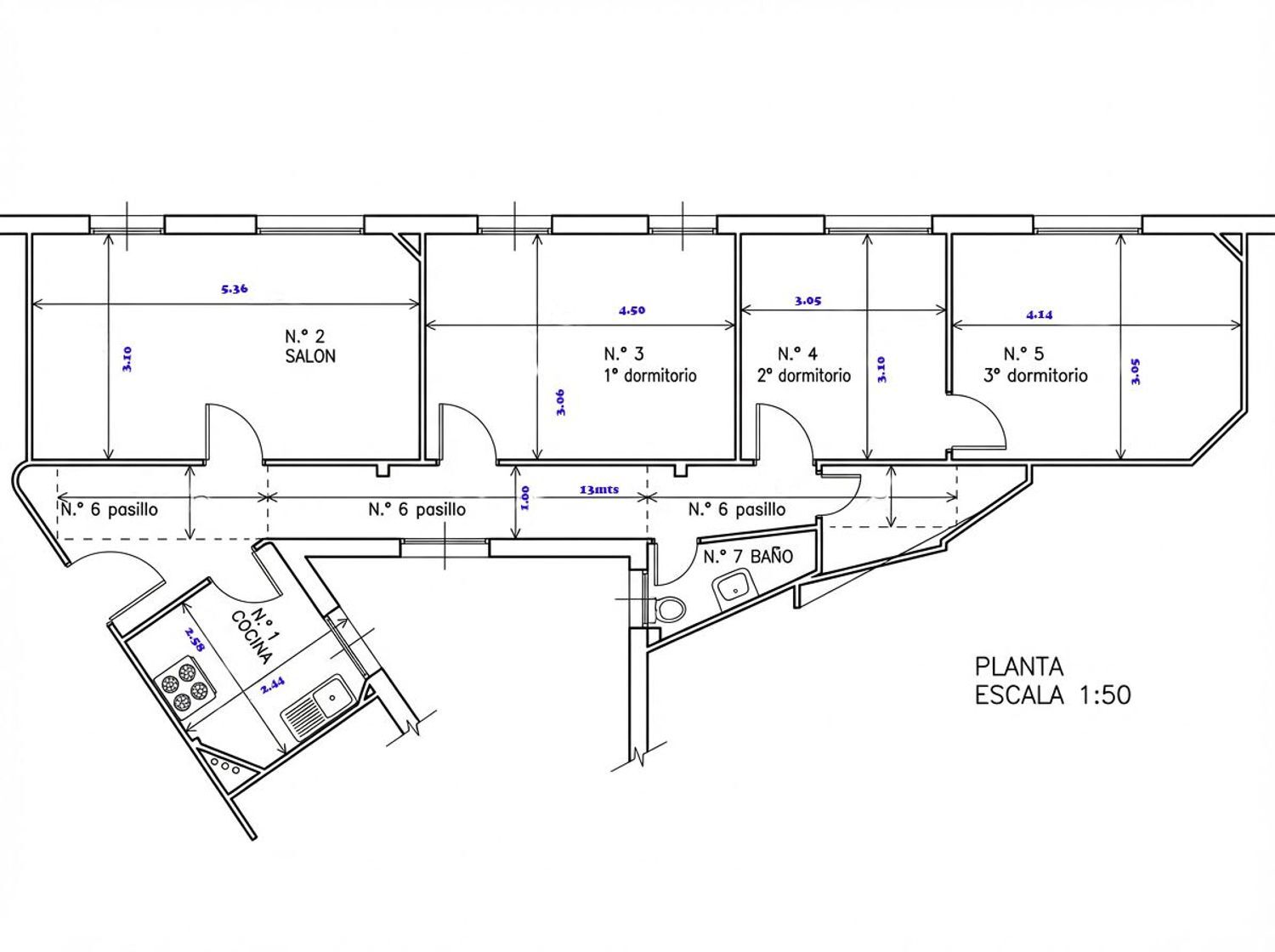 Atractivo piso exterior para reformar, con 98 m² y una distribución con múltiples posibilidades. Actualmente dispone de 3 habitaciones y 1 baño, con opción de redistribución tras reforma para 4 dormitorios y 2 baños.