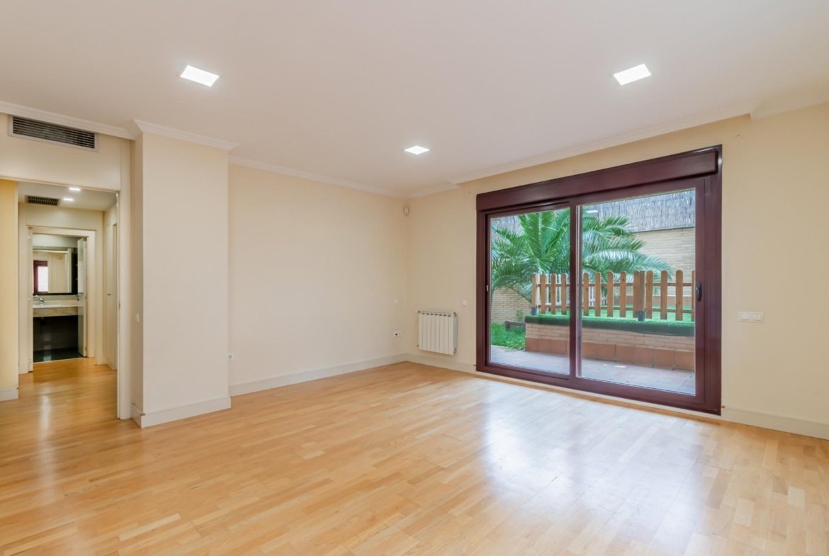 En la planta inferior nos recibe un gran espacio diáfano de 30m2 para poder convertirlo en sala de juegos, habitación de invitados, despacho o incluso dividirlo en dos dormitorios y un baño aumentado así el valor de la propiedad. Un espacio que posee luz y ventilación natural gracias al patio inglés de generosas dimensiones.