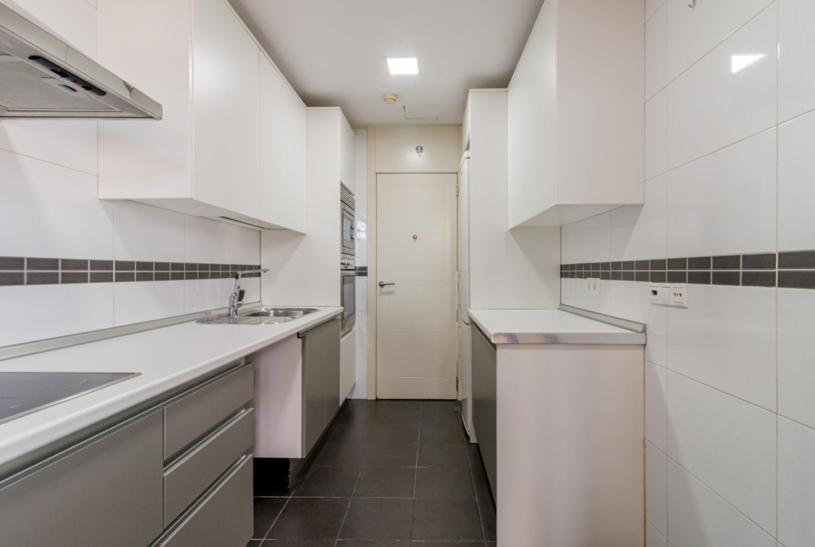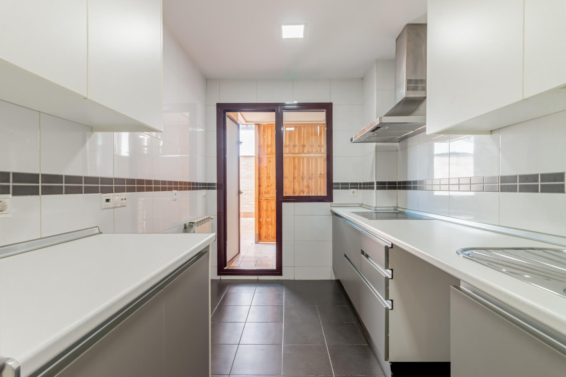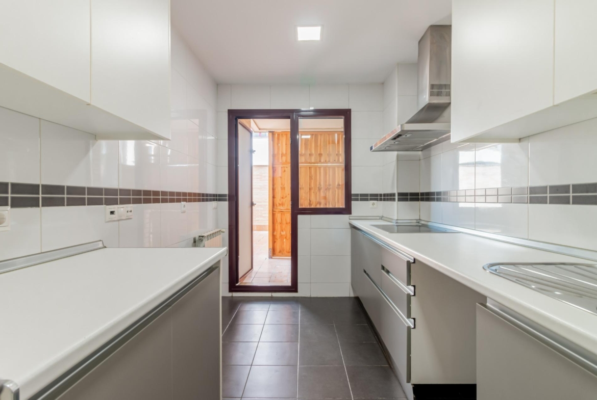 En la planta de acceso nos encontramos con una cocina independiente y un salón con grandes ventanales, que fácilmente se pueden unir si así lo deseara. En esta misma planta hay dos dormitorios, uno de ellos en suite y otro baño completo.