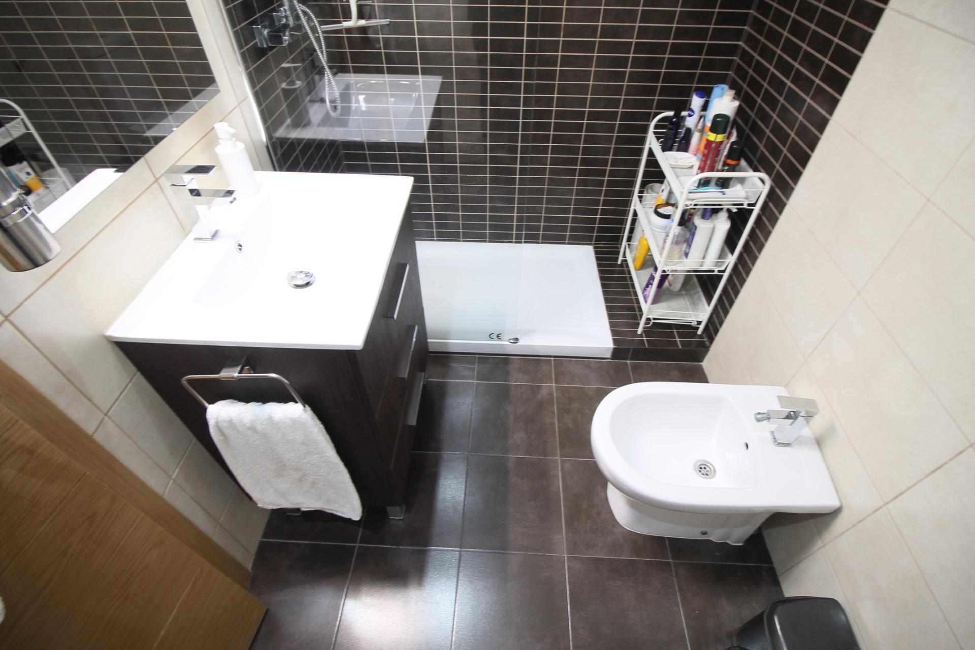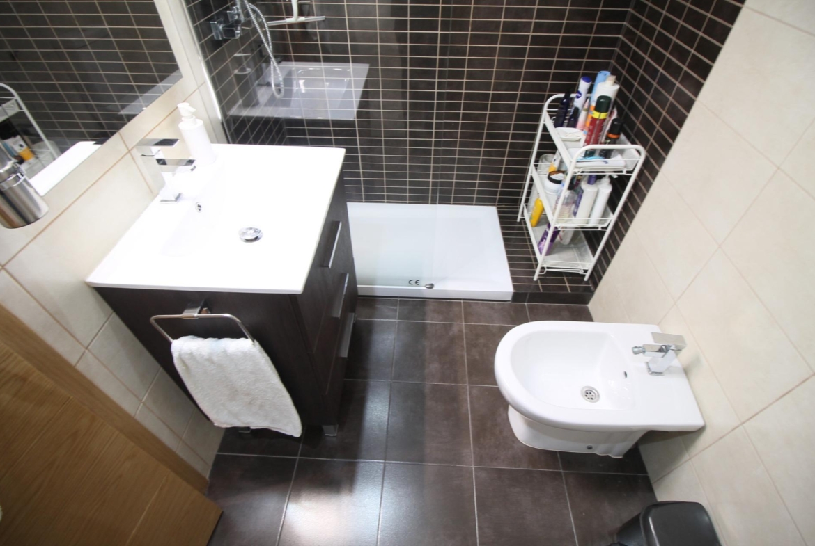 Cuenta con tres dormitorios con armarios empotrados y dos cuartos de baños completos equipados con plato de ducha.