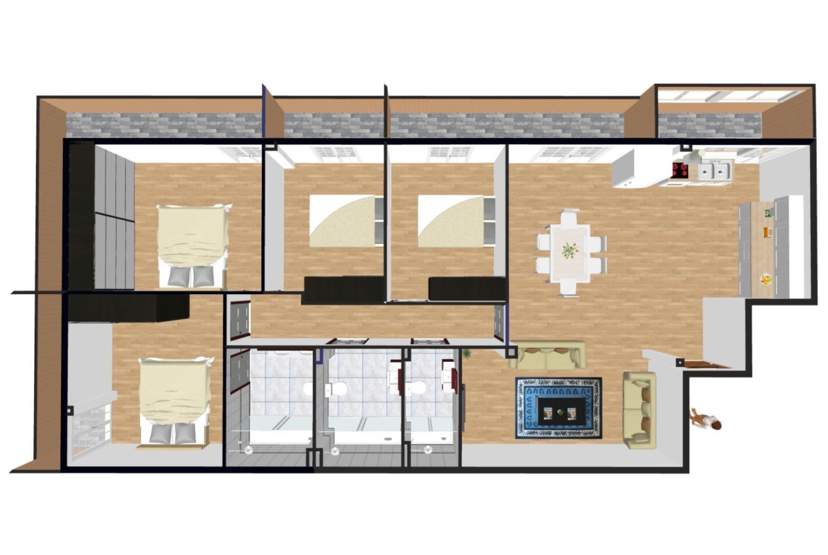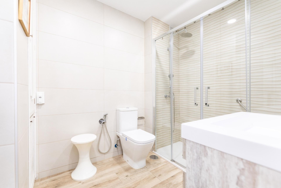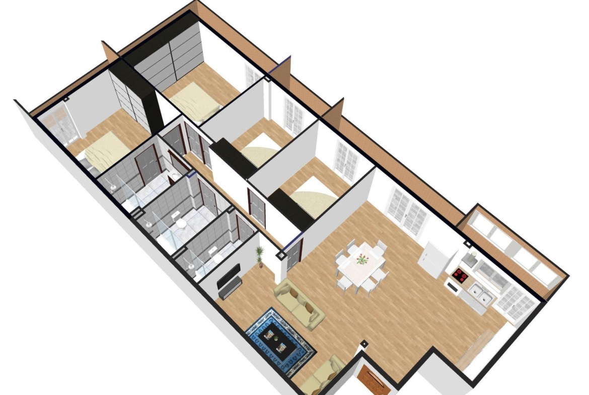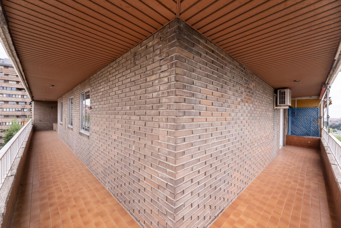 Es muy luminoso gracias a su altura en la octava planta, a que es totalmente exterior haciendo esquina, a su doble orientación norte y oeste, y a su terraza perimetral que rodea toda la vivienda. Actualmente se distribuye en cuatro habitaciones, la principal con baño en suite y todas con armarios empotrados, tres cuartos de baño, un amplio salón comedor con salida a la terraza, una buena cocina independiente con terraza tendedero y un hall recibidor. Los planos en tres dimensiones de este anuncio ofrecen la recreación en 3D de una posible reforma. También se han tratado con inteligencia artificial las fotos de algunas estancias para ofrecer la imagen de cómo podrían quedar reformadas.