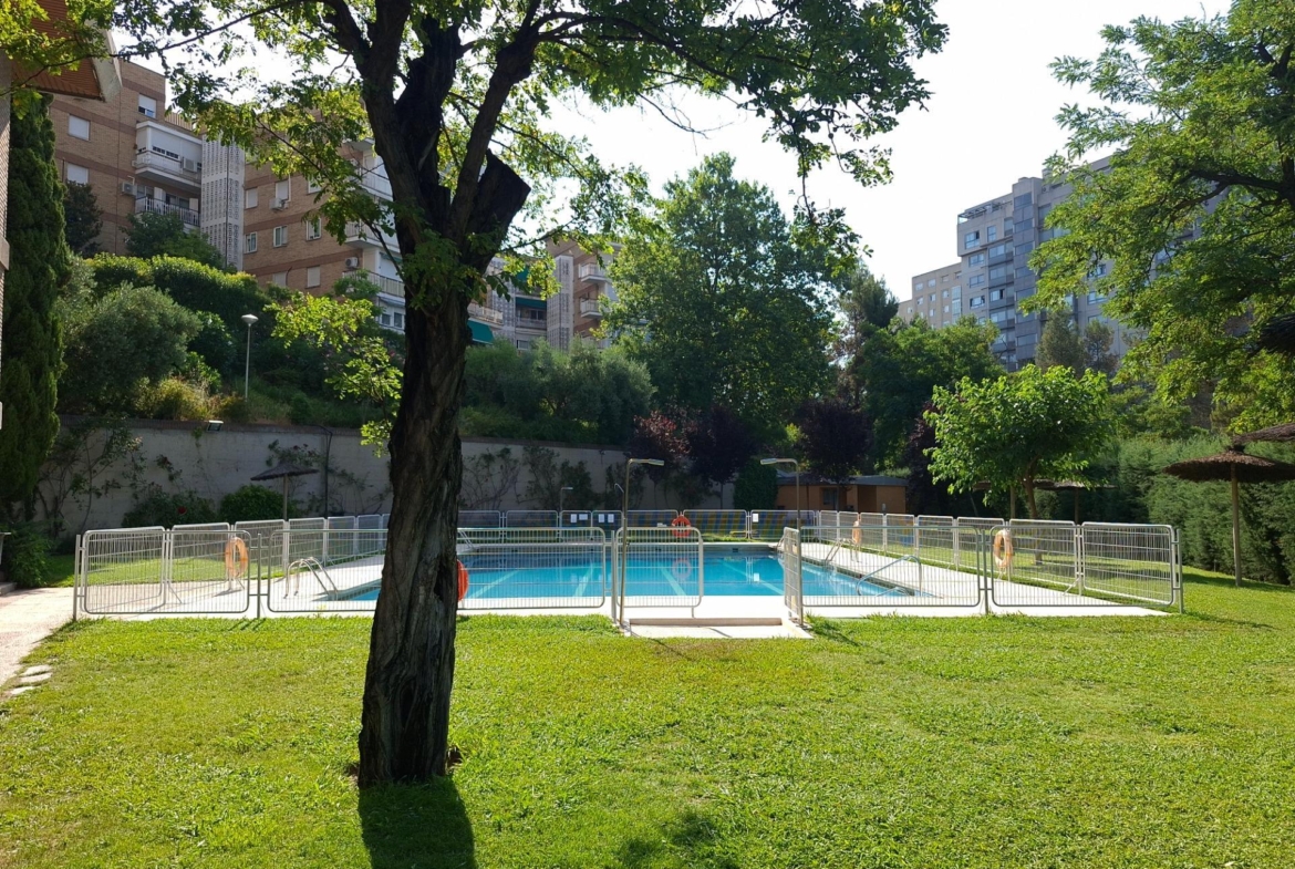 Además de servicio de conserjería, cuenta con vigilancia 24 horas y ofrece unas agradables zonas comunes ajardinadas, una piscina estupenda recién arreglada, zona infantil con columpios y una cancha multideporte.