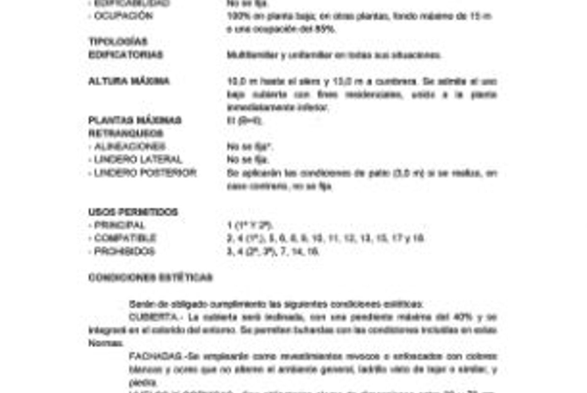 ALTURA MÁXIMA10,0 m hasta el alero y 13,0 m a cumbrera. Se admite el uso bajo cubierta con fines residenciales, unido a la planta inmediatamente inferior.