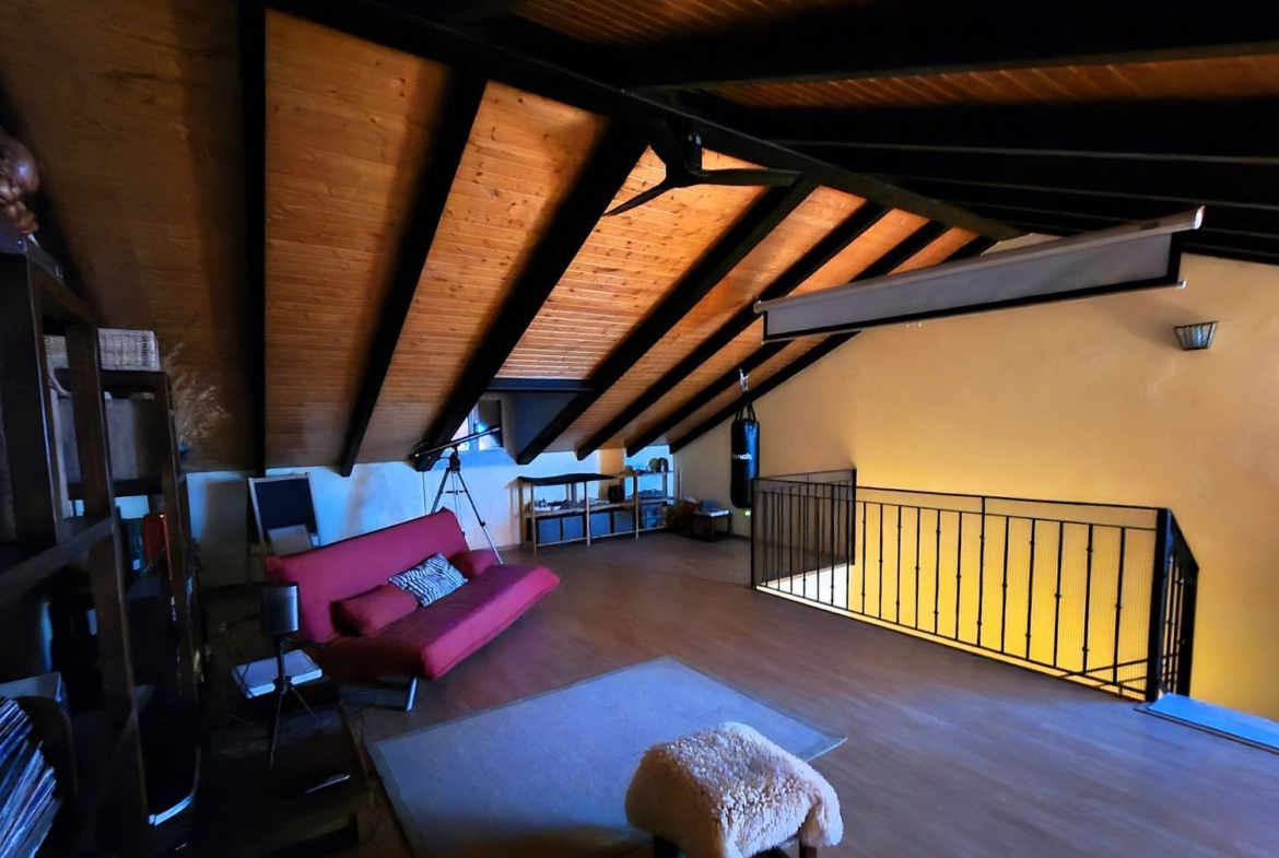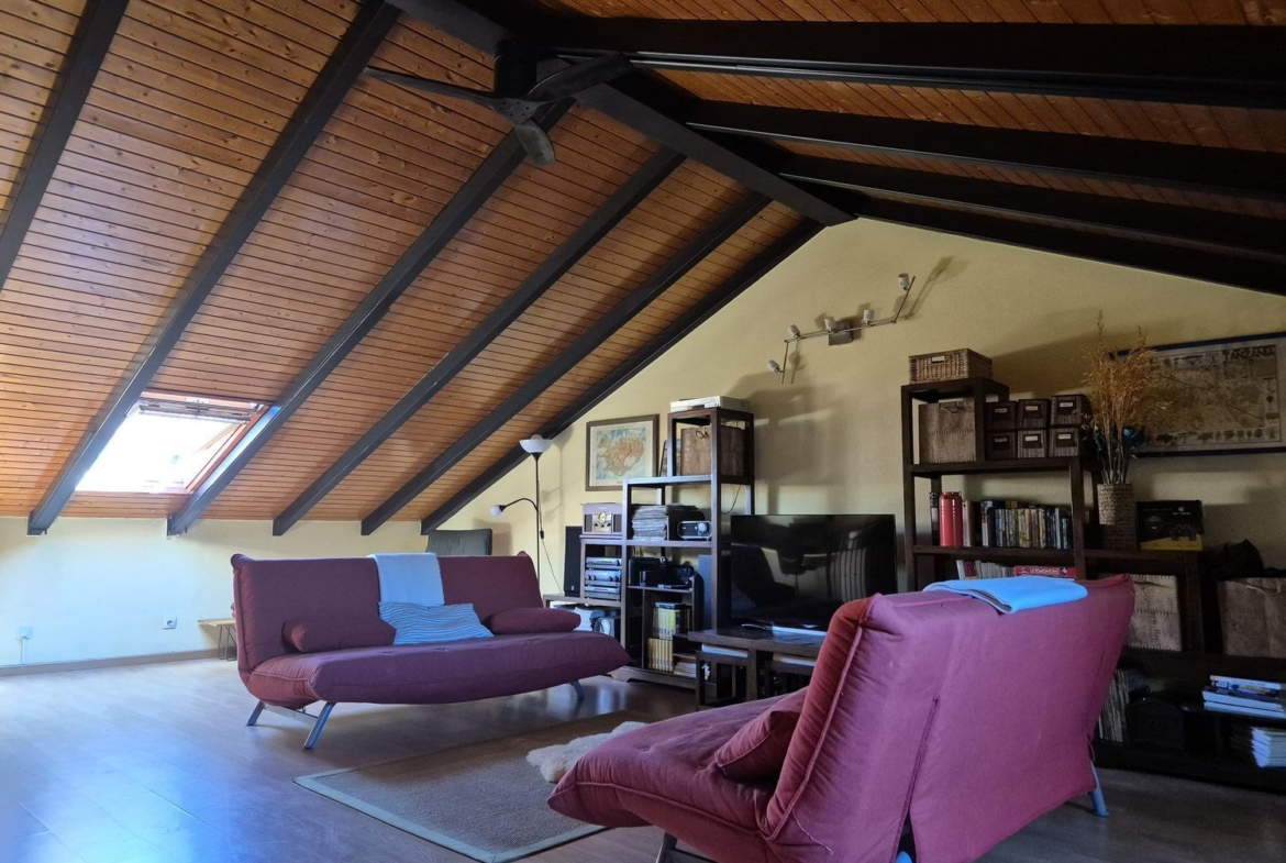 La joya de la casa es su amplio salón-comedor con chimenea, ideal para crear momentos inolvidables en familia. La cocina, completamente equipada, es perfecta para los amantes de la gastronomía. Además, cuenta con una buhardilla multifuncional que se adapta a tus necesidades, ya sea como oficina, sala de juegos o un acogedor rincón de lectura.
