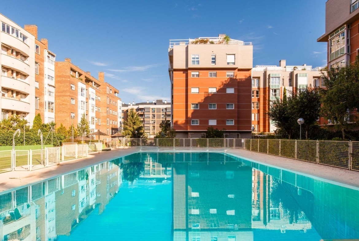 • Urbanización con servicios comunes: piscinas, zonas verdes, pistas de pádel, garaje incluido, vigilancia 24 h y zonas de juegos infantiles.