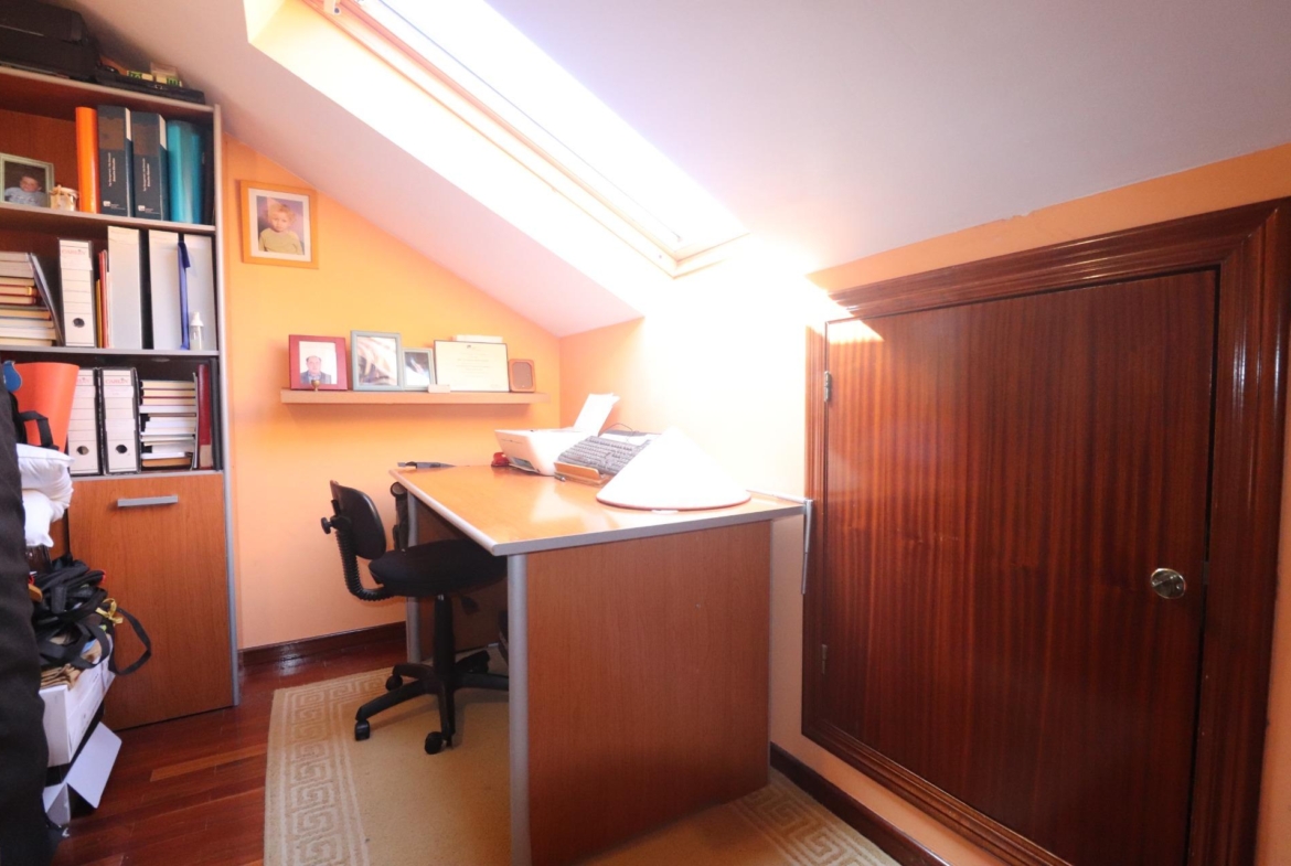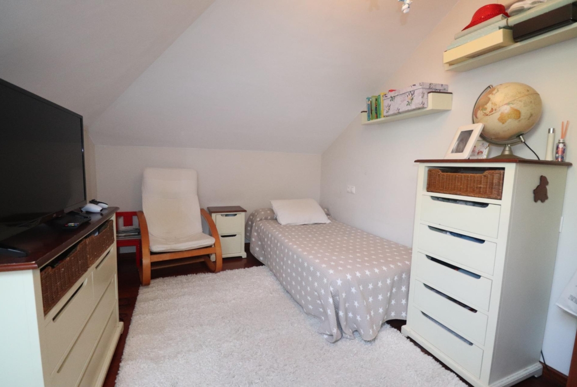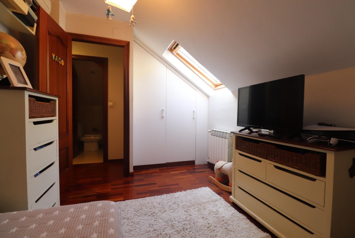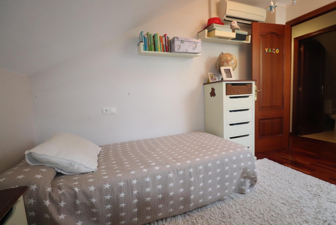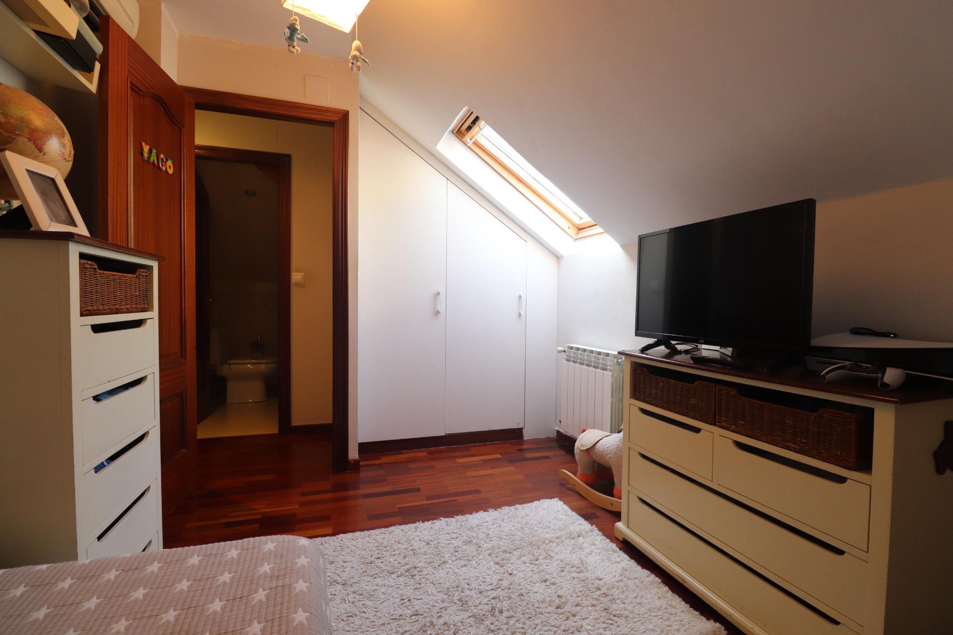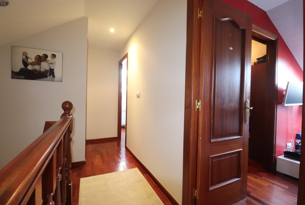 En planta superior cuenta con dos dormitorios,uno de ellos con pequeño vestidor y otro baño completo. Suelos de gres en cocina y baños; parquet en el resto de estancias, ventanas de aluminio con climalit.